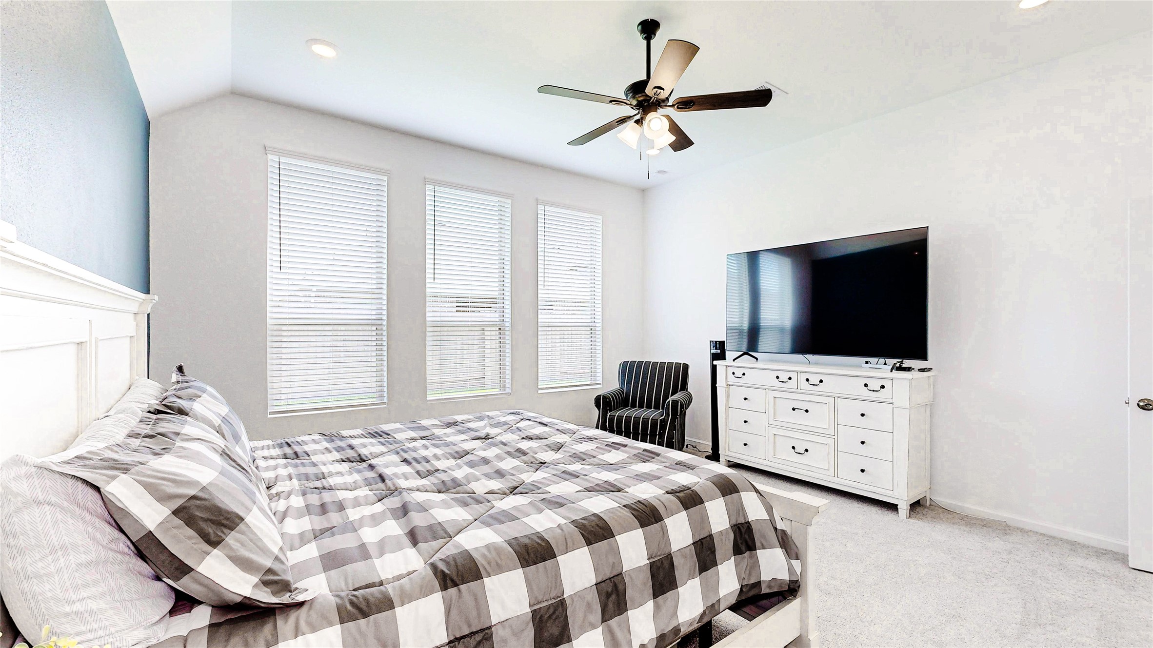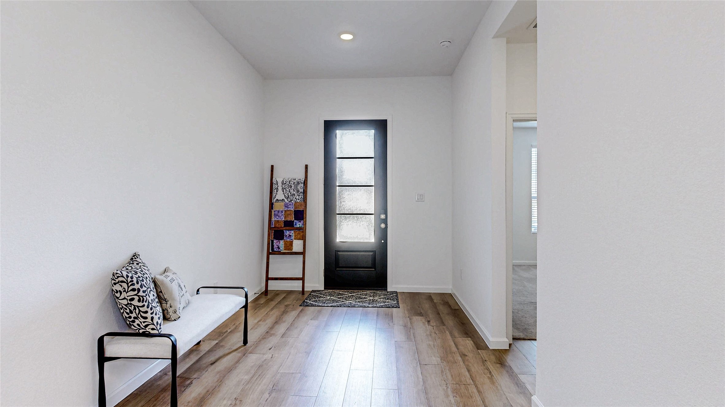 Welcome to this elegantly appointed 4-bed, 3-bath residence in the highly desirable Westwood community. A dramatic entryway introduces an airy open-concept design, elevated by rich vinyl plank flooring. The gourmet kitchen blends style and functionality with its expansive white shaker cabinetry, Quartz countertops, designer tile backsplash, and oversized island—perfect for hosting/everyday living. A dedicated Office/Flex Room provides the ideal retreat for work, study, or creative pursuits. The generous Primary Suite offers room for a sitting area and oversized furnishings, while three additional sunlit bedrooms and three beautifully finished baths deliver exceptional comfort. Step outside to a covered patio—an inviting extension of the home. Located within walking distance of the elementary school, scenic trails, fishing ponds, pool, and playground. ASSUMABLE 3.99% interest rate option and TRANSFERABLE BUILDER WARRANTIES, making this Westwood gem an exceptional opportunity.
