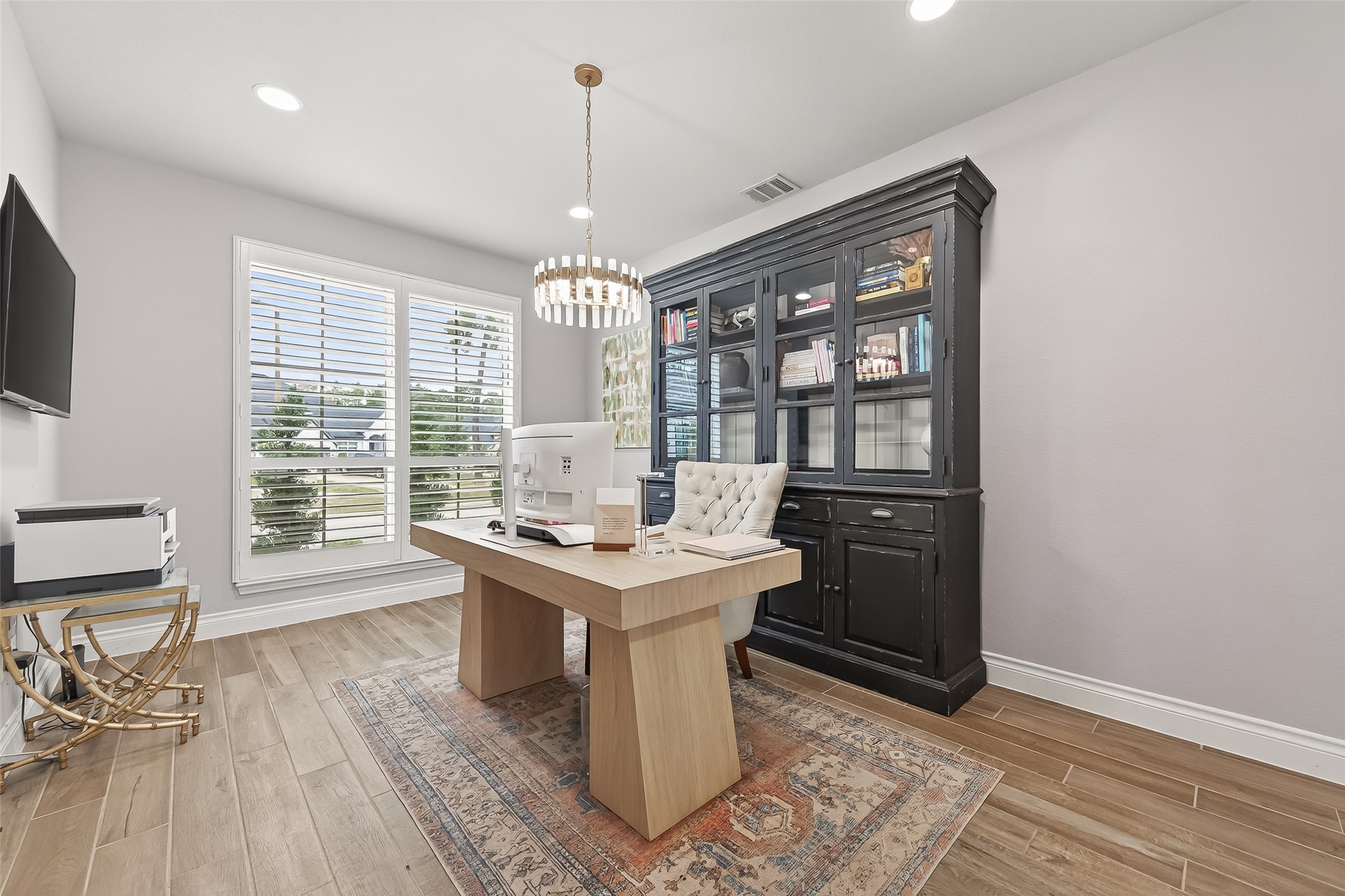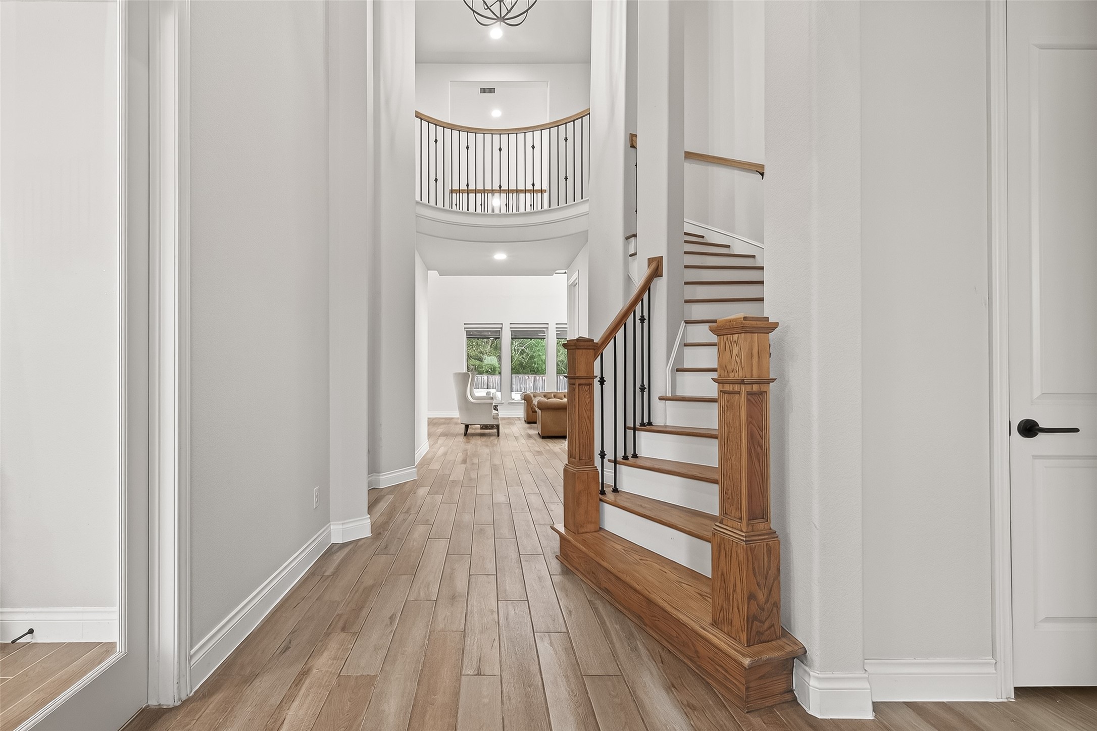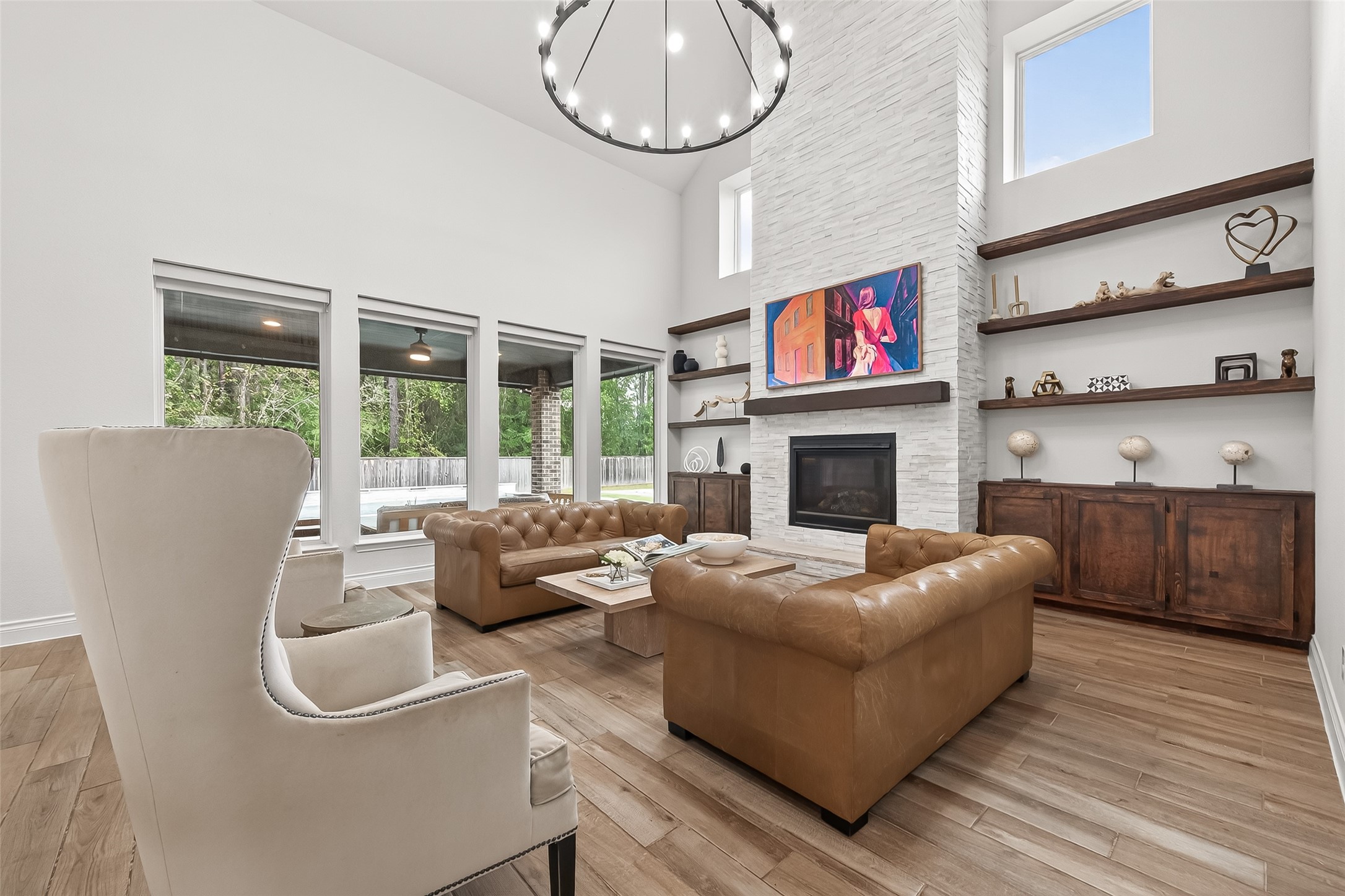 Built in 2020 by Perry Homes, this elegantly appointed residence blends modern sophistication with unparalleled privacy, backing to a tranquil forest with no rear neighbors. The interior showcases refined finishes including wood-look tile, an upgraded chef’s pantry, enhanced primary closet suites, and a whole-home aromatic diffuser integrated into the HVAC for a spa-like ambiance year-round. The resort-style backyard features a stunning pool, elevated hot tub, and fire pit, with gas and plumbing lines already in place for your dream outdoor kitchen beneath the extended covered patio. Situated in the prestigious Woodforest community, residents enjoy exclusive amenities including resort pools, pickleball and basketball courts, volleyball, walking trails, fishing ponds, and exceptional nearby dining.