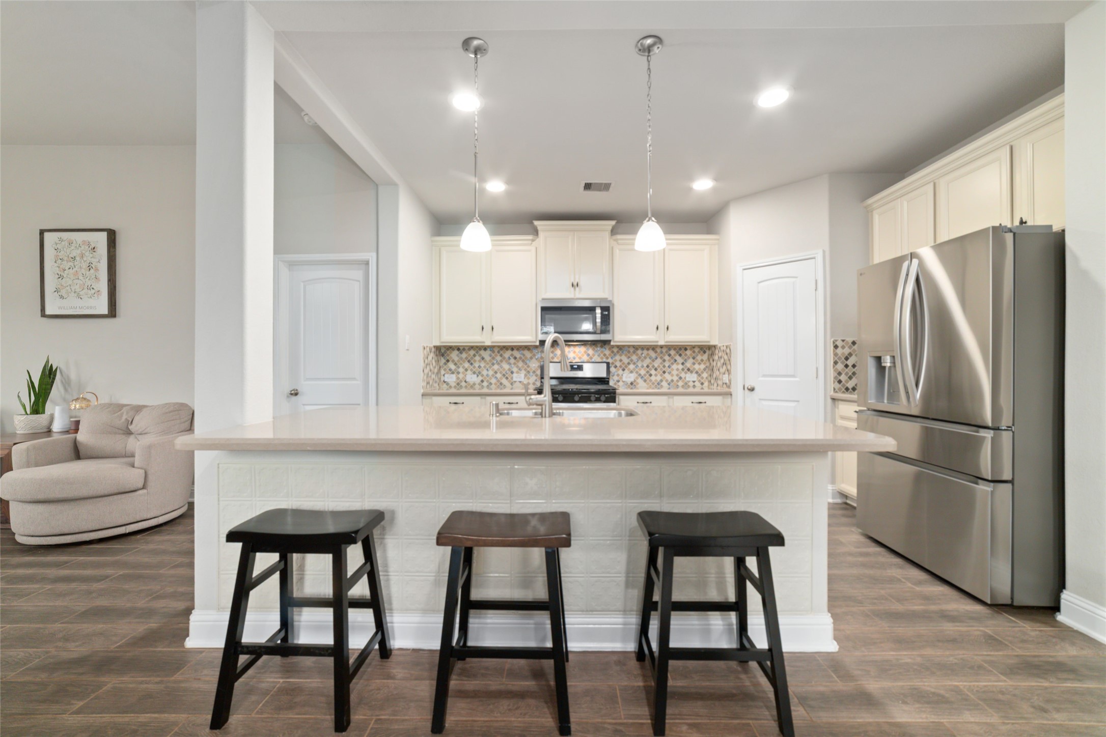 Beautiful and functional, this upgraded Beazer Homes Maxwell floor plan includes a rare 4th bedroom and full bath upstairs—ideal as a guest suite or second primary. The open-concept layout connects the kitchen, dining, and family room seamlessly, with large windows overlooking a covered patio perfect for outdoor relaxation. The kitchen features Silestone countertops, 42" upper cabinets, and stainless steel appliances, blending style and practicality. Designed with energy savings in mind, the home includes spray foam insulation and Low-E windows to help reduce utility costs year-round. Located in a desirable community with thoughtful design and great curb appeal, this move-in-ready home offers flexible space and long-term value. Whether you're looking to grow, host, or settle in, this home checks every box. The Enclave's fantastic location is connected to the Clear Creek trails & gives easy access to Beltway, I-45, restaurants, great shopping & more!