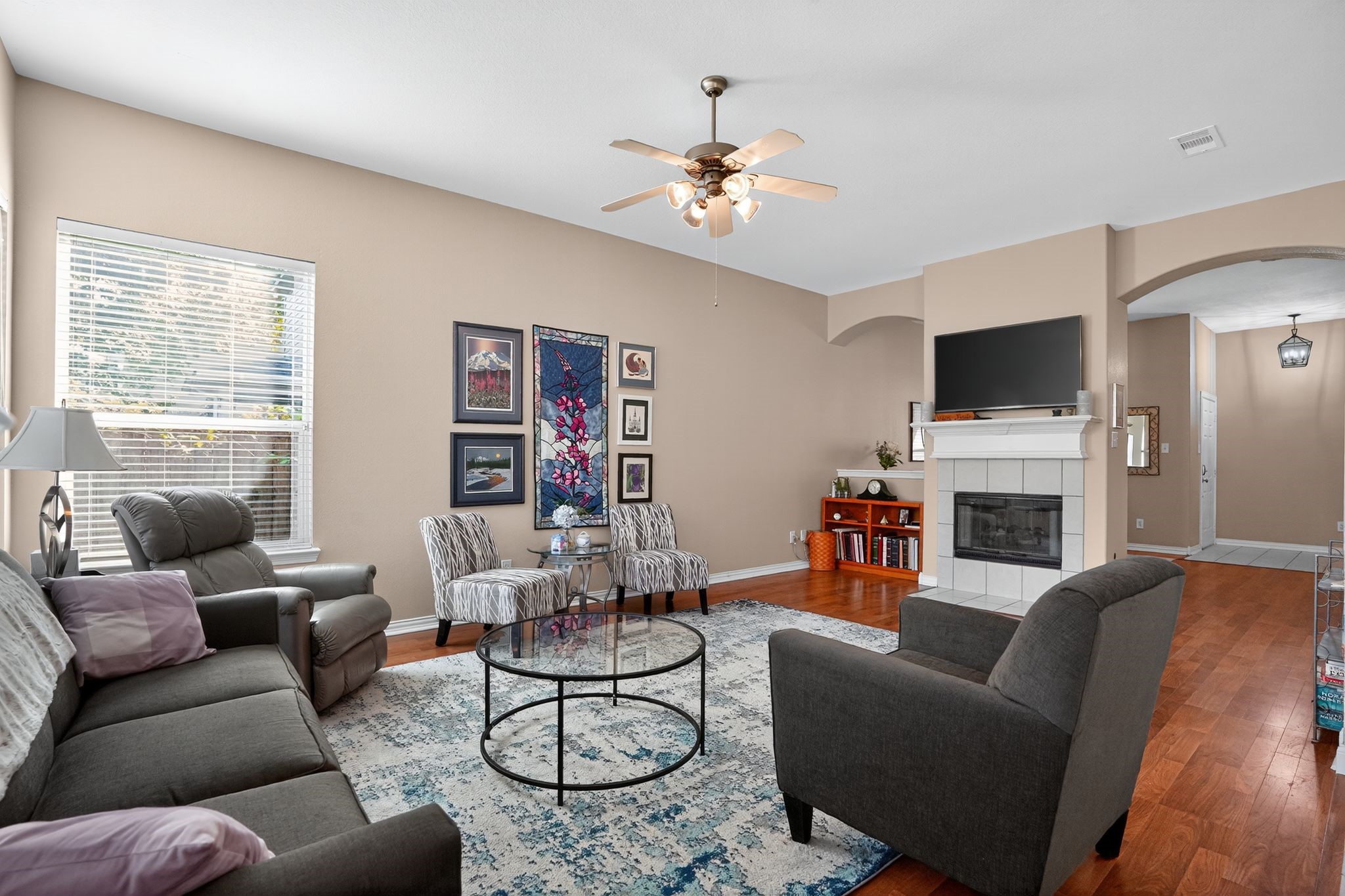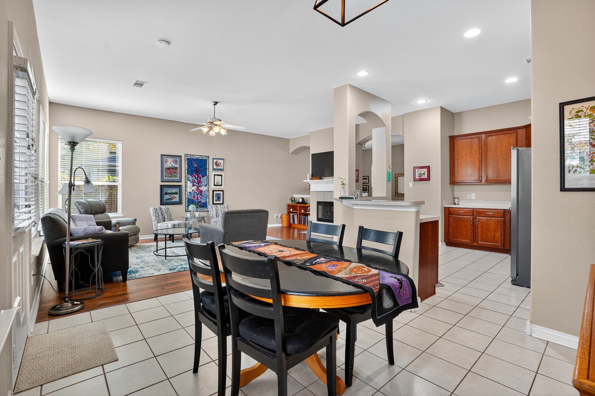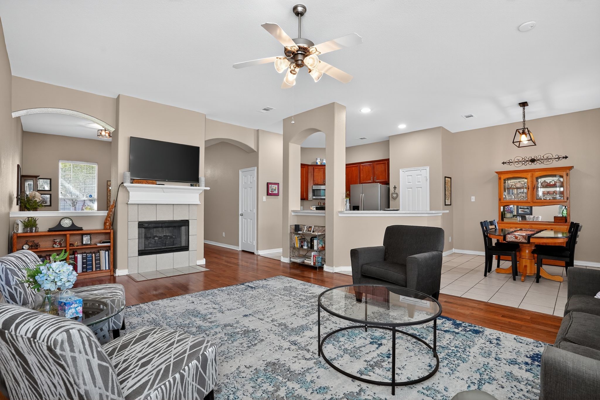 Welcome to 6706 Durango Creek Drive! Recent updates include a new roof (2025) and new HVAC system (2025). This beautifully maintained single-story home offers an open-concept layout, high ceilings, and abundant natural light. The exterior features brick on three sides for timeless curb appeal and durability, and a covered patio to offer inviting outdoor living. Inside, enjoy a spacious family room with a stunning double-sided fireplace, ideal for entertaining or relaxing. The primary suite includes dual vanities, a built-in makeup station, a garden tub, and a separate walk-in shower and two closets. The kitchen includes a double oven with stainless steel appliances. With major systems updated, this move-in ready home offers comfort, efficiency, and peace of mind. Schedule your showing today!