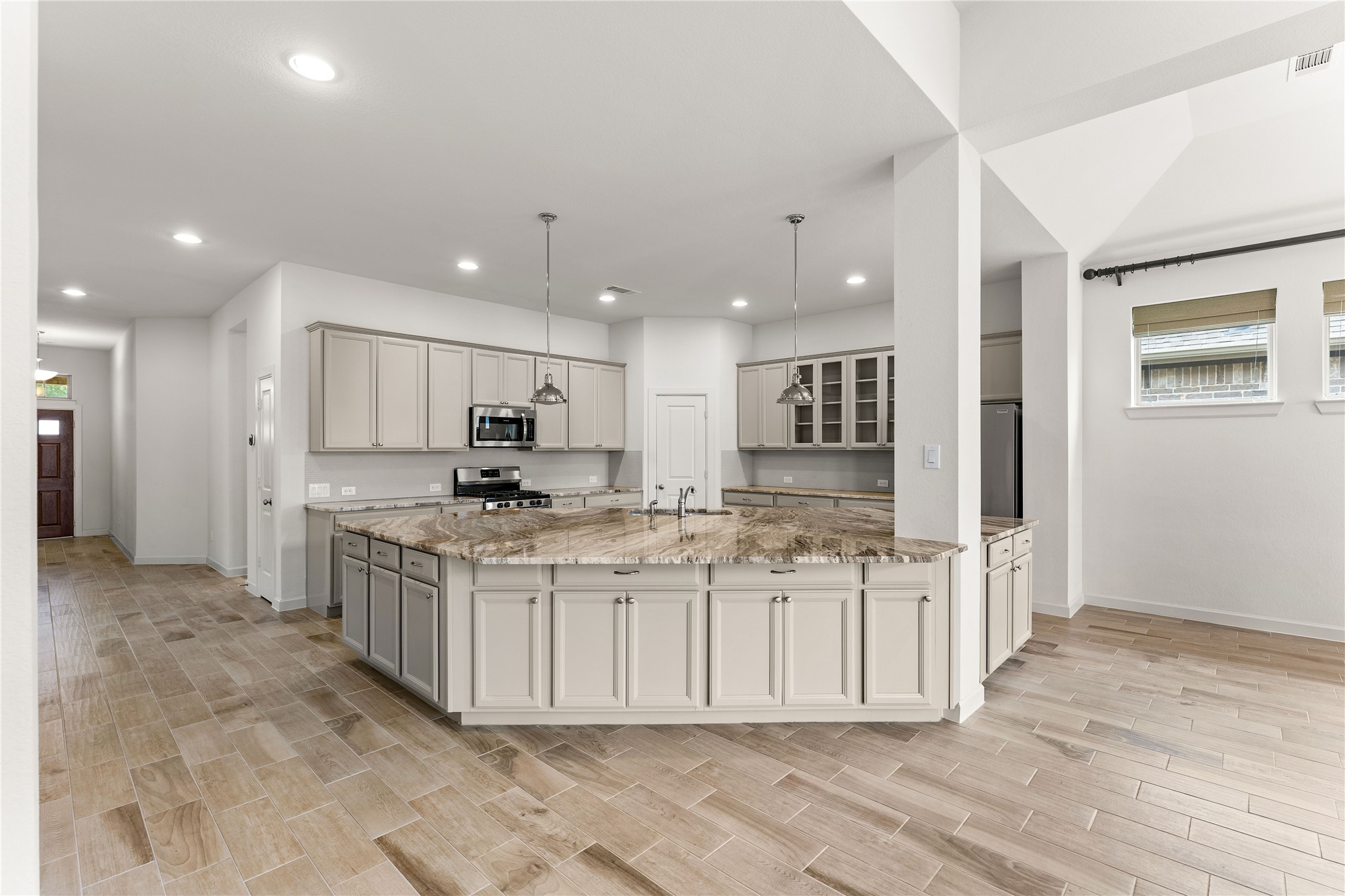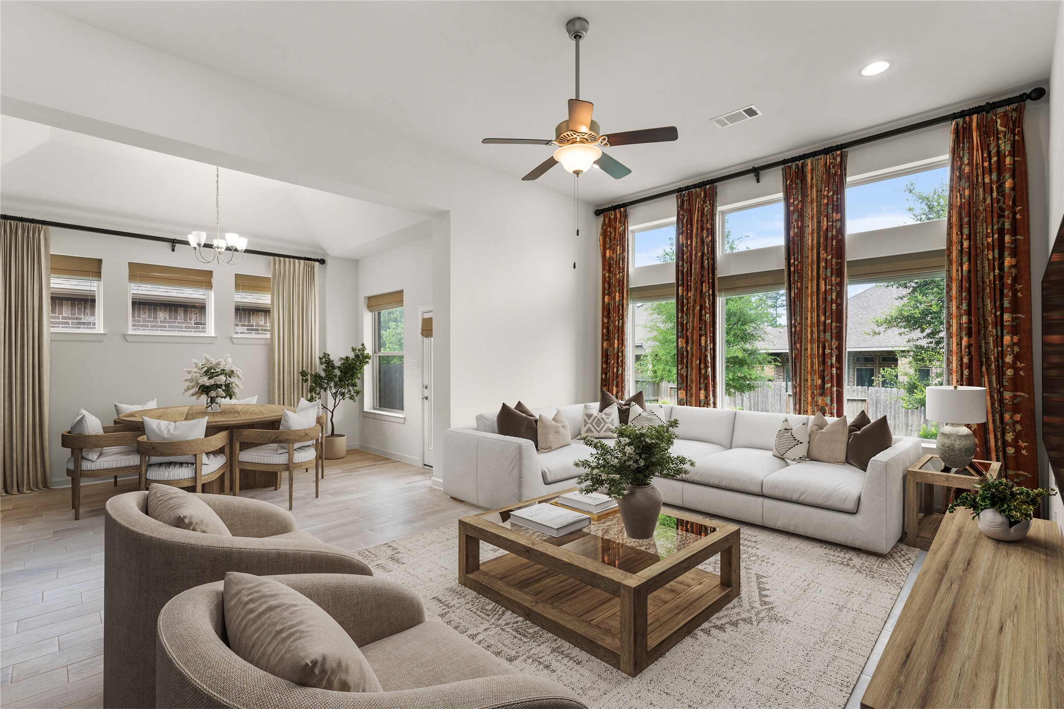 Welcome to 139 Trillium Park Loop in the sought-after Grand Central Park! This move-in-ready 3BD, 2.5BT David Weekley home features woven shades in the living and primary areas, a remote-controlled patio shade, and accessible attic storage via the garage—perfect for seasonal items. Enjoy an open-concept layout with a spacious living area and chef’s kitchen with a huge island, breakfast bar, and ample counter space. The formal dining room offers flexibility as a home office. The private primary suite includes a spa-like bath with double sinks, walk-in shower, and large closet. Secondary rooms are ideal for guests or work-from-home. Relax on the covered patio or take a 2-minute stroll to scenic Trillium Park. Close to 336 Marketplace, City Central, The Woodlands & I-45. Trails, lakes, dog park, pool & more!