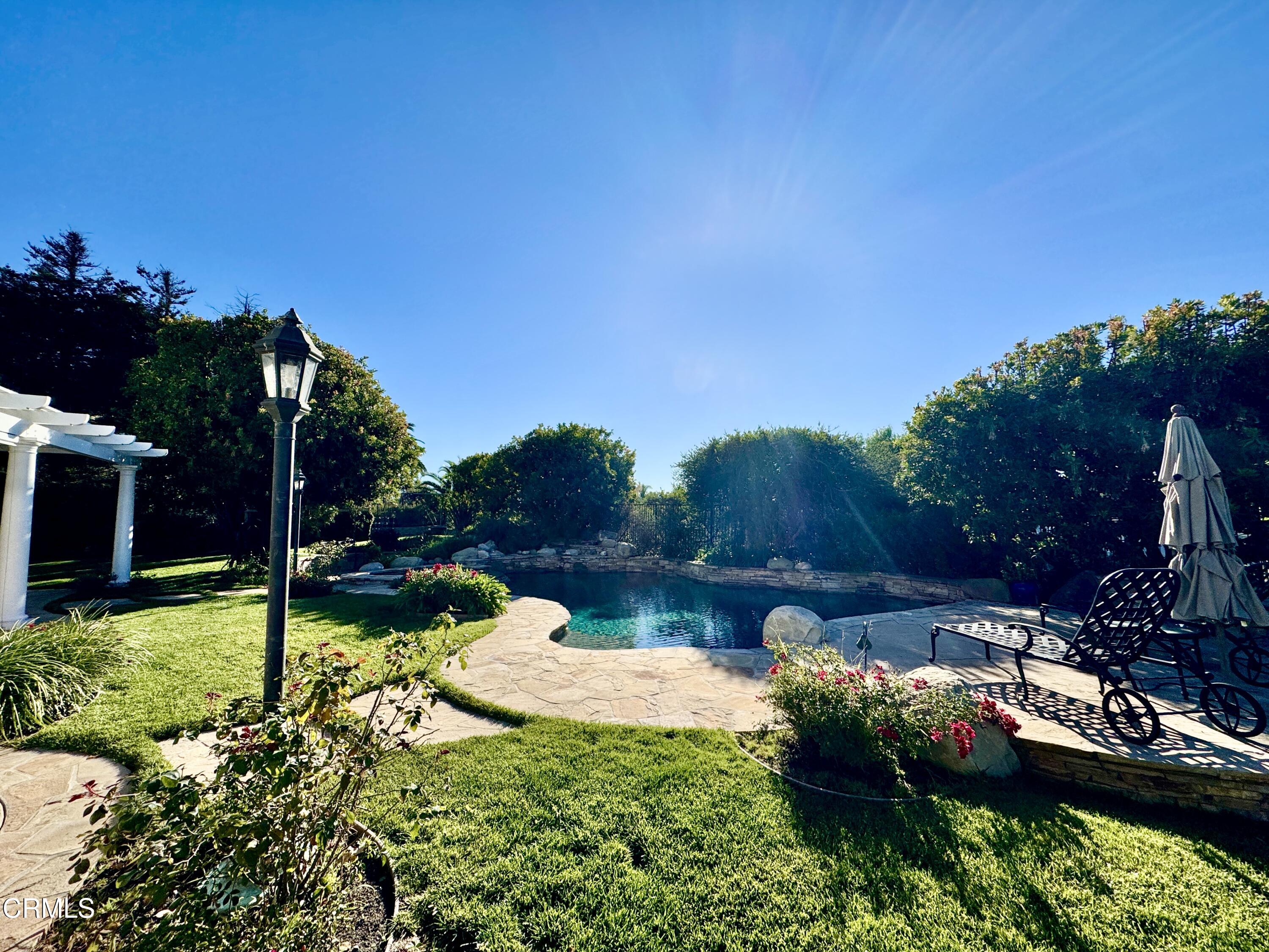Set at the end of a serene cul-de-sac within the prestigious Pinnacle at Mission Oaks, this exceptional Toll Brothers Palos Verdes Federal Design estate truly has it all--space, views, and incredible indoor and outdoor living. The residence features five expansive bedroom suites and six bathrooms, each bedroom offering a private en-suite bath--including a downstairs guest suite with walk-in shower. Dual staircases frame the home's thoughtful layout, enhancing flow and function throughout. The large family room features a fireplace, custom built-in entertainment center, wet bar, and serves as the heart of the home, while the formal living room offers a second fireplace for elevated entertaining. The gourmet kitchen is a statement in both form and function, showcasing double ovens, a six-burner professional range with hood, walk-in pantry, premium appliances, reverse osmosis system, and breakfast nook with built-in desk area for added convenience. A private office with built-ins, a dining room overlooking the breathtaking backyard, and designer engineered hardwood flooring throughout complete the main level. Upstairs, a sophisticated loft opens to a view balcony capturing panoramic mountain and island vistas. The primary suite is a sanctuary, featuring a fireplace, private sitting area, expansive view balcony, and a spa-inspired bath with dual vanities, jetted soaking tub, oversized dual-head walk-in shower, separate his-and-her toilets, and an impressive walk-in closet. The additional bedrooms are all fantastic including a grand secondary suite with sweeping mountain views that rivals a primary retreat. The resort-style grounds are impeccably designed with pool, spa, fire pit, built-in barbecue with two-burner stove, manicured lawns, garden boxes, mature landscaping, storage shed, and curated outdoor lighting on timers. Additional premium features include owned Tesla solar system, whole-house vacuum system, owned water softener, ADT security, laundry room with washer and dryer included, and a four-car garage with epoxy-finished floors and abundant storage. A rare opportunity combining scale, sophistication, and sweeping views--this is luxury living at its finest in one of Camarillo's most coveted enclaves.