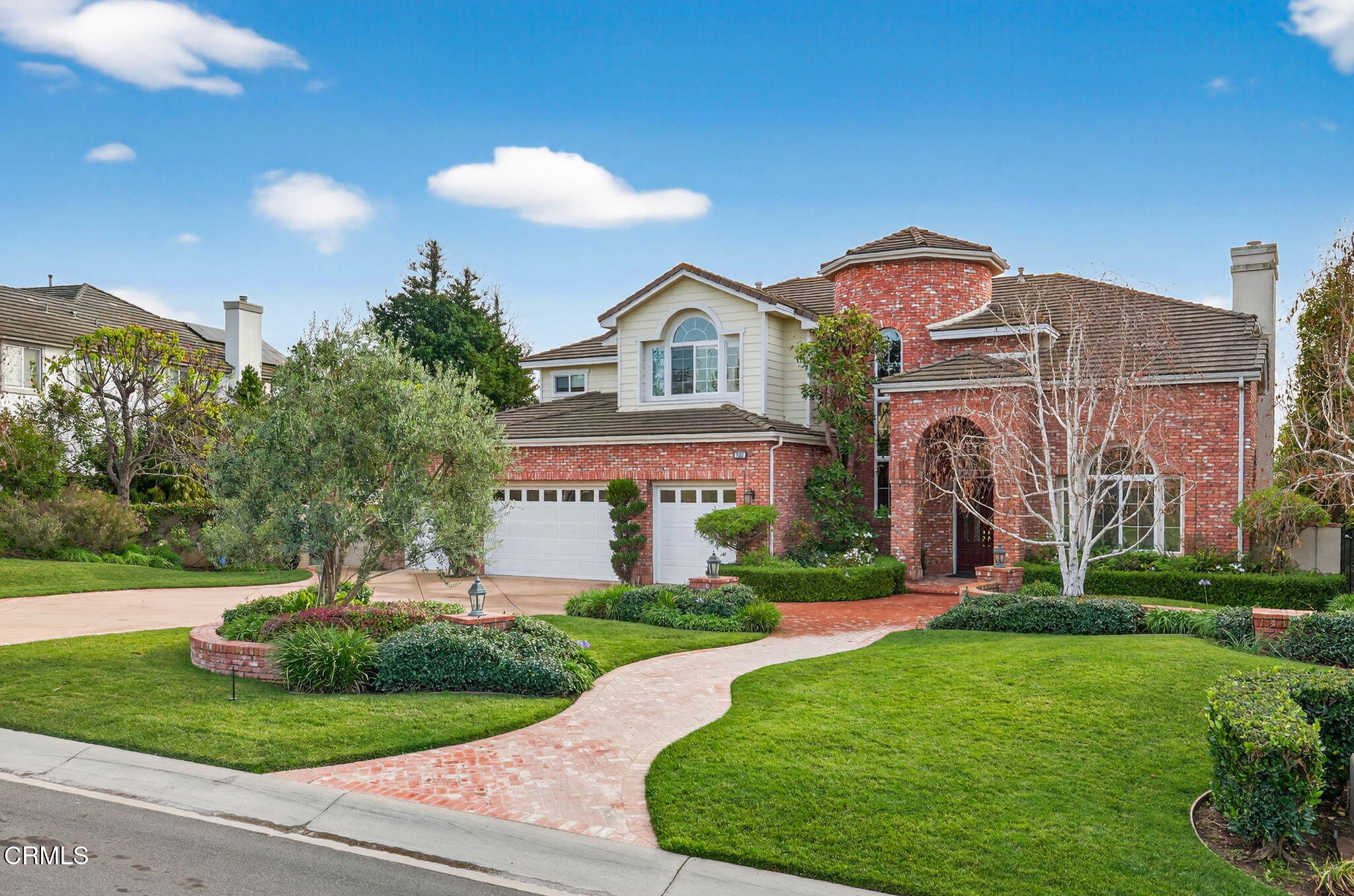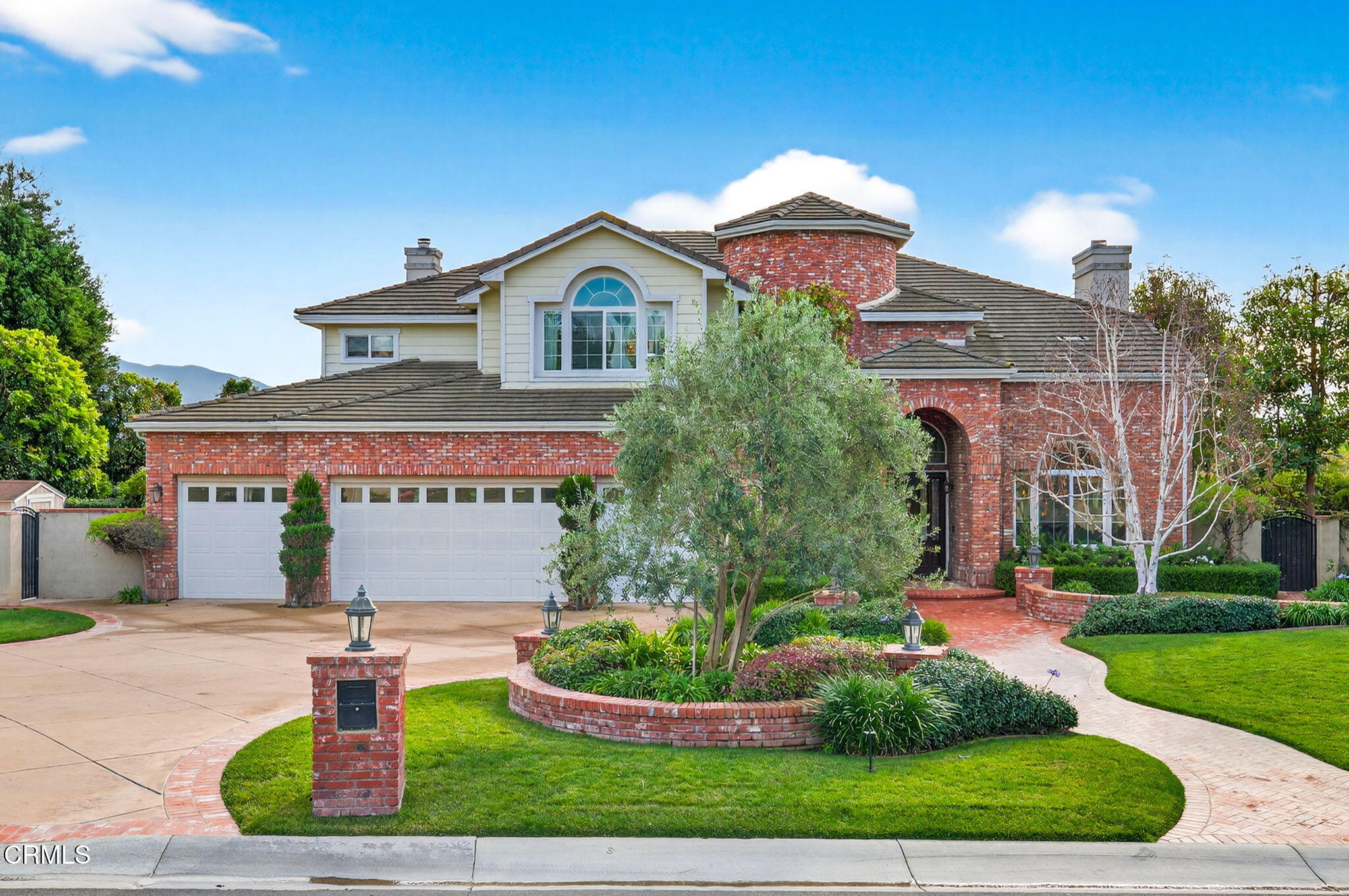 Set at the end of a serene cul-de-sac within the prestigious Pinnacle at Mission Oaks, this exceptional Toll Brothers Palos Verdes Federal Design estate truly has it all--space, views, and incredible indoor and outdoor living. The residence features five expansive bedroom suites and six bathrooms, each bedroom offering a private en-suite bath--including a downstairs guest suite with walk-in shower. Dual staircases frame the home's thoughtful layout, enhancing flow and function throughout. The large family room features a fireplace, custom built-in entertainment center, wet bar, and serves as the heart of the home, while the formal living room offers a second fireplace for elevated entertaining. The gourmet kitchen is a statement in both form and function, showcasing double ovens, a six-burner professional range with hood, walk-in pantry, premium appliances, reverse osmosis system, and breakfast nook with built-in desk area for added convenience. A private office with built-ins, a dining room overlooking the breathtaking backyard, and designer engineered hardwood flooring throughout complete the main level. Upstairs, a sophisticated loft opens to a view balcony capturing panoramic mountain and island vistas. The primary suite is a sanctuary, featuring a fireplace, private sitting area, expansive view balcony, and a spa-inspired bath with dual vanities, jetted soaking tub, oversized dual-head walk-in shower, separate his-and-her toilets, and an impressive walk-in closet. The additional bedrooms are all fantastic including a grand secondary suite with sweeping mountain views that rivals a primary retreat. The resort-style grounds are impeccably designed with pool, spa, fire pit, built-in barbecue with two-burner stove, manicured lawns, garden boxes, mature landscaping, storage shed, and curated outdoor lighting on timers. Additional premium features include owned Tesla solar system, whole-house vacuum system, owned water softener, ADT security, laundry room with washer and dryer included, and a four-car garage with epoxy-finished floors and abundant storage. A rare opportunity combining scale, sophistication, and sweeping views--this is luxury living at its finest in one of Camarillo's most coveted enclaves.