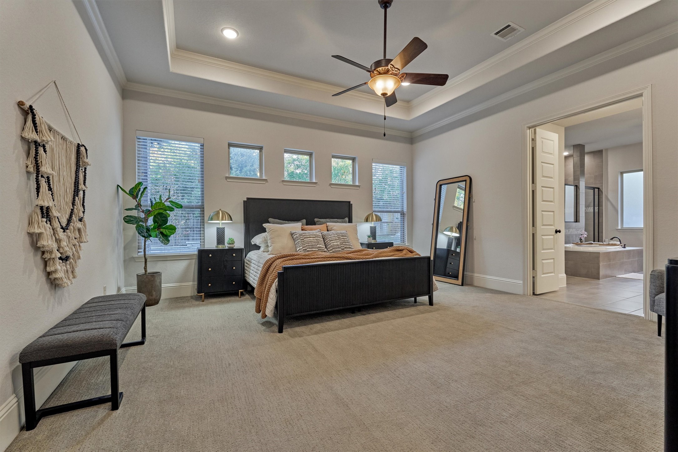 Gorgeous Custom home-5 bedrooms, 4.5 baths, 3 car oversized tandem garage, beautiful pool, covered patio, outdoor kitchen, large lot no back neighbors! Primary Bedroom & Guest Suite first floor. Dream kitchen-abundance of cabinets w/counter-tops, large island w/sink, walk-in pantry & gas cooktop. Living room a great place for family or entertaining w/wall of windows overlooking pool, floor to celling stone fire place. Home features extra large laundry room, home office, oversized gameroom & media room. New roof 2025- CertainTeed Landmark shingles, hand nailed w/amazing warranty, 2-16 seer HVAC systems, HVAC & pool professionally maintained, 2-Gas tankless water heaters. Amenities include recreation center w/pool, clubhouse, five miles of wooded greenbelt trails, Central Park- which includes a natural creek, footbridges, a nature themed playground, picnic areas, & trails. Lake Woodtrace, a real spring-fed lake that houses a canoe/kayak launch & a fishing dock