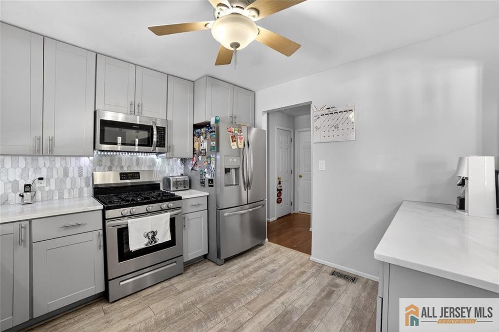 This well-maintained home offers a comfortable and versatile layout with water views and a desirable location near the bay. The main level features a stylishly updated kitchen with stainless steel appliances and quartz countertops, an updated full bath, two bedrooms, a living room, and a dining room. Newer windows and ceiling fans in the living room, dining room, and kitchen enhance comfort throughout the home. The lower level provides additional living space with one bedroom, a full bath, and a family room with a sliding door leading to the outdoor deck. The fenced-in backyard is ideal for entertaining and includes an above-ground pool and hot tub, both included. Major updates include a 3-year-old HVAC system and hot water heater, a 7-year-old roof, solar panels that help reduce electric costs, and an in-ground sprinkler system. Ideally located just one block from Cliffwood Beach Waterfront Park, Veterans Memorial Park, and the spray park, this home is also conveniently located near major highways and public transportation, offering the perfect blend of comfort, convenience, and coastal living.