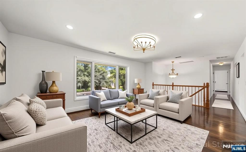 Welcome to this charming and well maintained Bi-level home in desirable town of Allendale. Situated on 1.5 acres the boasts approximately 1,982 sq. ft. of living space with expansion possibilities. The main floor has a living room with a fireplace, formal dining room, renovated eat in kitchen with granite counter tops. stainless steel appliances and sliding door to covered deck. The primary bedroom with half bath and an access to a full bath in the hall like Jack and Jill bathroom and two additional bedrooms completes the main floor. The lower ground floor consists of a family room with another fire place, access to the patio and expansive backyard, combination of Laundry room and full bath, and attached 2 car garage. The home also features central a/c, baseboard heat and sprinkler system. Ideally located close to schools, the center of town, houses of worship, and major highways.