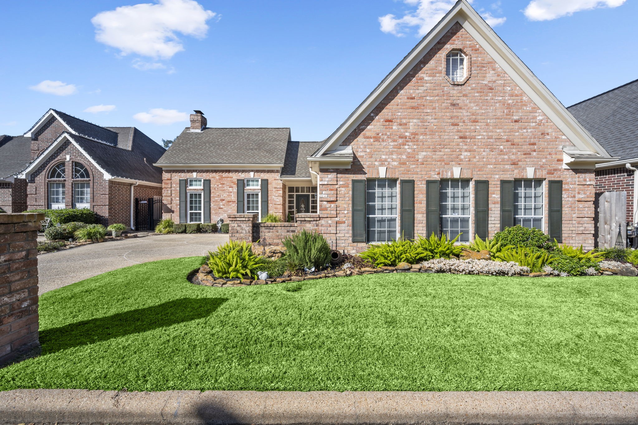 Welcome to this stunning one-story home in the highly desirable Champions area. Featuring 3 bedrooms and 2.5 baths, this home boasts soaring ceilings, impeccable craftsmanship and abundant natural light. The open-concept design seamlessly transitions from the spacious kitchen into the living area, ideal for everyday life and entertaining alike. Granite countertops, breakfast bar, and island with a cooktop makes this kitchen a standout. The primary suite includes a cozy sitting/library nook and easy access to backyard patio, offering a peaceful retreat within the home. Additional highlights include a carpet-free interior, a flex room perfect for a home office, a whole-house water softener, and a vast backyard complete with a covered patio. All this and a convenient location just minutes from shopping and medical facilities.