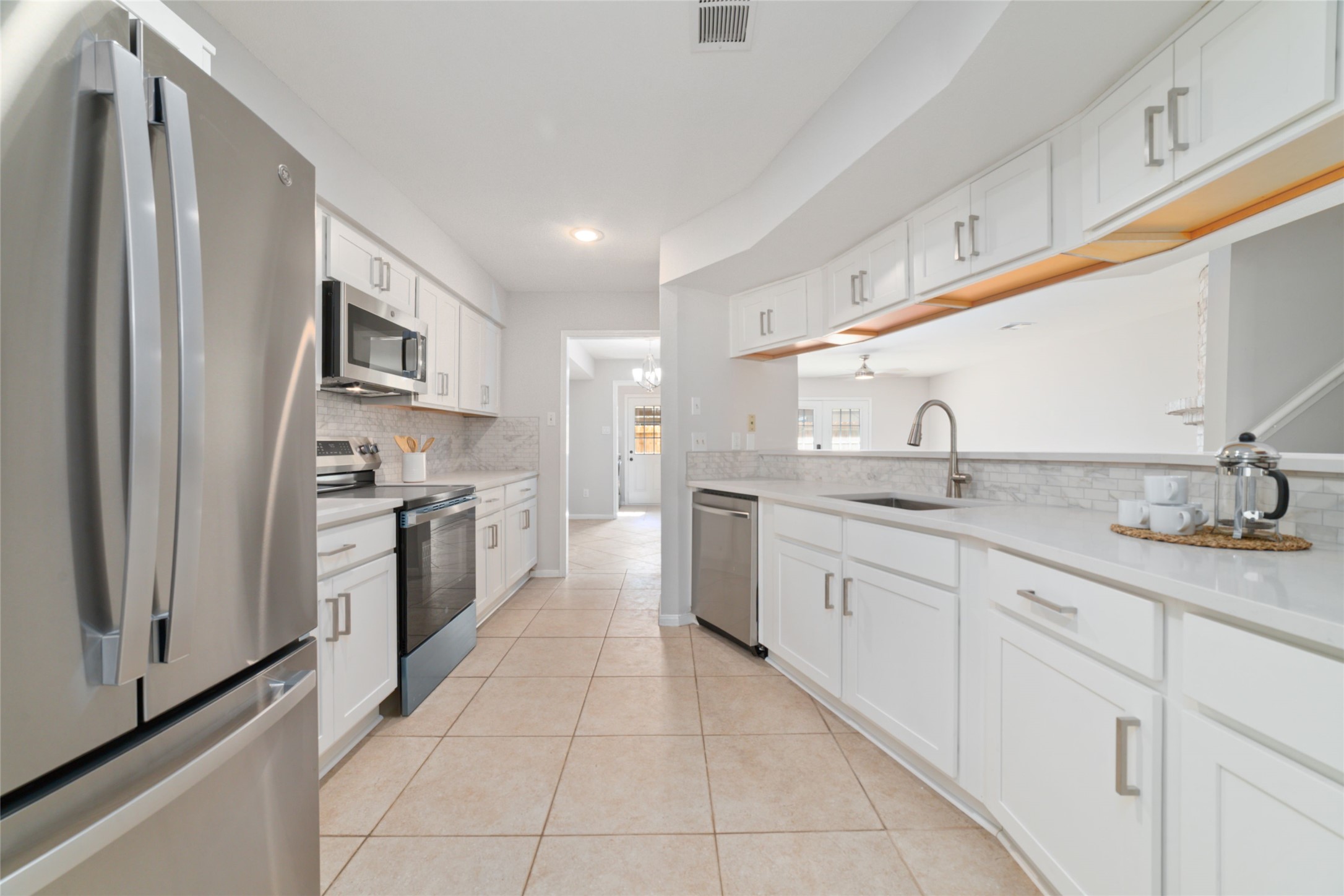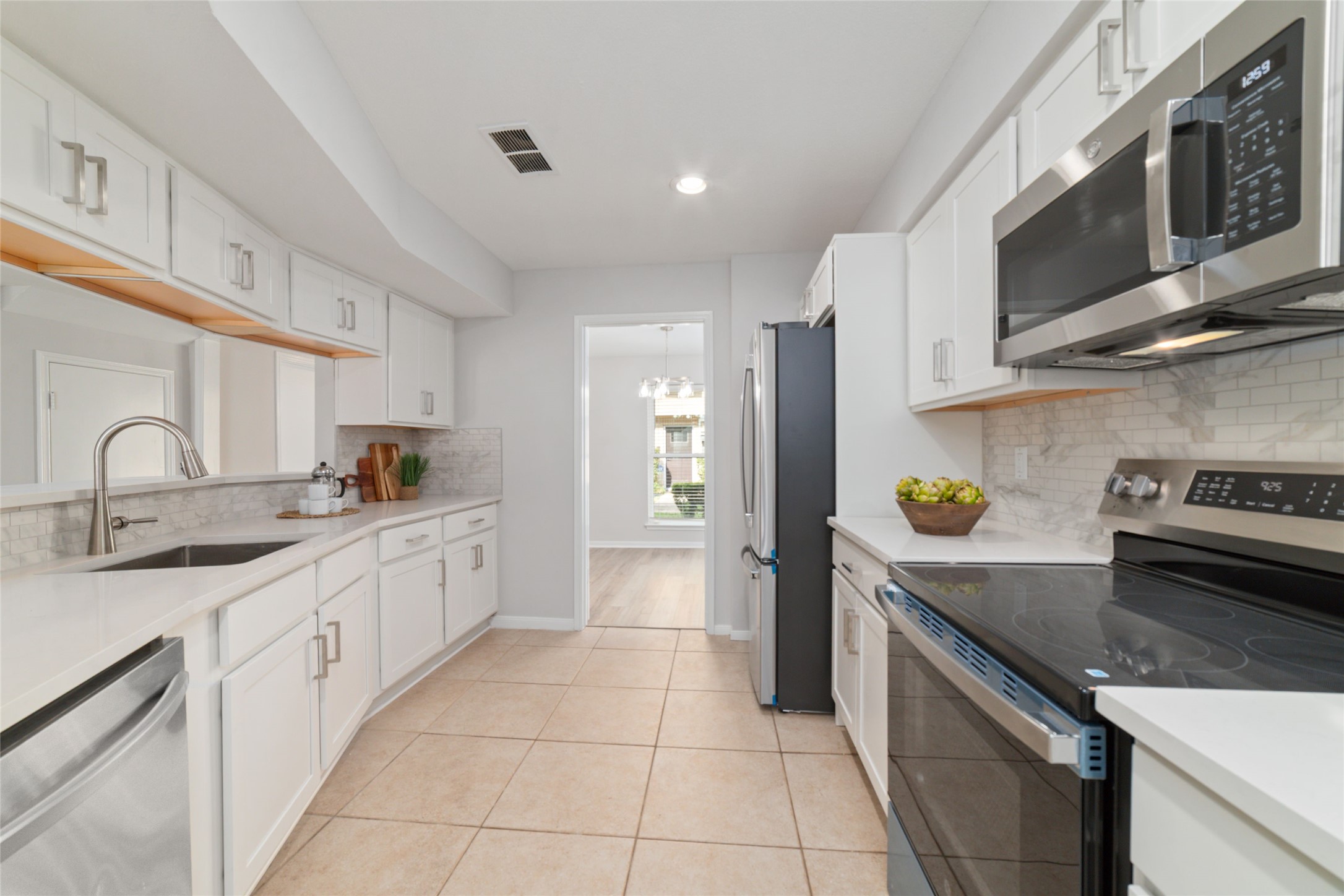 UPDATES GALORE & a fantastic location in the heart of the Energy Corridor! 3 minutes from the Katy Fwy and down the street from highly acclaimed Stratford HS. This beautifully updated 3/2.5 townhome has it all! New roof in 2024, upgraded plumbing & electrical...not to mention the gorgeous, updated kitchen (new appliances, crisp, white cabinetry, quartz countertops, backsplash, lighting). The fridge, washer & dryer convey. This home has functional hard surface flooring throughout/no carpeting! The large living area offers a stunning whitewashed brick/gas fireplace. The french doors lead to the private patio area. All 3 bathrooms have been updated with gorgeous cabinetry, quartz countertops, lighting/hardware. The interior has been freshly painted with a neutral color palette, along w/ new light fixtures and ceiling fans. Attractive HOA fees include exterior home maintenance (roof/carport/siding/common landscaping) & water/sewer bill. Amenities include: 2 pools, tennis courts, clubhouse.