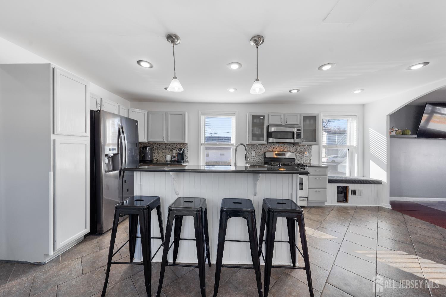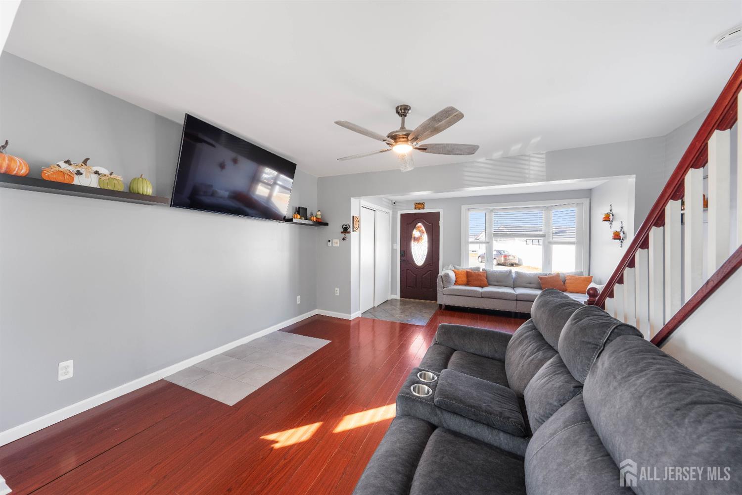 Welcome Home to this impeccably maintained and beautifully updated home located in the Lawrence Harbor section of Old Bridge Township. The first level features an open concept floor plan with a spacious living room awash in natural light. The beautifully updated kitchen features granite countertops, stainless steel appliances, and tiled backsplash. A spacious laundry room and a half bath complete this expansive first floor. The second floor features two completely renovated bedrooms and a beautifully updated full bathroom. New flooring, recessed LED lighting, ceiling fans, window treatments, and freshly painted throughout - truly move in condition! This home also features a full basement, partially finished with a walk out door to the rear yard. The large fenced in rear yard is ideal for your backyard oasis, entertaining, or just enjoying the tranquility this unique location offers. Last but not least, the detached two car garage with second floor loft and workshop area offers incredible value and utility to this property. Oversized driveway offers abundant off street parking. Conveniently located to shopping and major roadways.