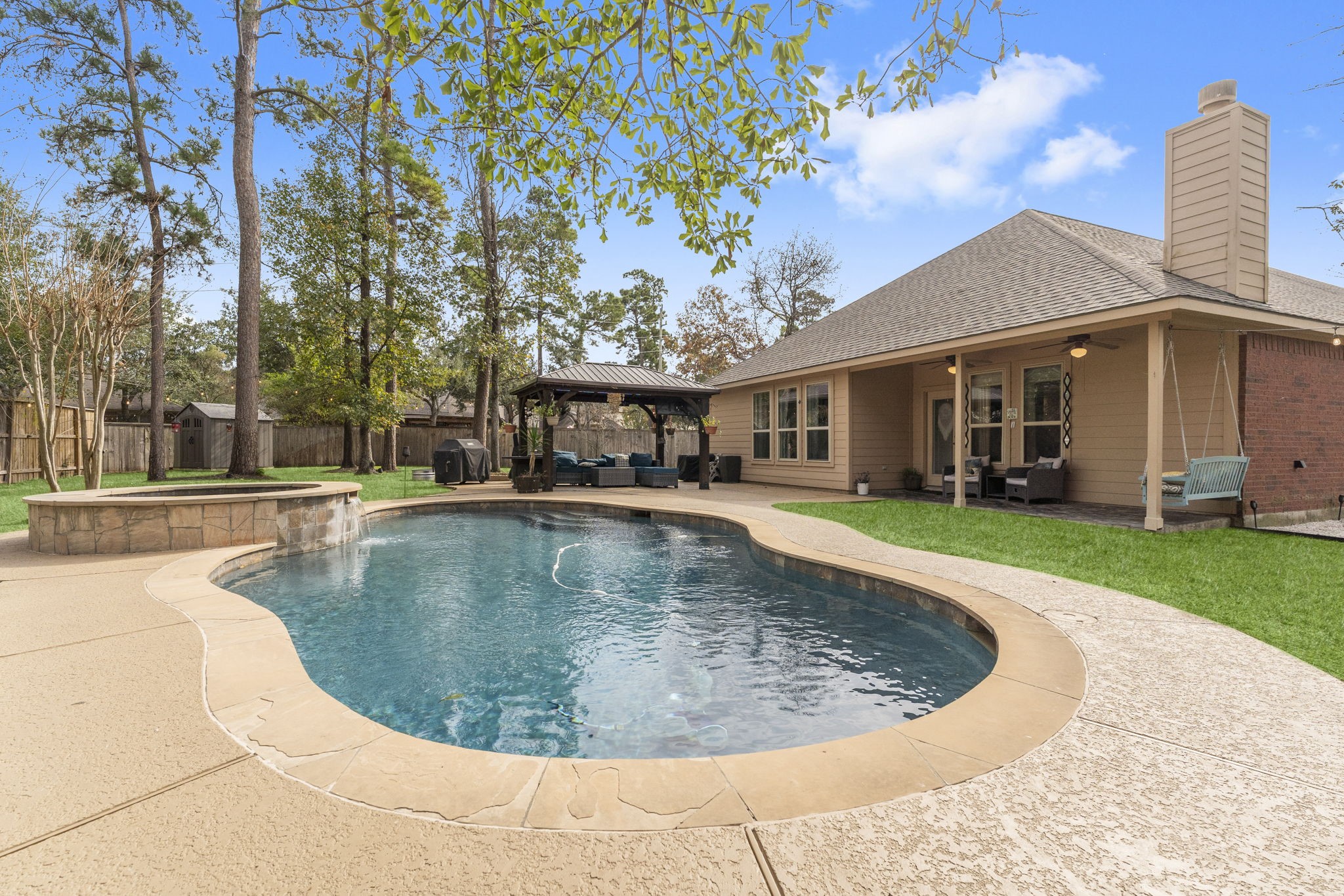 Welcome to 130 E Lasting Spring Circle, a beautifully maintained home nestled in the heart of The Woodlands. Set on cul de sac & on 1/3 acre lot surrounded by mature trees, the backyard is a true retreat—ideal for entertaining or relaxing year-round. Enjoy a private pool & spa, expansive patio & covered gazebo perfect for gatherings & outdoor dining; no rear neighbors. Home features a thoughtful layout with light-filled living spaces, flexible rooms & a seamless flow between indoor & outdoor living. Kitchen opens to the main living area, making it perfect for hosting, while the primary suite offers a peaceful escape at the end of the day. Updates include hot water heater, roof, carpet, interior paint & light fixtures, pool equip, electrical, gazebo & more! Conveniently located near parks, trails, shopping, dining & schools. Zoned to acclaimed Tomball ISD! Easy access to 99, Hardy Toll Rd & I-45. This home offers both tranquility & accessibility—an ideal combination for today’s life!