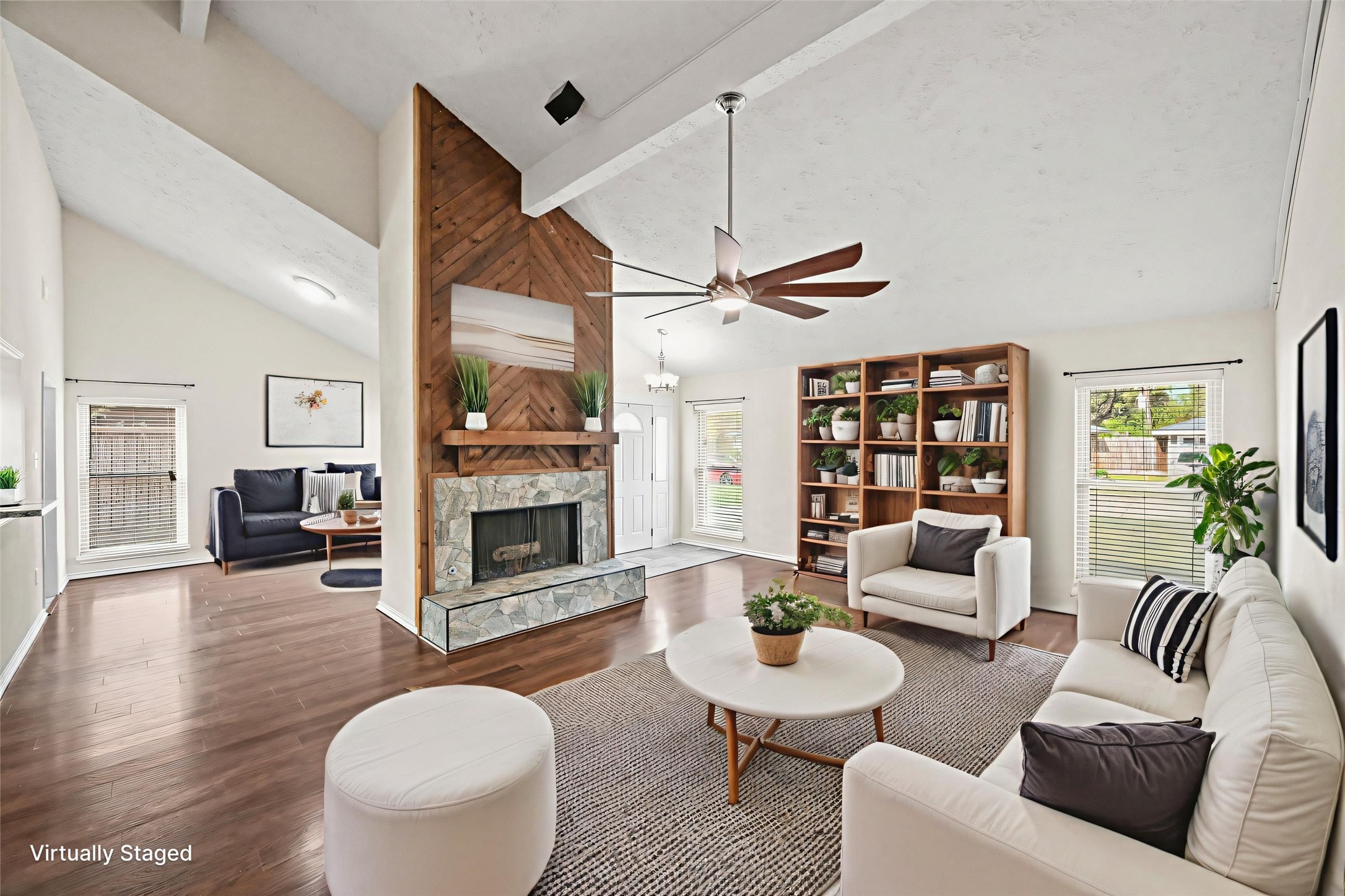 Beautiful 1 story home in the desirable Ponderosa Forest community - an original Kickerillo development nestled among mature trees w timeless charm and space to grow. Boasting 3 beds, 2.5 baths, formal dining, large breakfast rm & sunroom. Soaring ceilings in living w accented floor to ceiling gas fireplace. Modern kitchen w granite counters, white cabinets, SS appliances opens to both dining areas. Primary complete with tall ceilings, private outdoor patio, updated bath w granite counters, dbl sinks & rainfall showerhead. Secondary bath w granite counters, tile accent wall & oversized soaking tub. NO carpet throughout! Tons of storage - all beds w walk-in closets. Spacious backyard & 2 car detached garage + long driveway for extra parking. Fresh exterior & interior paint, 2018 roof, tankless H20 heater & PEX plumbing. Prime location near parks, shopping, dining & the airport w quick commutes to main hwys. This move-in ready gem offers space, style & convenience. Schedule a tour today!