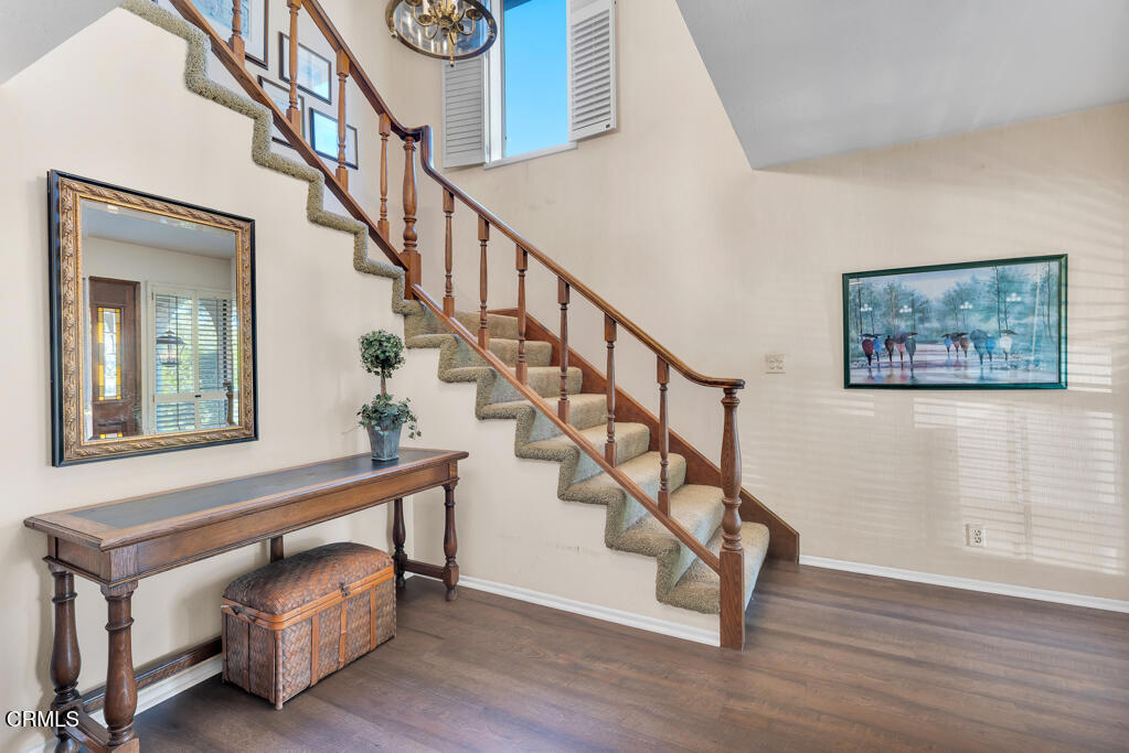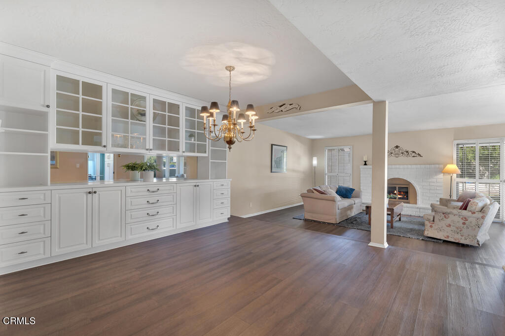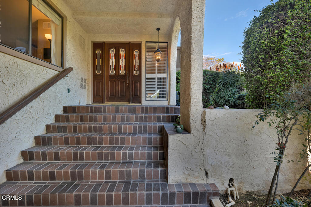 Introducing Villa Esplendido, a charming enclave ideally located adjacent to Nancy Bush Park. This spacious two-story attached residence enjoys picturesque views of the park and sparkling Camarillo city lights, offering a blend of comfort, character, and lifestyle convenience. The main level features a welcoming living room, dining room, kitchen, laundry room, plus a generously sized bedroom and 3/4 bathroom--perfect for guests or flexible living. The recently remodeled eat-in kitchen shines with modern upgrades including quartz countertops, double ovens, and a gas cooktop, along with a sliding door that fills the space with fresh air and natural light. The living room is warm and inviting, highlighted by a gas fireplace, bay window with seating area, built-in bookshelves, and sliding doors that open to a large rear patio--ideal for indoor-outdoor entertaining. The dining room offers a built-in hutch with abundant storage for hosting essentials. Cleverly tucked beneath the staircase is a hidden storage area with built-in shelving, perfect for pantry items, crafts, or hobbies. A truly unique feature of this home is the subterranean wine cellar, complete with a tall center counter--an intimate space to share a glass of wine with friends or family. This room can also serve as additional storage if desired. Upstairs, you'll find three spacious bedrooms filled with natural light. The primary suite is a private retreat, featuring a large walk-in closet, sitting area, gas fireplace, and a well-appointed bathroom with separate tub and shower. Step outside onto the private deck to enjoy serene views of the park and surrounding neighborhood. One additional bedroom also offers its own deck with pleasant views, while the remaining bedroom shares a hall bath. The property shares one wall with an adjacent home and is ideally situated in Camarillo--just minutes to the beach, downtown Ventura, and approximately one hour to Santa Barbara or Los Angeles. Villa Esplendido offers space, character, and a location that captures the best of coastal Southern California living.