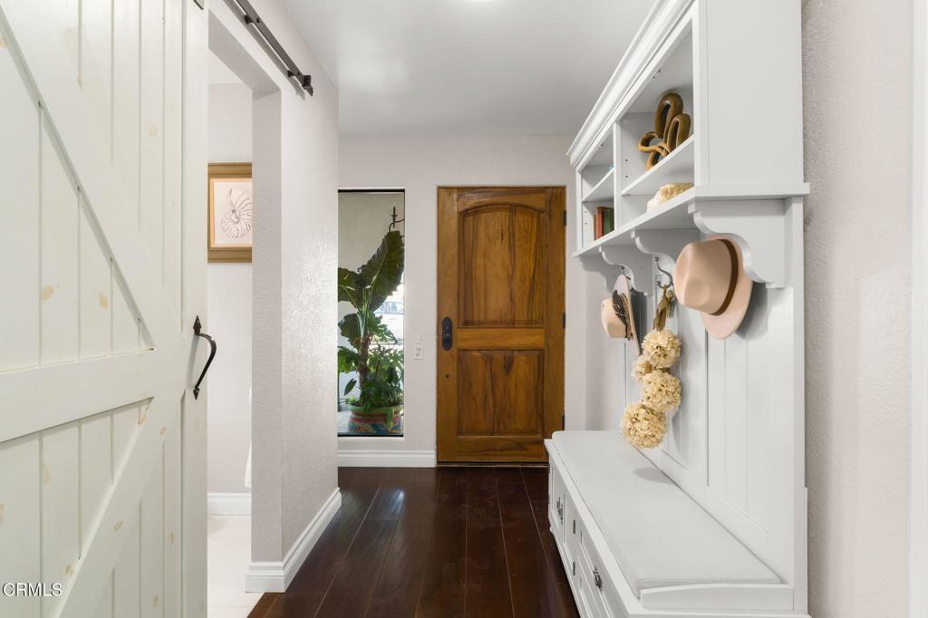 Gorgeous beach house just steps from the sand, this custom-built Santa Barbara-style home delivers the ultimate coastal lifestyle with comfortable elegance and an open-concept design. Newly installed engineered wood flooring flows throughout the home, creating a warm, cohesive backdrop for beachside living.The kitchen is a true showpiece, featuring brand-new custom cabinetry, granite countertops, a pot filler, and a built-in pizza oven--perfect for entertaining or everyday enjoyment. Two bedrooms on the main level, one equipped with a Murphy bed, along with two separate bathrooms, offer exceptional flexibility for guests, a home office, or multi-generational living.Upstairs, the private primary suite is a serene retreat with a barn-door entry, crown molding, double closets, and French doors that open to a private outdoor deck. A separate dressing area includes custom closet organizers and a built-in ironing board, while the beautifully appointed en-suite bath features dual sinks and an impressive double shower.The home offers two distinct living spaces--one with vaulted ceilings that flow into the kitchen, and another that opens directly to the spacious backyard, seamlessly blending indoor and outdoor living.Step outside to a backyard designed for both entertaining and relaxation, complete with an outdoor kitchen area, hot tub, and a private walking path providing easy beach access. An outdoor shower makes rinsing off after a day at the beach effortless.Notable upgrades include a newer roof (2019), new exterior stucco (2020), updated exterior concrete walkways, a new 125-amp electrical panel (2025), and air conditioning (2026). Ideally located on highly desirable Shores Way, this exceptional beach home offers style, comfort, and functionality in one of the area's most sought-after coastal settings.