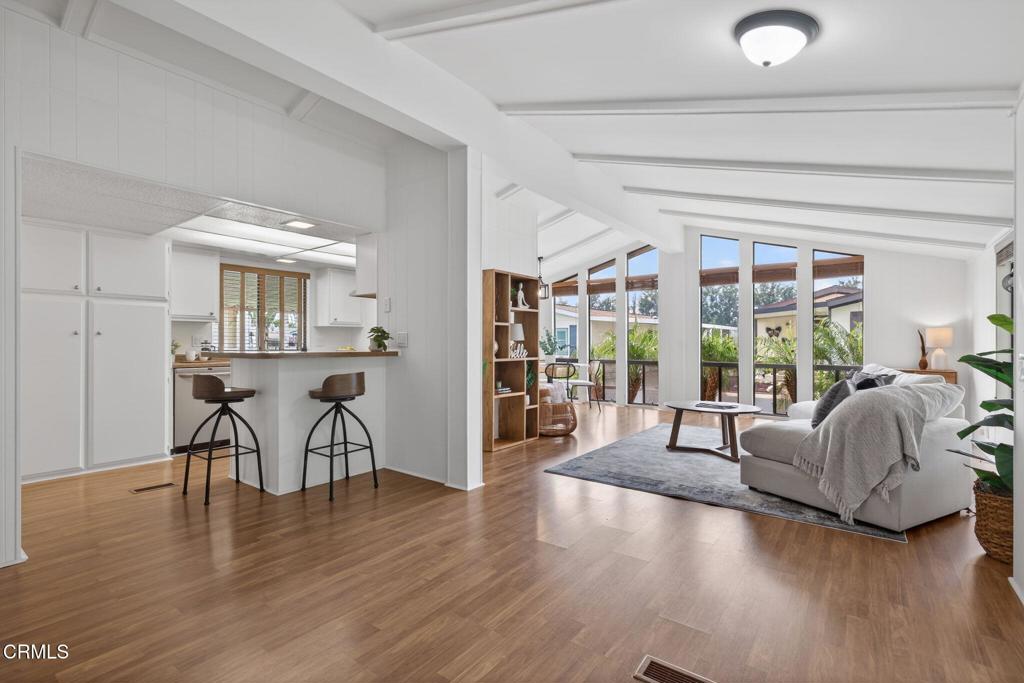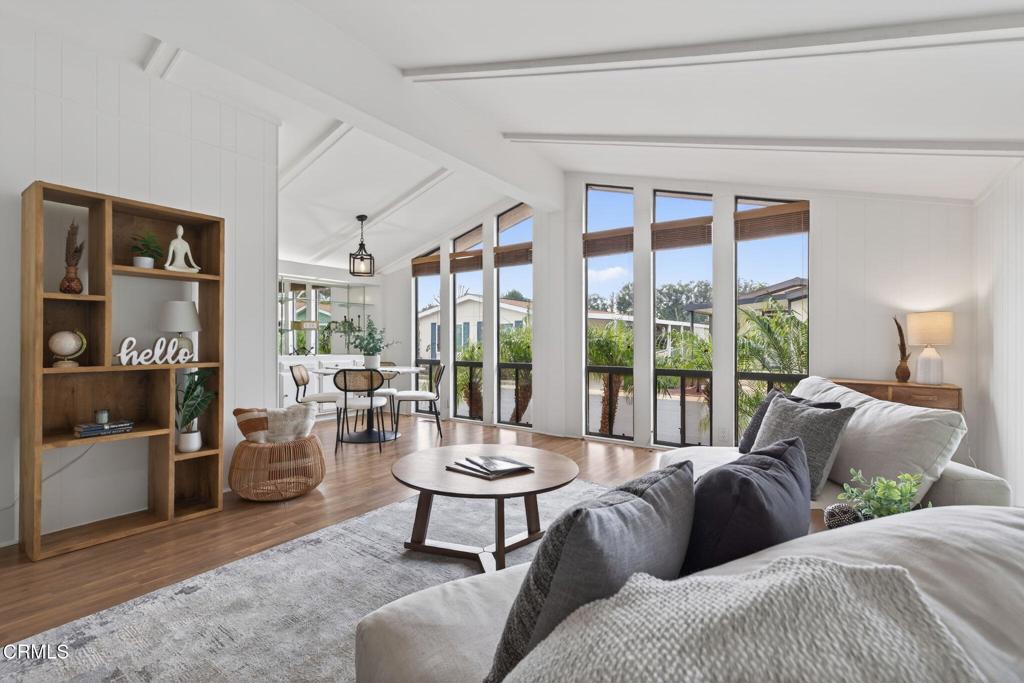 Located in the desirable Patrician Mobile Home Park, a vibrant 55+ community, this home offers 2 bedrooms, 2 bathrooms, and approximately 1,440 square feet of living space. High ceilings enhance the open feel, making the home feel even more spacious. The bright, open floor plan features laminate flooring in the main living areas and carpeted bedrooms. Floor-to-ceiling windows in the main living area capture beautiful sunset views--especially this time of year--while filling the home with natural light. The generously sized primary bedroom includes his-and-hers closets and a private bathroom with a soaking tub and separate shower. Additional highlights include a newer roof (less than two years old), mirrored closet doors in both bedrooms, a private laundry room, a large carport, and a storage shed. The home is comfortable as-is, with plenty of potential to make it even more inviting with your own personal touches. Patrician Mobile Home Park offers excellent amenities, including a sparkling pool and hot tub, outdoor cooking area, and an expansive clubhouse with a full kitchen, fitness room, and library/reading room. El Camino Real Park is within walking distance for those who enjoy an active lifestyle. The community is conveniently located just a short drive from local beaches and marinas, historic downtown Ventura, shopping, and hospitals.
