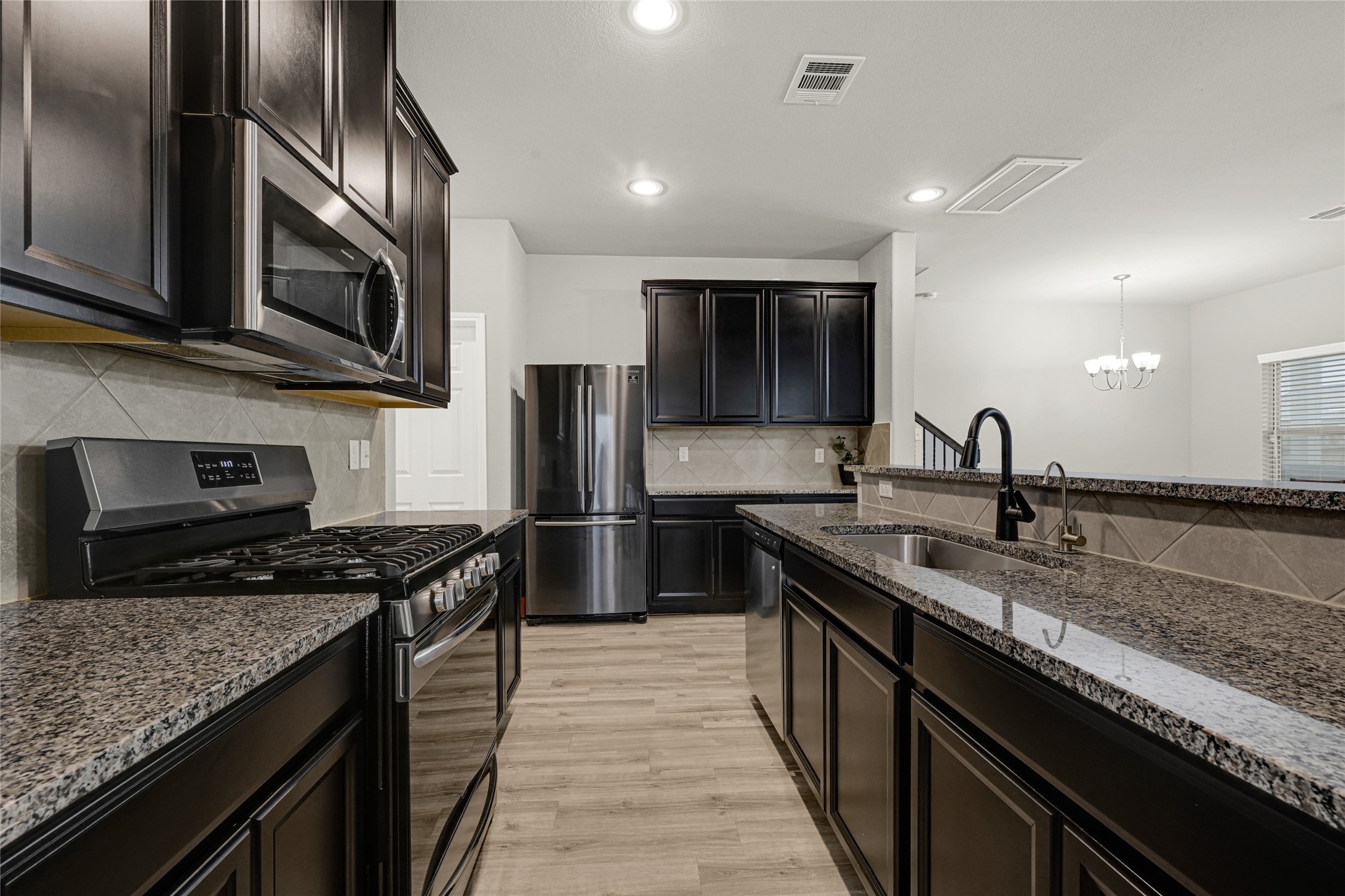 This two-story home offers 4 bedrooms, 2.5 baths, and a versatile upstairs loft, designed with comfort and functionality in mind. The main living area features an open, airy layout that flows naturally into the dining space and kitchen, ideal for both everyday living and entertaining. The kitchen is finished with granite countertops, generous cabinetry, a spacious island, and recessed lighting, creating a bright and welcoming atmosphere. Upstairs, the primary suite offers a private retreat, while the additional bedrooms and loft provide flexible space for work, play, or relaxation. A covered patio and 2-car garage complete the home. Located just minutes from Hobby Airport with convenient access to the Texas Medical Center, NRG Stadium, University of Houston, Pearland, and surrounding areas.