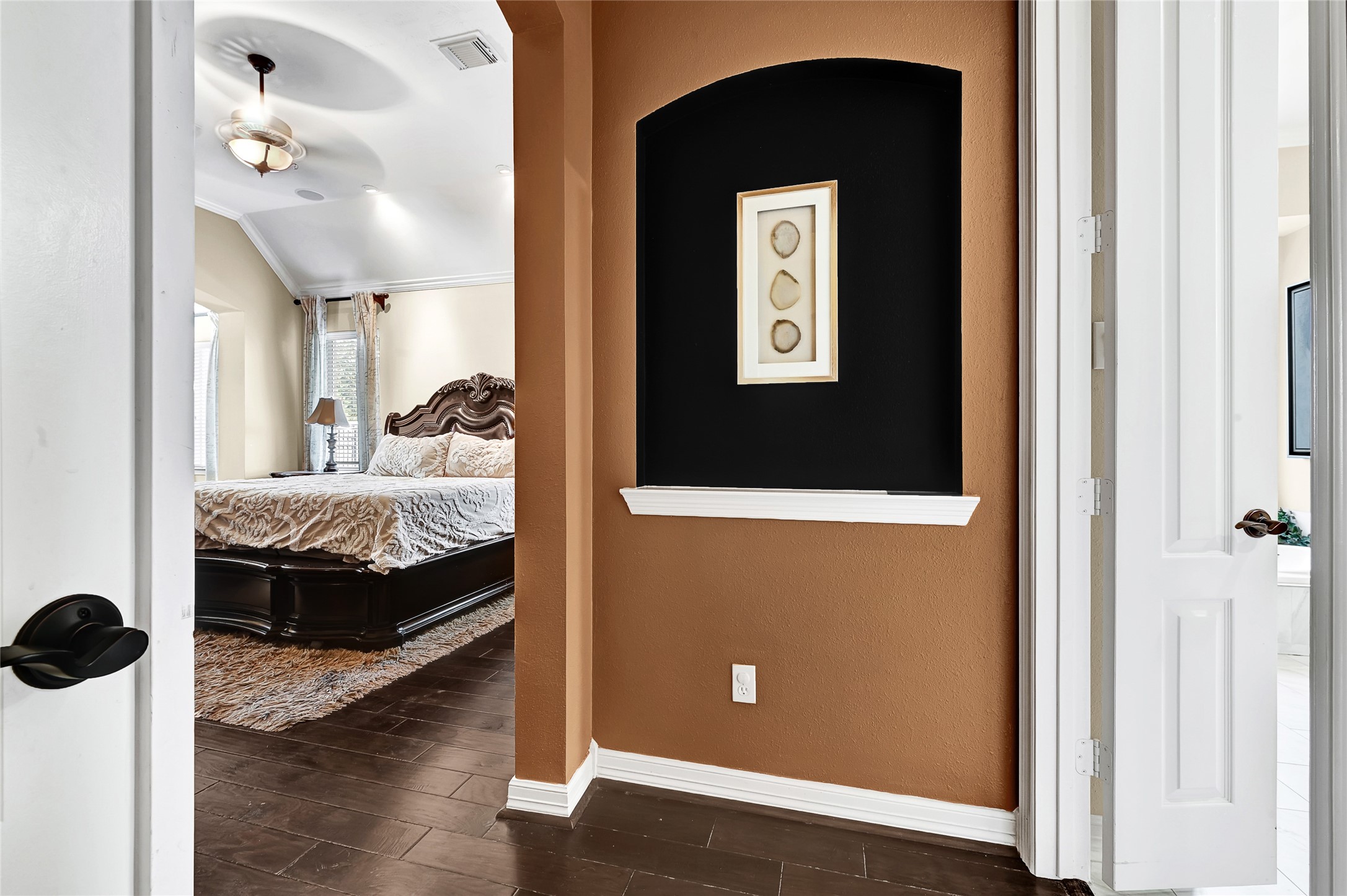 Immaculate residence situated on a generous 21,811 sq ft corner lot. Lush backyard retreat! Property features a pool, spa, gas fire bowls, outdoor cabana, and kitchen with ample patio space. Elegant wood floors flow throughout. Study with French doors and formal living room with custom details. Well-designed layout includes a gourmet kitchen with stainless steel appliances, granite countertops, and walk-in pantry. Family room showcases a stunning fireplace and backyard views. Primary suite offers a cozy fireplace, spa-like bathroom, and walk-in closet. Additional bedrooms are spacious. Upstairs boasts a large game room/5th bedroom with ensuite bathroom. No flooding, No MUD taxes.