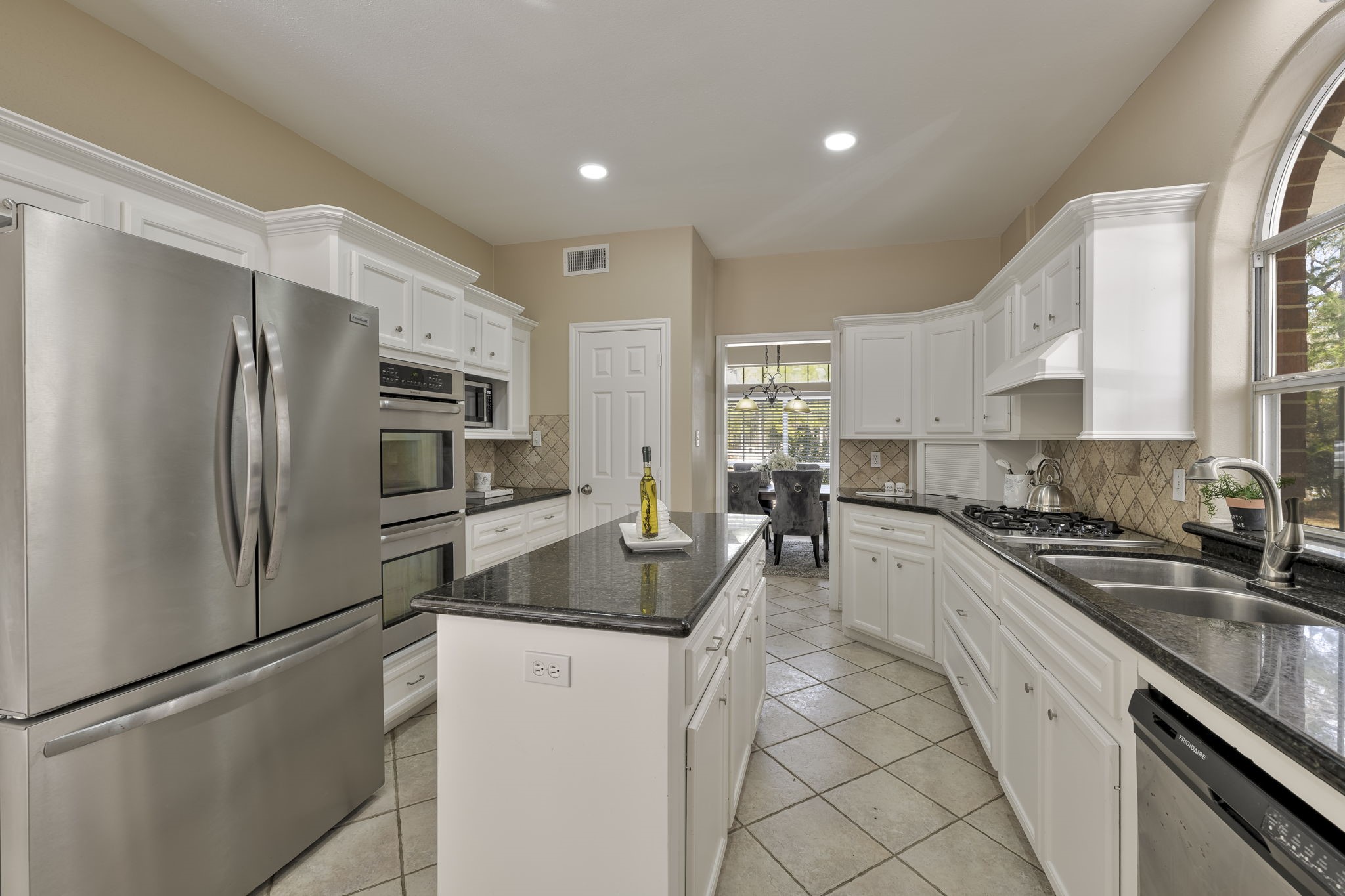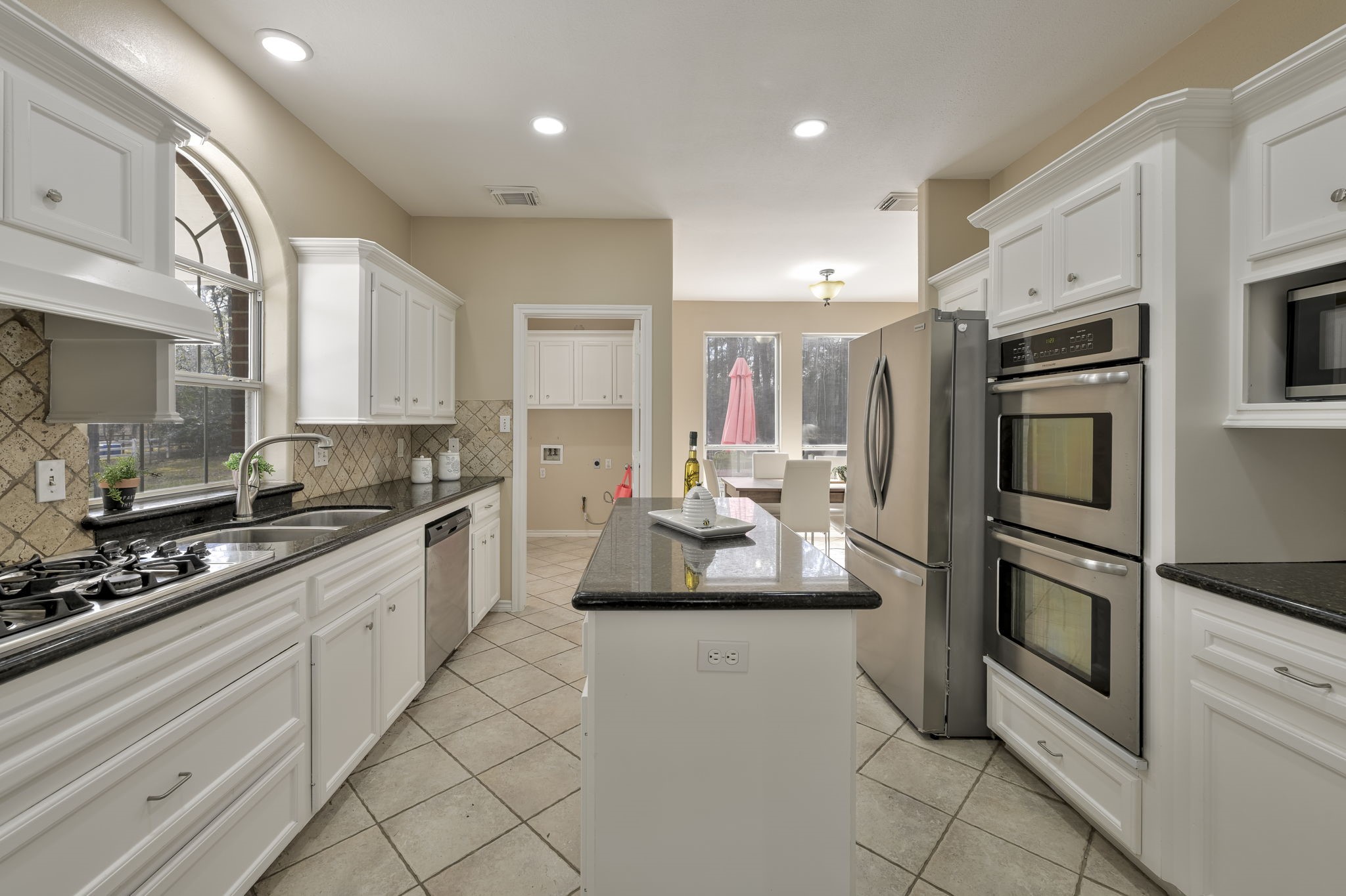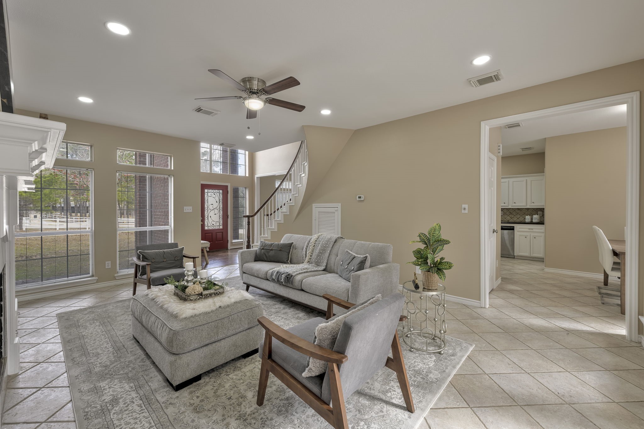 Privately set on over 2 wooded acres in Magnolia, home offers rare seclusion—tucked mid-street & surrounded by mature trees so you won’t even know you have neighbors. White picket fence & covered porte-cochère provide charm & convenience. Inside, grand entry spiral staircase welcomes you. New carpet throughout & energy-efficient LED recessed lighting refresh home. Formal dining sits to left, formal living to right with tile floors, plus under-stair storage & half bath. Kitchen features large island, built-in ovens, appliance garage, & ample counter space opening to informal dining area. Main-level primary suite includes two closets, dual sinks, soaking tub, separate shower, & private water closet. Upstairs offers secondary living area, oversized bedroom ideal as second primary, & two bedrooms with shared bath. Detached 3-car garage with plumbing & electrical offers ADU potential, plus workbench & upstairs storage. Firepit area & room for pool. Call today for a private showing.
