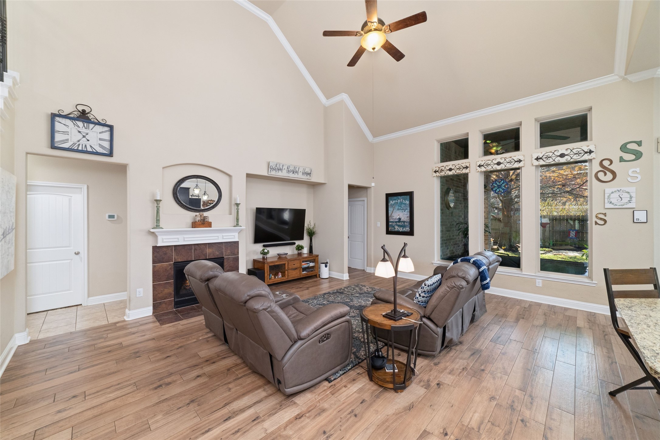 Welcome to this beautifully designed 1.5-story home offering the perfect blend of comfort, functionality, and style. The thoughtfully designed floor plan features 4 spacious bedrooms and 3 full bathrooms on the main level, providing convenient single-story living for everyday life. The primary suite provides a private retreat with an elegant en suite bath featuring double sinks and a spacious walk-in closet.The kitchen features a large island and abundant counter space, seamlessly flowing into the main living area which is filled with natural light. Upstairs, you’ll find a game room along with an additional bedroom and full bath, making it an ideal space for guests, teens, or multi-generational living.Outdoor living shines with an extended custom patio overlooking a beautifully landscaped backyard with a tranquil water feature.Additionally, the home features a whole house generator. Zoned to highly sought-after Katy ISD schools, this home delivers comfort, style, and exceptional value.
