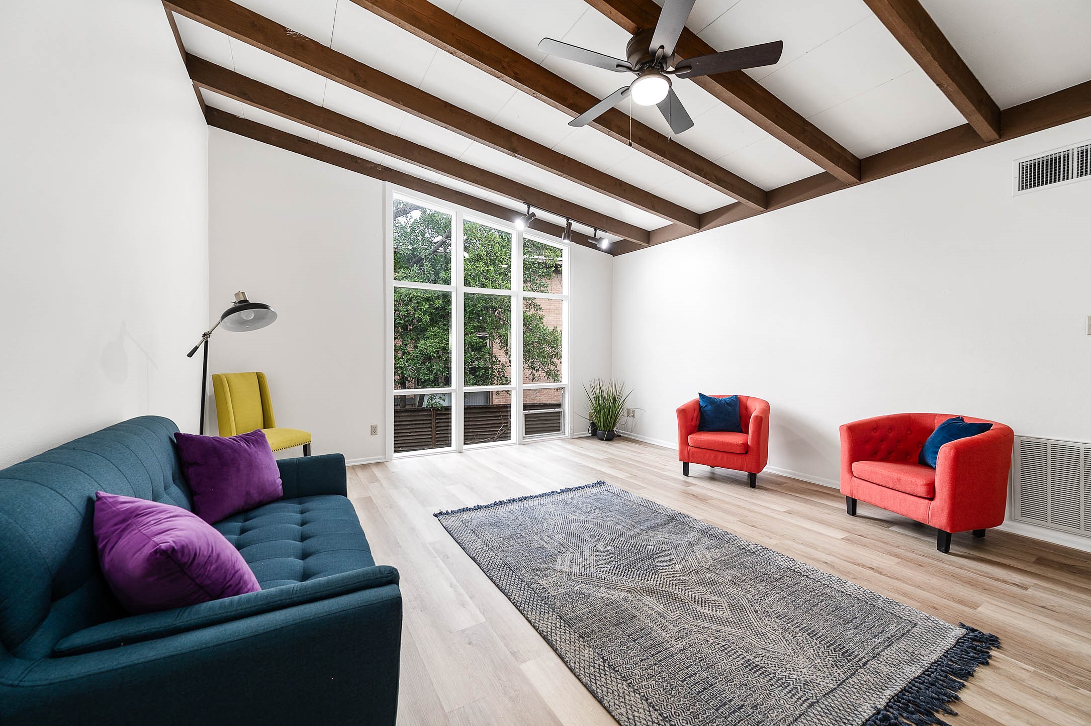 Contemporary 1 bedroom, 1 bath condominium located in the Hillside Townhomes community. This 928 sq/ft unit features an open living and dining layout with high ceilings, exposed wood beams, ceiling fan, and large windows providing abundant natural light. Living area includes a fireplace and built-in shelving. Kitchen offers electric range, single oven, dishwasher, disposal, ample cabinetry, and functional counter space. Primary bedroom includes generous proportions and access to full bath with tub/shower combo. Central electric heating and cooling. Community amenities include a pool and landscaped grounds. Zoned to Memorial Elementary, Hogg Middle School, and Lamar High School. Convenient access to I-10, Memorial Drive, and nearby dining and shopping. Schedule your private showing today!