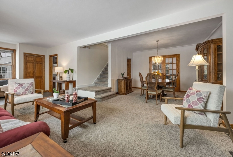 WELCOME HOME to the heart of desirable West Caldwell and this spacious yet charming 4 BEDROOM 2.5 BATH COLONIAL. You will love where you live when you are a part of this tranquil community of homes, conveniently located close to Richard Park, top rated schools, shopping and dining. Step inside to a SUNNY & BRIGHT interior with a very flexible floorplan for living and entertaining and working from home. The comfortable living room features a gorgoeus picture window, brick gas fireplace with mantle and flows nicely into the ultra spacious formal dining room. Both rooms have hardwood flooring under the carpeting. French doors then lead to the family room, which easily holds a large sectional sofa. The kitchen features gas cooking and its own breakfast room with sliders leading to the outdoor walk down deck. Upstairs, you will love the PRIMARY BEDROOM SUITE addition which includes a walk in closet and a very pretty primary ensuite bath. All other bedrooms on this level also have hardwood floors under the carpet and the updated main bath is nicely appointed. Walk up attic and basement are both great for lots of storage. Backyard property is green and level and has lots of potential for outdoor enjoyment. Move right in and enjoy and then make this fabulous home even better with your own special upgrades. All public utilities and low taxes are here and this PRIME LOCATION means an easy NYC commute.