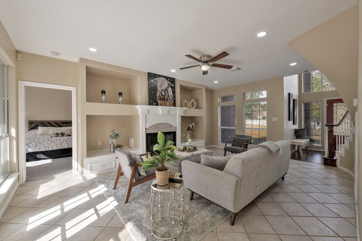 Privately set on over 2 wooded acres in Magnolia, home offers rare seclusion—tucked mid-street & surrounded by mature trees so you won’t even know you have neighbors. White picket fence & covered porte-cochère provide charm & convenience. Inside, grand entry spiral staircase welcomes you. New carpet throughout & energy-efficient LED recessed lighting refresh home. Formal dining sits to left, formal living to right with tile floors, plus under-stair storage & half bath. Kitchen features large island, built-in ovens, appliance garage, & ample counter space opening to informal dining area. Main-level primary suite includes two closets, dual sinks, soaking tub, separate shower, & private water closet. Upstairs offers secondary living area, oversized bedroom ideal as second primary, & two bedrooms with shared bath. Detached 3-car garage with plumbing & electrical offers ADU potential, plus workbench & upstairs storage. Firepit area & room for pool. Call today for a private showing.
