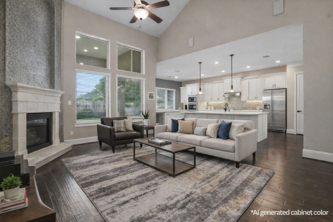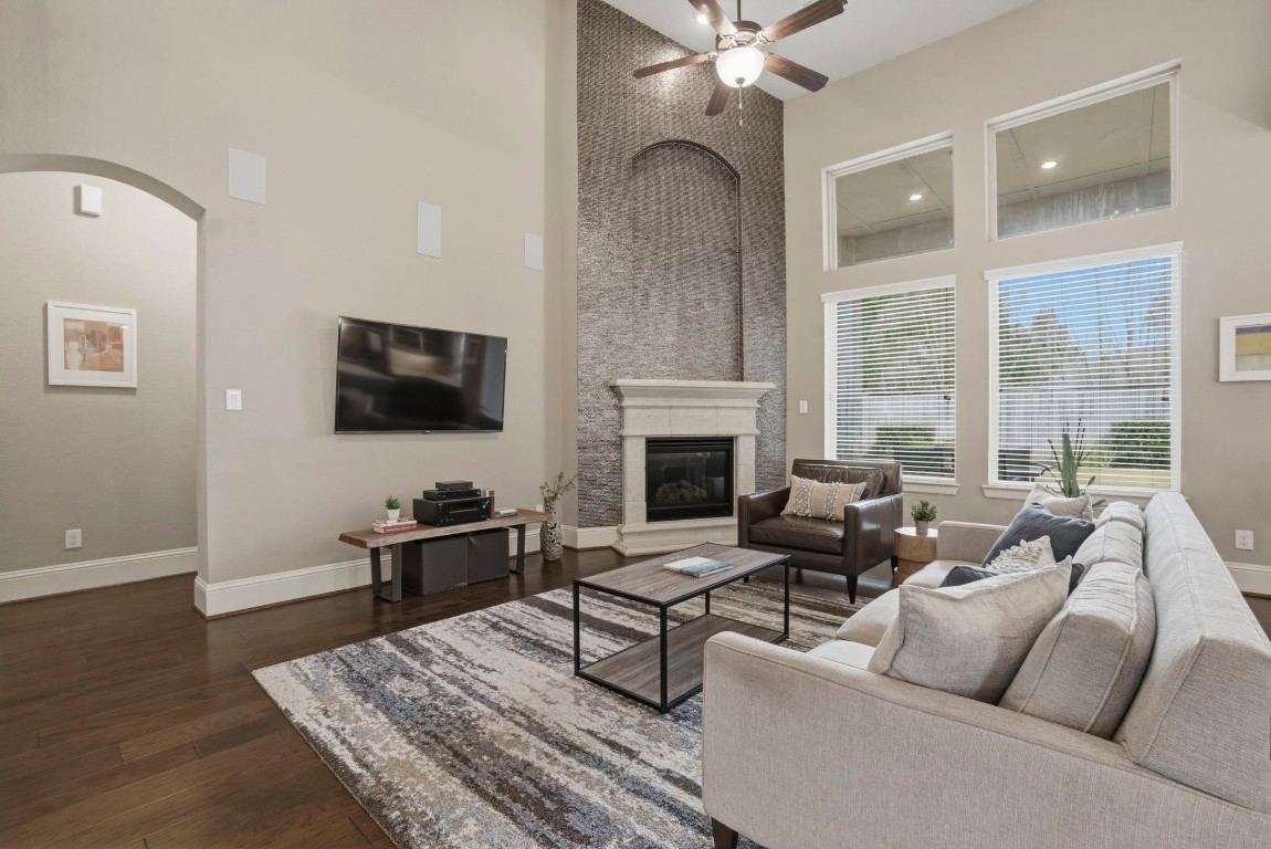 Welcome to 75 W Sawyer Ridge Dr, nestled in the sought after Liberty Branch community of The Woodlands. This exceptional David Weekley home features an updated chef's kitchen, quality builtins, floor to ceiling fireplace & newly installed, hand-scraped wood flooring throughout the first floor living space. The kitchen showcases brand-new Quartz countertops, premium appliances & an oversized island overlooking the family room. Luxurious primary retreat with dual vanities, a soaking tub, separate shower & generous walk-in closet; 2 bedrooms on the 1st floor! Versatile spaces include a light-filled study, a large game room & well-appointed bedrooms. Oversized 3-car garage with addl 1/2 bath & ample storage. Great outdoor space with a covered back patio; no rear neighbors! Zoned to award-winning Tomball ISD. Short walk to Creekside Green, HEB & Rockwell Park & near shopping & dining. Convenient commuter access to I-45 & 99. The Woodlands lifestyle at its best. Schedule your showing today.