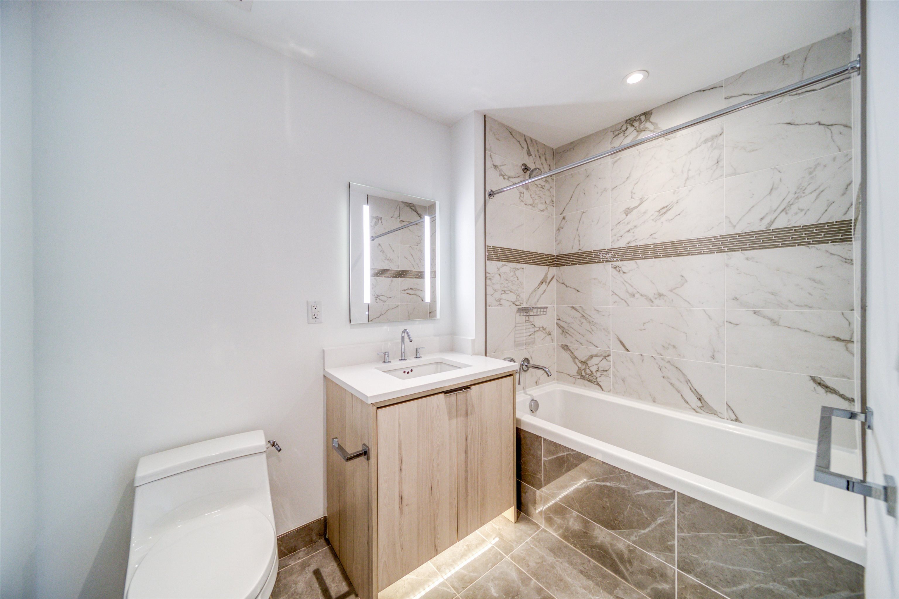 Luxury Condominium "Avora"!! Commuter's Dream!!! 2 bed 2 bath unit with 1,264 sq. ft of modern living space available in the waterfront building. One indoor garage parking space, water and gas included in maintenance fee. High quality hardwood floor throughout, quartz countertop, modern cabinetry, high-end stainless appliances and customized hardware. Luxury Avora condo community features 24/7 concierge service, screening theater, sports simulator, resident lounge, outdoor pool with spectacular NYC skyline view, outdoor dining area, BBQ area, sundeck and fire pit, boardroom, bar and catering kitchen, fitness center, bike storage etc. Pet friendly building. NY Waterway Ferry, Light Rail and NJ transit bus to NYC are at your doorstep! A must see!!