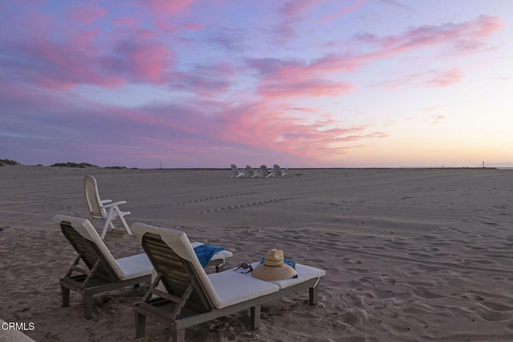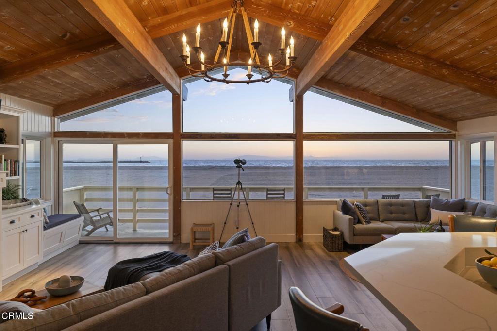 OCEANFRONT LIVING, home on Hollywood Beach -- Just North of Malibu and South of Santa BarbaraWelcome to your beachfront escape, where panoramic ocean views greet you from nearly every room. Perfectly positioned directly on the sand, this three-story coastal residence blends modern comfort with timeless East Coast-inspired design, offering a rare combination of style, space, and effortless beach access. Offered completely furnished, this is a true turnkey opportunity -- simply arrive and begin enjoying the beach lifestyle.The first level is designed for relaxed seaside living and entertaining, featuring a private guest suite, full bath, and a spacious family room anchored by a cozy fireplace. A kitchenette with a mini refrigerator and sink makes hosting easy, while custom built-in sleeping bunks create the ultimate kids' sleepover retreat. Sliding doors open directly to the beachfront patio -- ideal for morning coffee, sunset gatherings, and evenings filled with family fun.The main living level is bright and open, showcasing soaring vaulted wood-beam ceilings, a dramatic wall of windows, and expansive living and dining spaces that frame endless ocean views. A second fireplace adds warmth and architectural character to the ocean-view living room. The spacious kitchen features double ovens, a built-in microwave, generous prep space, and direct deck access for seamless indoor-outdoor entertaining. A flexible bonus room and powder bath add convenience, while a well-appointed second-level laundry room enhances everyday functionality.Upstairs, the primary suite and guest bedroom both showcase unobstructed water views and en-suite baths. The primary retreat features a walk-in closet, custom built-ins, and a skylight, creating a private sanctuary that captures the peaceful rhythm of oceanfront living.Complete with a two-car garage equipped with a Tesla charging station, and direct beach access just steps from your door, this exceptional residence offers the ultimate Hollywood Beach lifestyle -- wake to the sound of waves, spend your days on the sand, and end each evening with breathtaking sunsets right outside your door.
