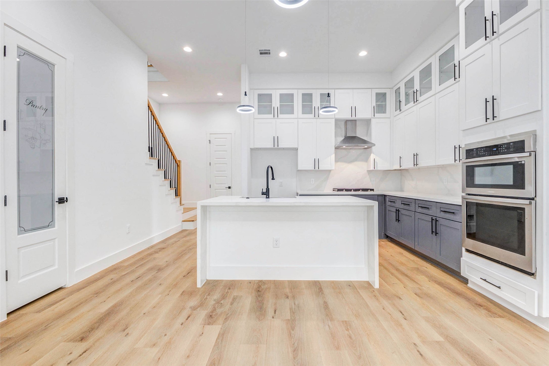 This contemporary modern two-story home, built in 2023, features a clean, streamlined design with thoughtful finishes throughout. The kitchen serves as a central focal point, offering quartz countertops, modern cabinetry, and an open layout that connects easily to the dining and living areas. The home includes three bedrooms and three and a half bathrooms, with well-finished bath spaces that complement the overall modern aesthetic. A southwest-facing orientation allows for strong natural light across the main living areas. Interior details include luxury vinyl flooring, contributing to a cohesive, updated look. The layout supports both everyday living and entertaining, with upper-level spaces providing separation and privacy. The property includes a low-maintenance backyard designed for simple outdoor enjoyment and is located near key destinations and major city attractions.