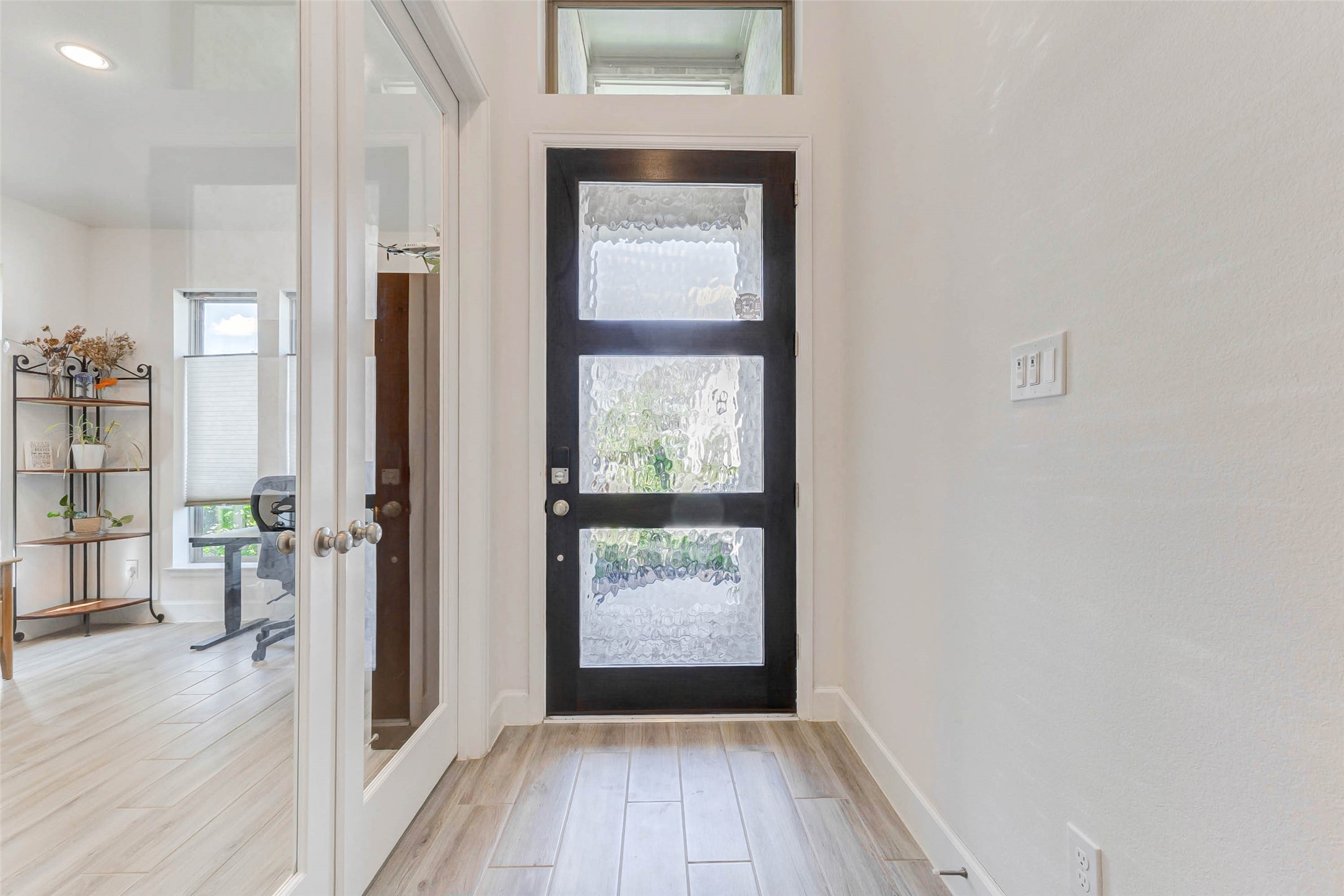 Stunning one-story brick home offering 4 bedrooms, 3.5 baths, and a 3-car garage with upgrades completed—no builder delays or added costs. Entry welcomes you with soaring ceilings and wood-look tile flooring throughout the main living areas. A private home office with glass French doors sits near the front. The heart of the home features a gorgeous kitchen with quartz countertops, abundant cabinetry, walk-in pantry, gas cooktop, breakfast bar, and under-cabinet lighting. Open-concept layout flows into the dining and living areas, highlighted by expansive windows with custom blinds and natural light. One secondary bedroom offers a private ensuite bath, while two additional bedrooms share a full bath. The primary suite features four large windows and a spa-like ensuite with dual vanities, soaking tub, and two walk-in closets. Enjoy a covered patio with ceiling fan and fully fenced backyard with no back neighbors. Security system included. Located in desirable Cross Creek West community.