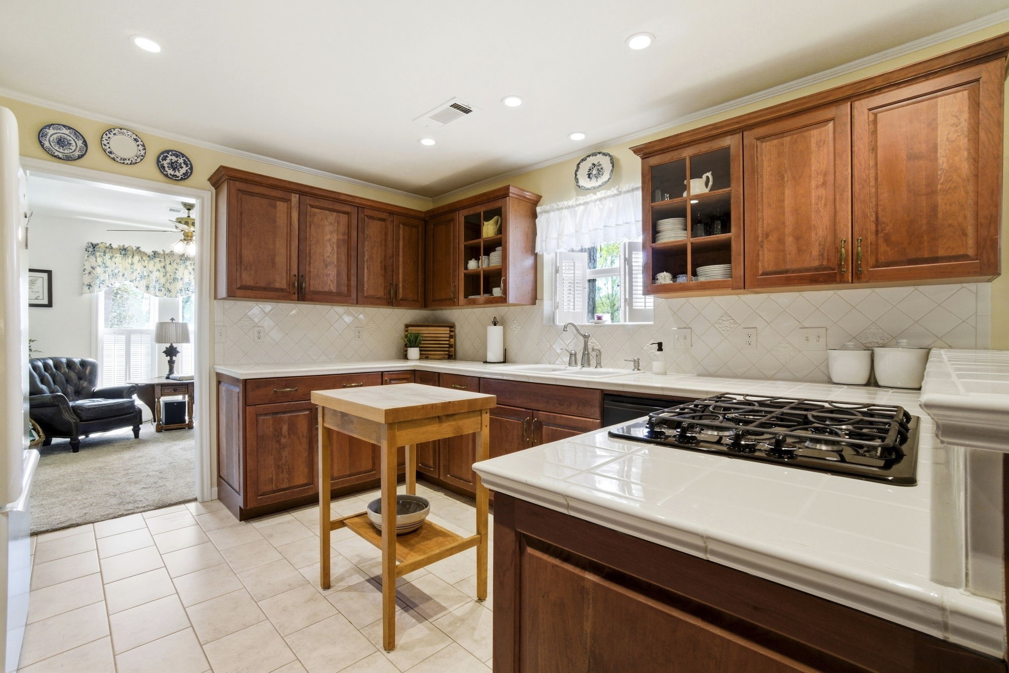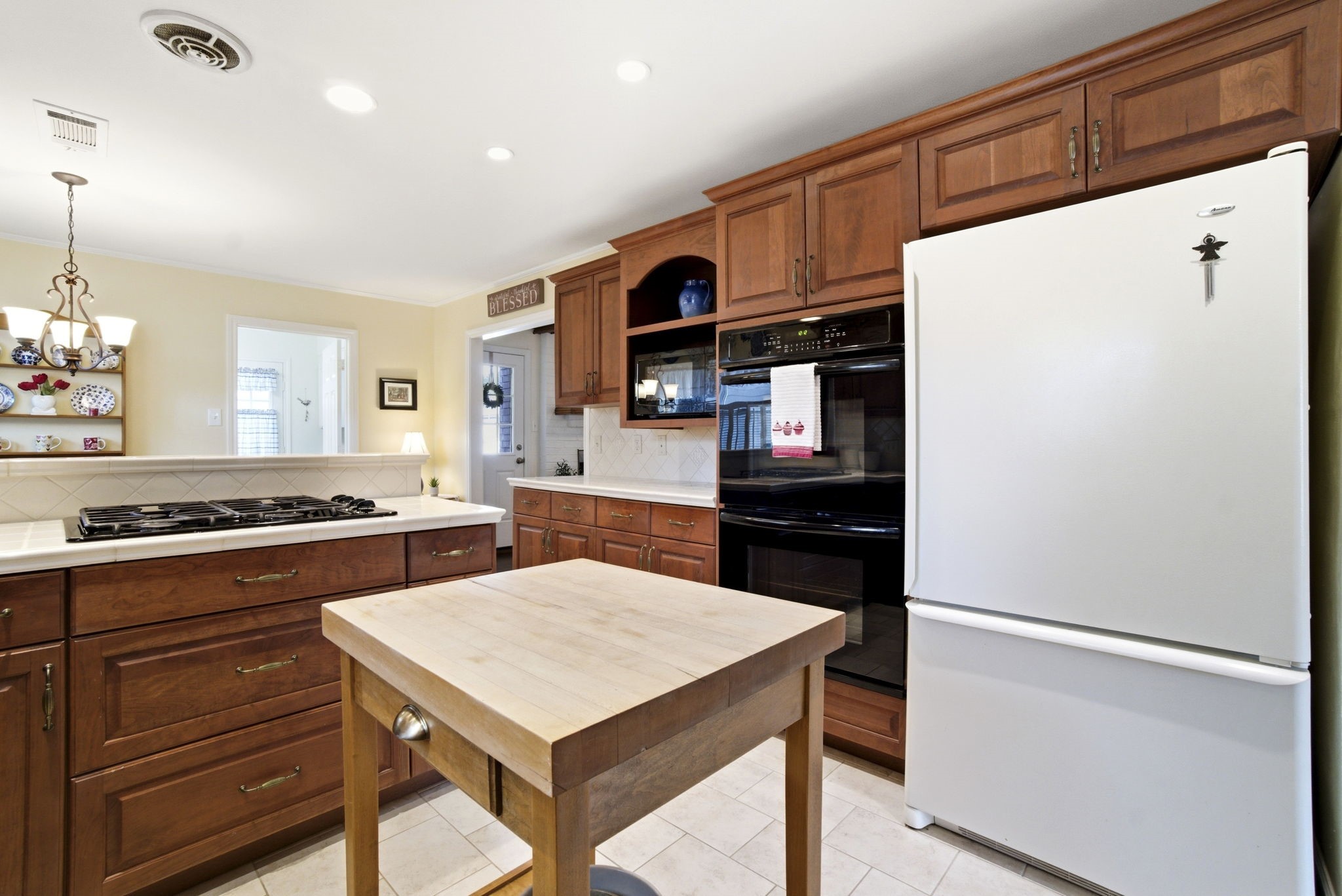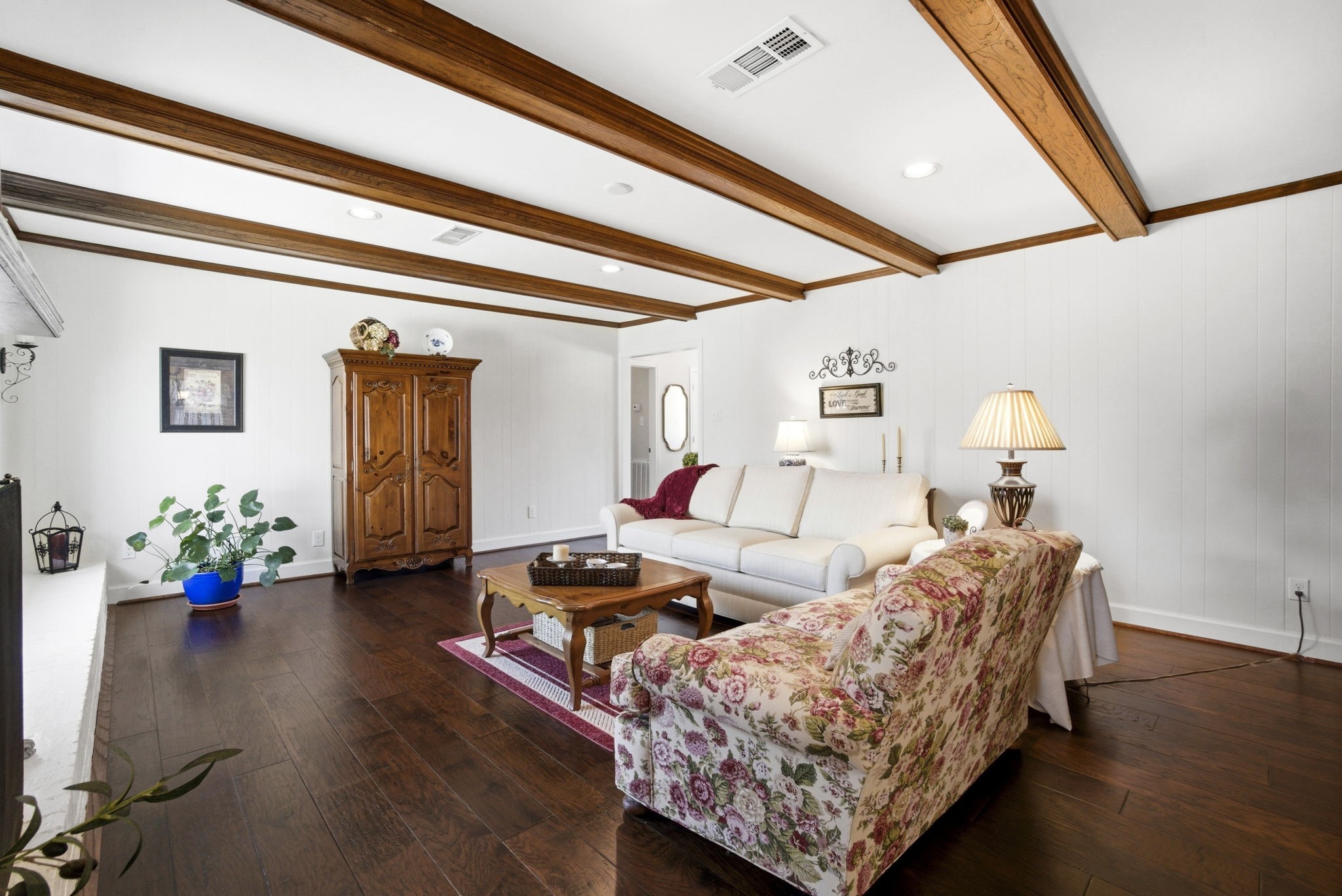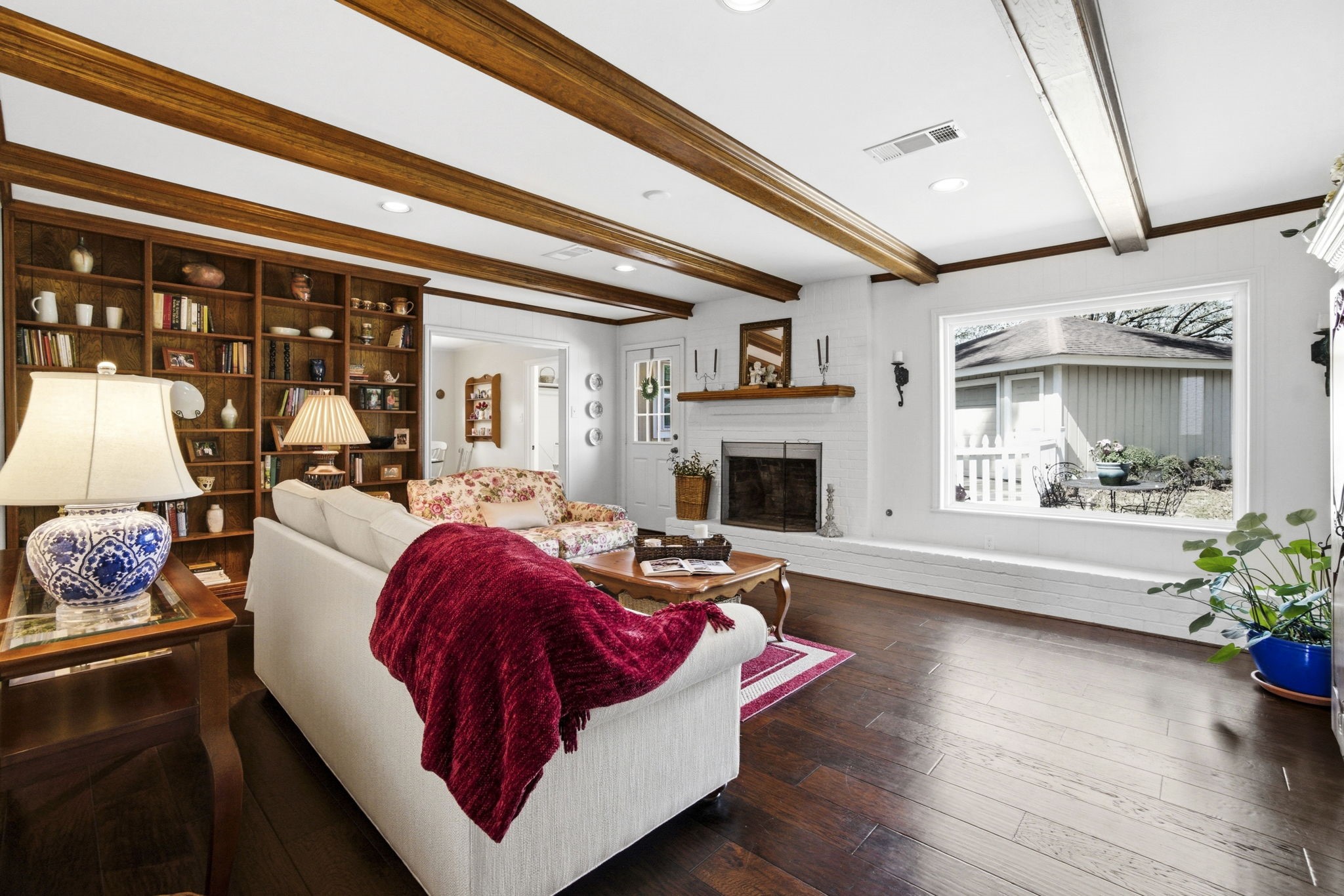 Beautifully remodeled 4-bedroom, 2-bath home in Enchanted Oaks, featuring energy-efficient windows, wood/tile/carpet flooring, a detached garage, and an RV-accessible side yard. The spacious living room offers a brick fireplace, stained beams, and built-in bookshelves. A bright dining room with a wall of windows connects to a flexible space ideal for a media room or office. The kitchen boasts custom cherry cabinets, recessed lighting, tile backsplash, breakfast area, and a large laundry room with extensive storage. The primary suite includes French doors to the patio, dual walk-in closets, and a quartz vanity dressing area. A second oversized bedroom has direct full-bath access, perfect for guests or multigenerational living. Two additional bedrooms feature ceiling fans. Zoned to Klein ISD and within walking distance to 60-acre Forest Oaks Park with trails, lakes, and playgrounds. Easy access to I-45, hospitals, shopping, The Woodlands, and Houston.