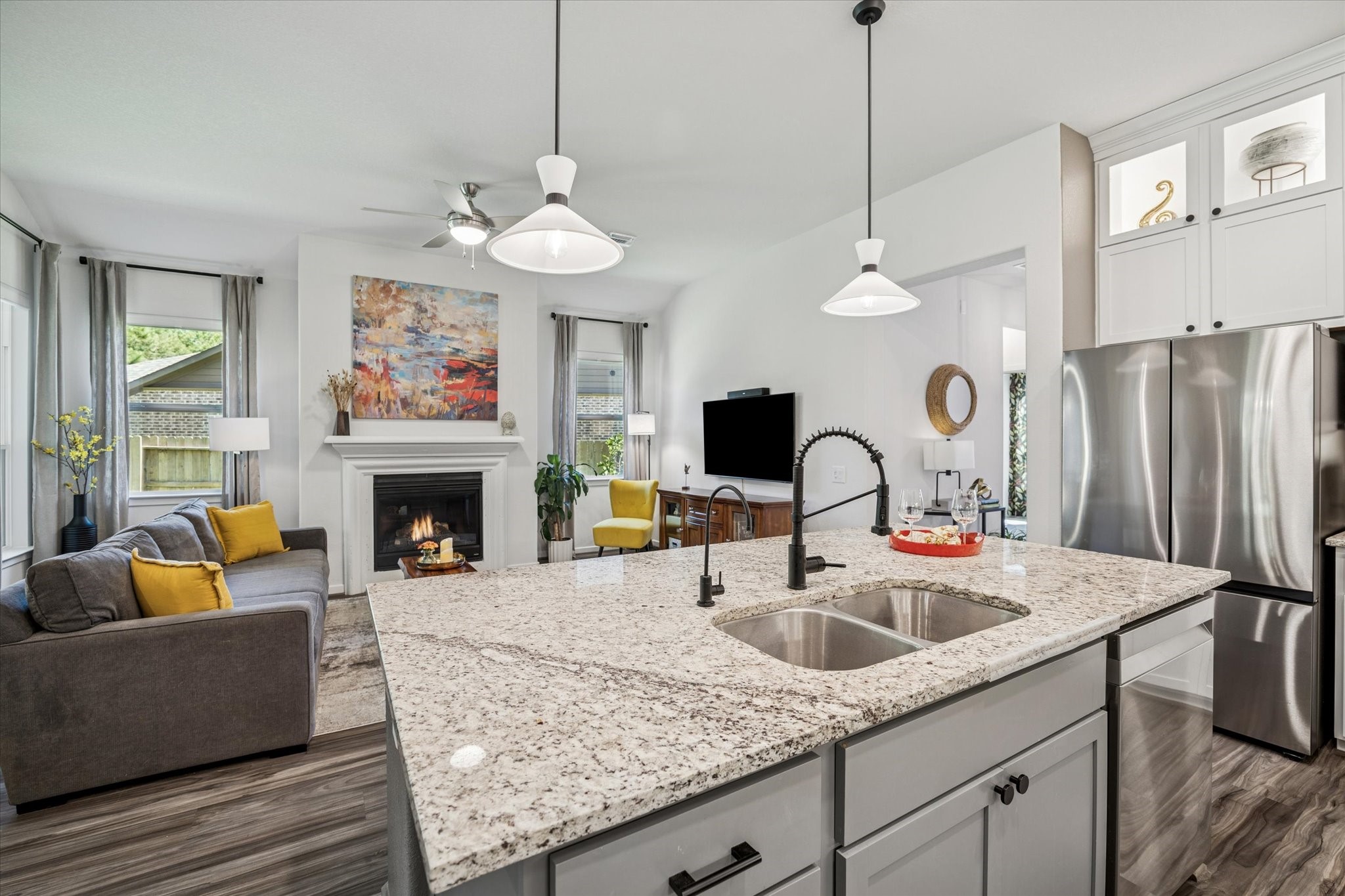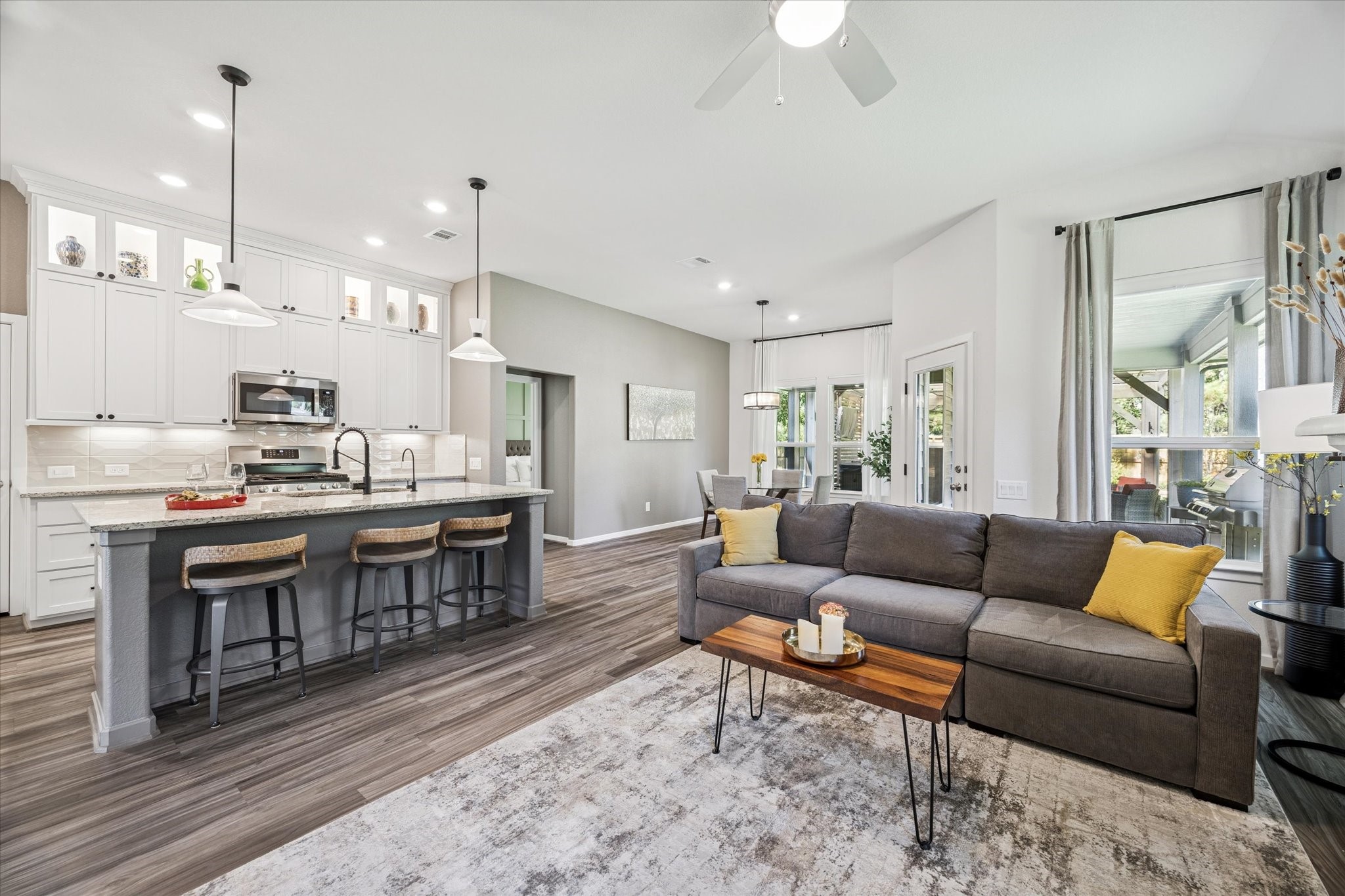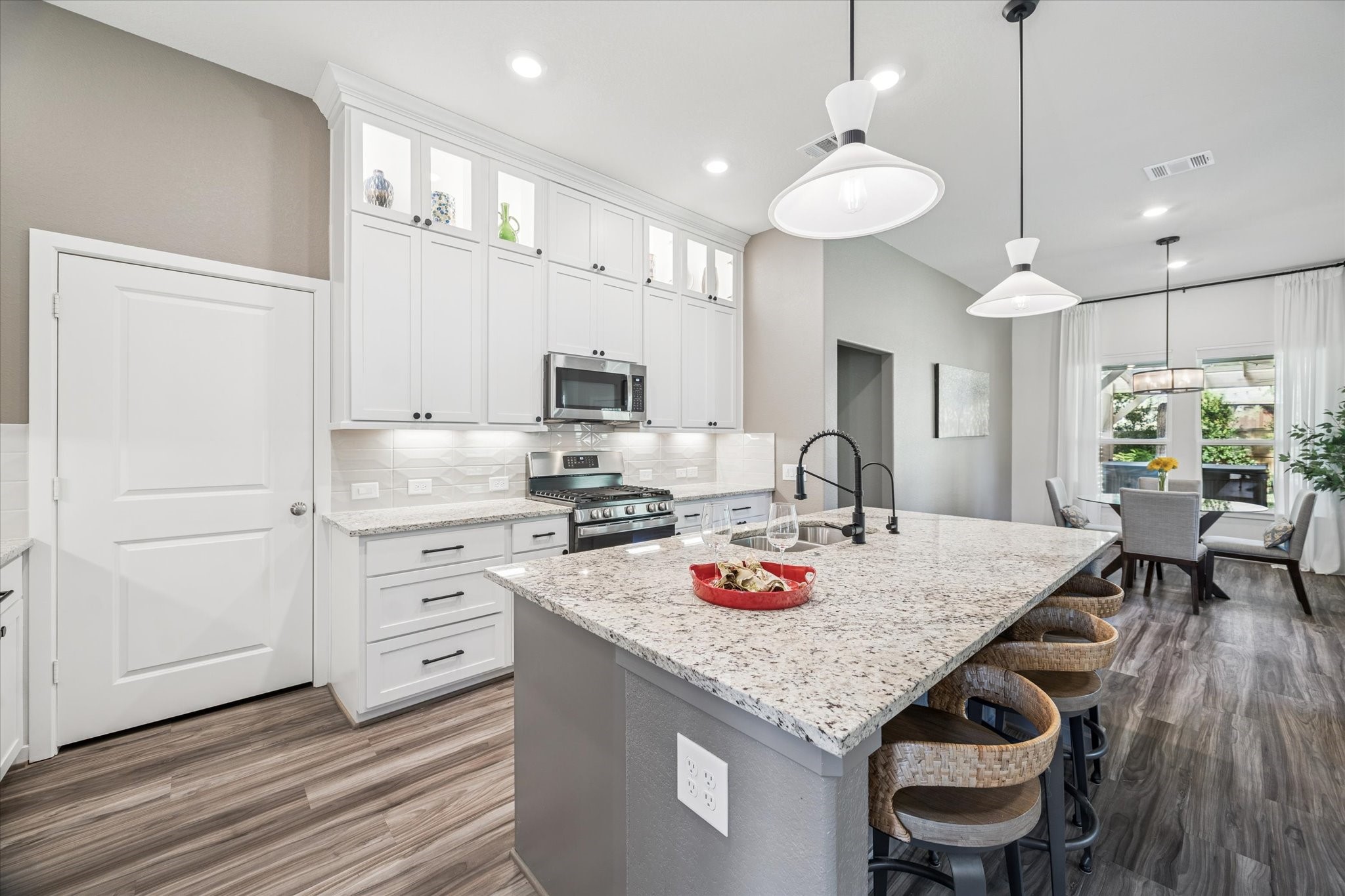 Don't miss the opportunity to see this beautifully upgraded home in the 55+ Bonterra section of Woodforest. Situated on a rare near ¼-acre lot, this home features a private backyard retreat with lush landscaping, extended covered patio, spa, and self-mower. Interior upgrades include high ceilings, expanded kitchen cabinetry with lighting, gas fireplace with blower, and an extended garage. Front yard maintained by HOA. Floor plan with upgraded space included in photos. The list of the upgrades are attached in the documents. Enjoy full Woodforest amenities including extensive walking trails plus exclusive Bonterra perks—private pool, clubhouse, fitness center, and tennis/pickleball courts.