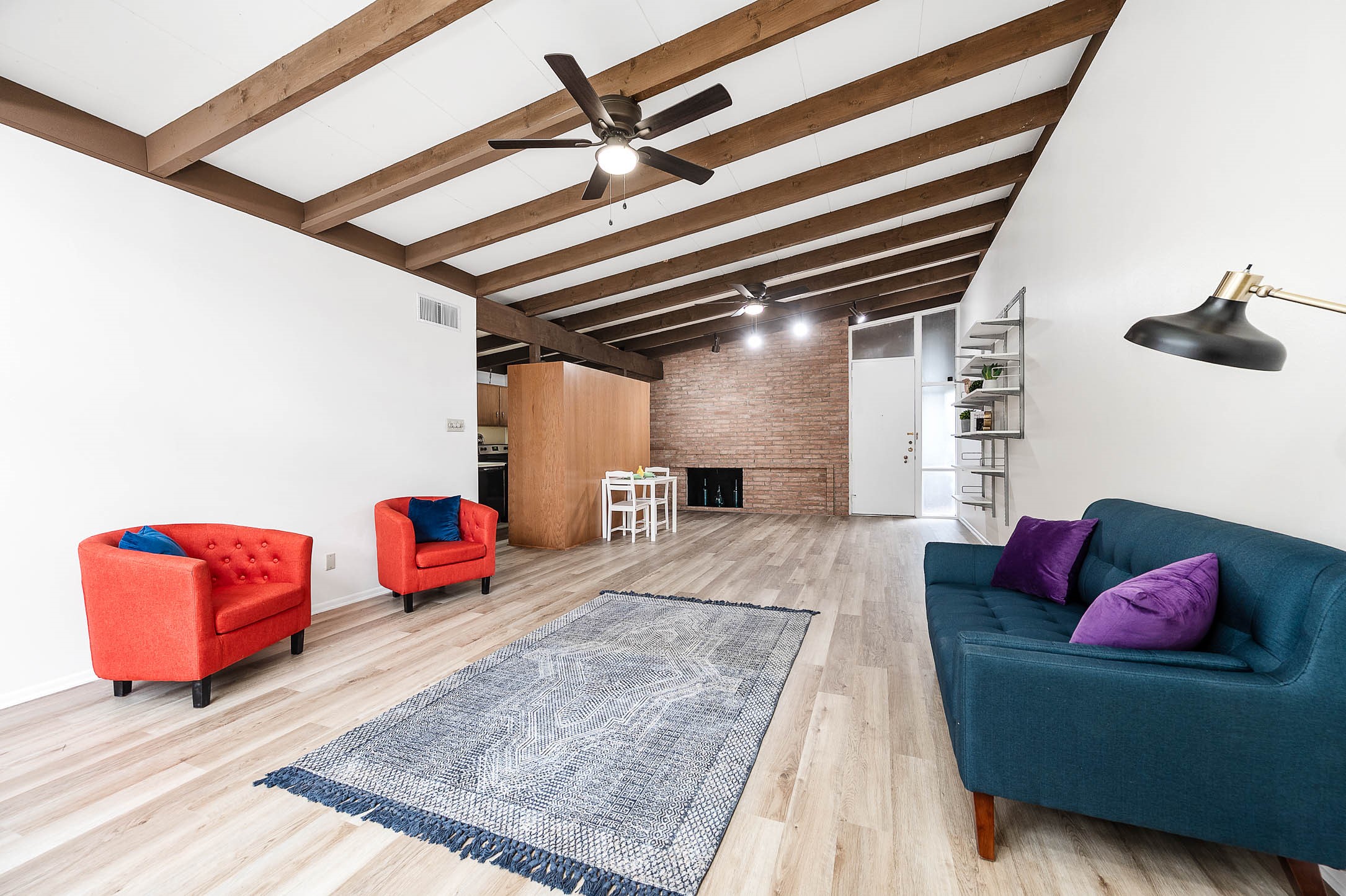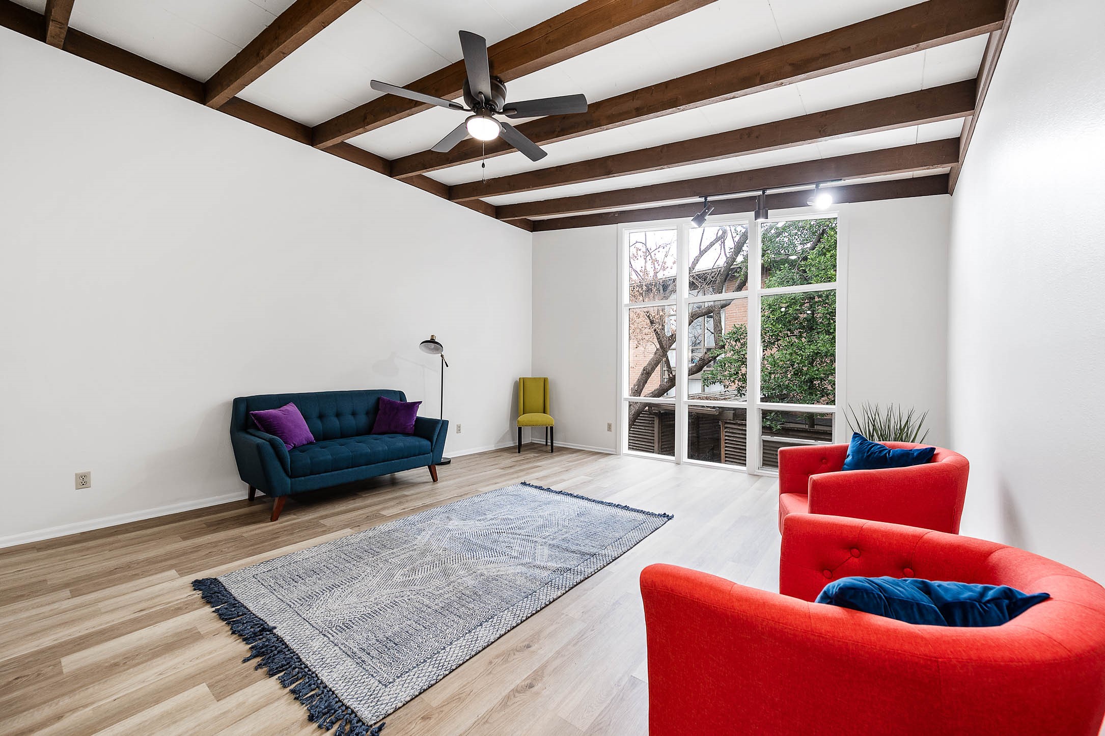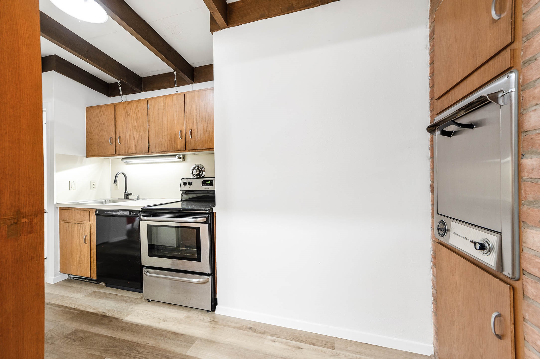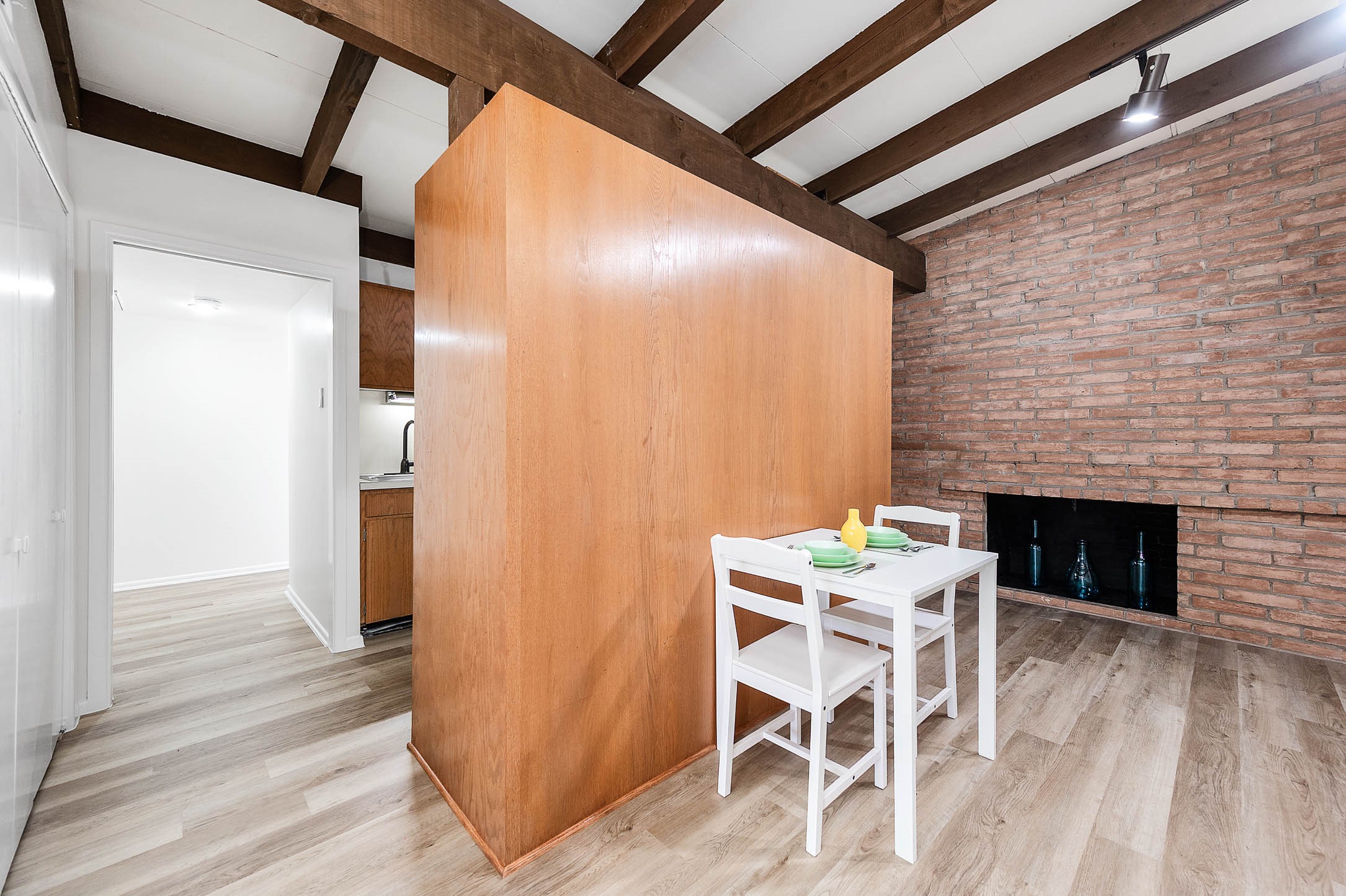 Contemporary 1 bedroom, 1 bath condominium located in the Hillside Townhomes community. This 928 sq/ft unit features an open living and dining layout with high ceilings, exposed wood beams, ceiling fan, and large windows providing abundant natural light. Living area includes a fireplace and built-in shelving. Kitchen offers electric range, single oven, dishwasher, disposal, ample cabinetry, and functional counter space. Primary bedroom includes generous proportions and access to full bath with tub/shower combo. Central electric heating and cooling. Community amenities include a pool and landscaped grounds. Zoned to Memorial Elementary, Hogg Middle School, and Lamar High School. Convenient access to I-10, Memorial Drive, and nearby dining and shopping. Schedule your private showing today!