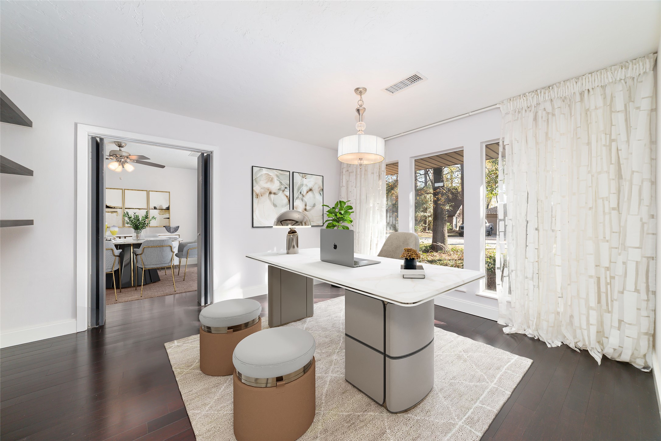 Rare single story located in the BEST village. Grogan's Mill is the HEART of The Woodlands. This spacious and thoughtfully designed home is ideal for someone who loves the convenience of living in front of the Woodlands. Featuring 3 bedrooms 2 full bathrooms plus space for an office or flex space. The well-laid-out floor plan offers both comfort and functionality. Never be concerned with hurricane season with this full house generator. Situated on a huge corner lot that offers endless possibilities. The private backyard provides the perfect setting for relaxing & gardening. Walking distance to Lamar Elementary that is host to the iconic dual-language program. Close to Market Street, Cynthia Woods Pavilion and the mall. By far the best restaurants and shopping around. Plus the new state of the art Gorgan's Mill Village Center. LOW taxes and no HOA!