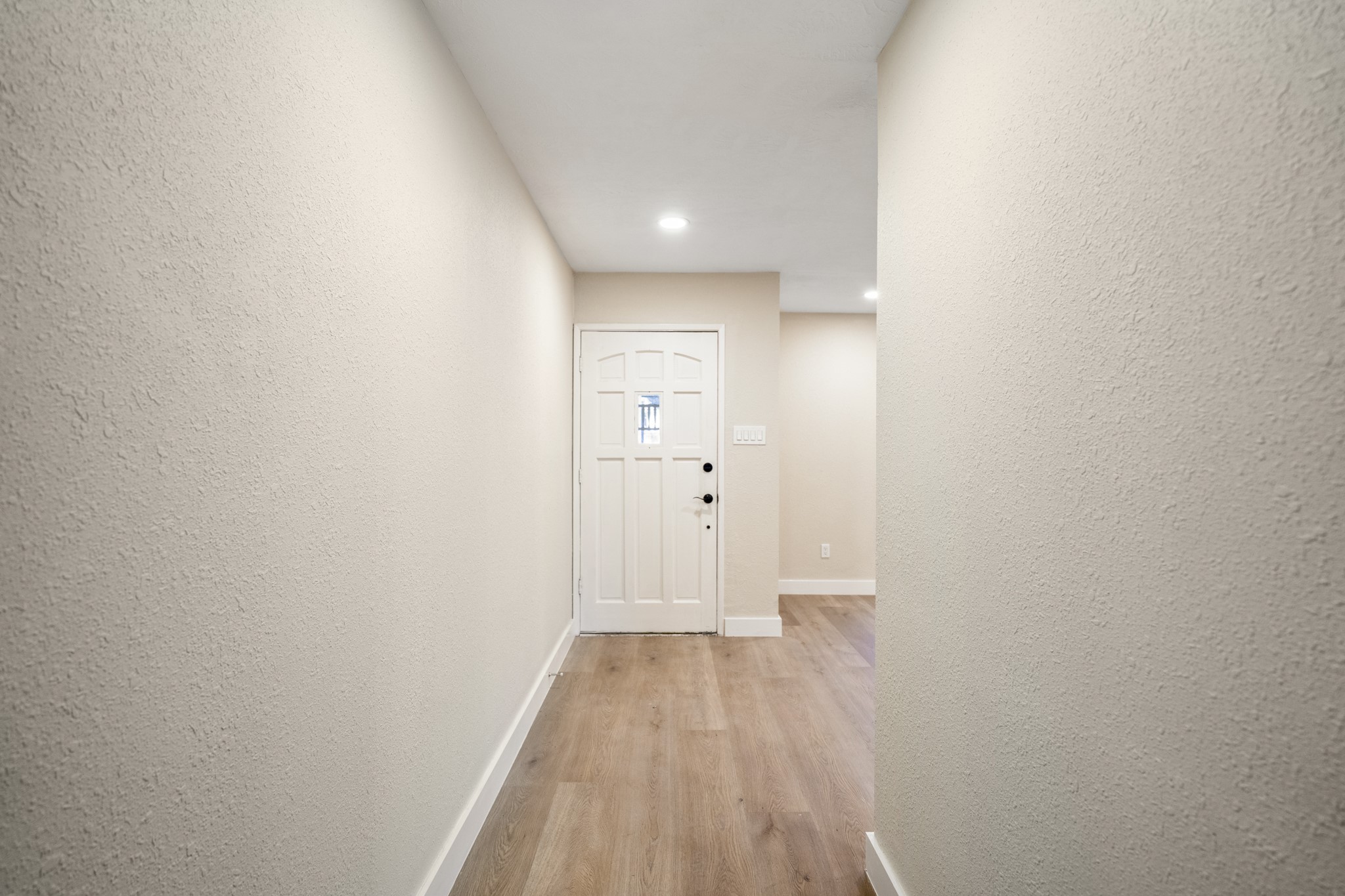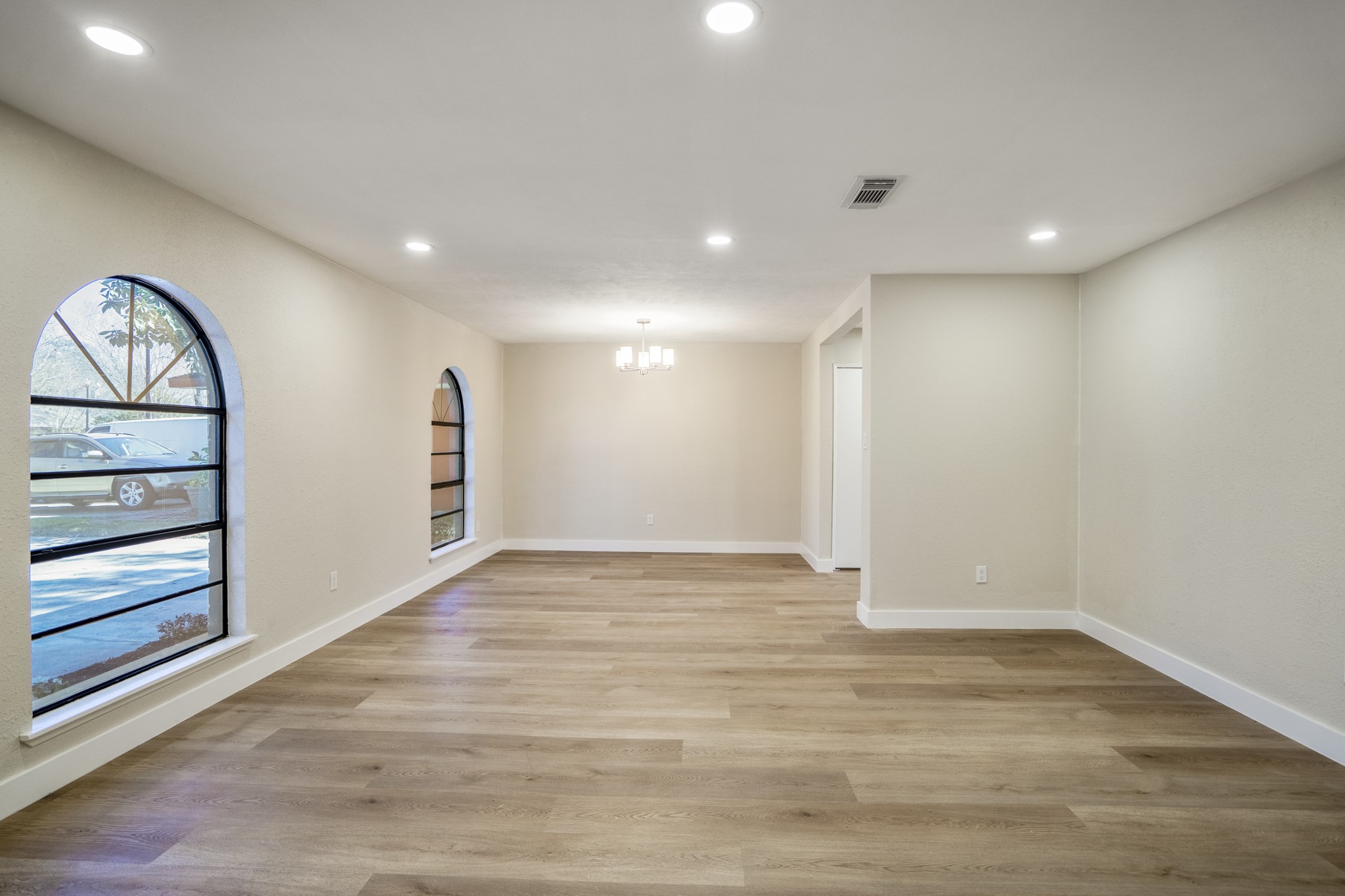 Completely remodeled & move-in ready, this stunning home blends modern updates with timeless character. Fresh paint throughout, recessed lighting, and raised ceilings create a bright, airy feel the moment you walk in. The open-concept floor plan flows seamlessly into a brand-new kitchen featuring white cabinetry, new countertops, and all new appliances—perfect for everyday living & entertaining. Sliding glass doors with expansive windows overlook the backyard, filling the space with natural light.Every bathroom has been fully remodeled with stylish finishes, and the charming brick fireplace adds warmth & personality to the living area. Exterior has been freshly painted, complemented by fresh sod and a long driveway shaded by a beautiful mature oak tree. This home truly feels brand new while maintaining tons of character.