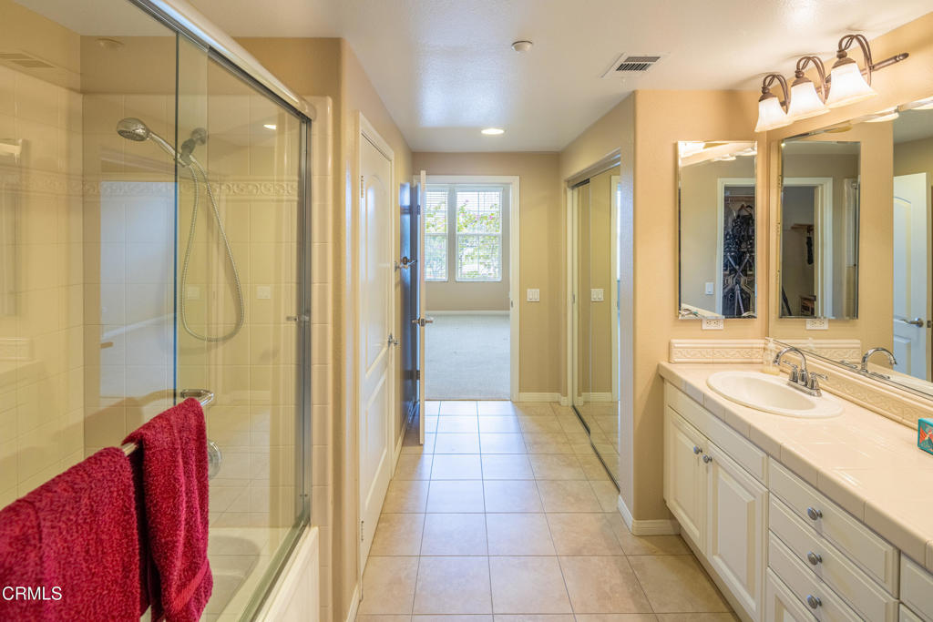Lovely second-story corner unit in Bella Vista at Promontory Pointe, a 55+ community. This home offers 3 bedrooms, 2 bathrooms, and 1,359 square feet of living area, providing ample space to enjoy. You will enjoy the views of the park and hillsides. The spacious living room features a fireplace and opens to a large balcony that also has expansive views. The kitchen includes abundant cabinet space, granite countertops, and stainless steel appliances. The primary suite also enjoys pleasant views, multiple closets, and a spacious bathroom with dual sinks and a tub/shower combination. The hall bathroom features a large walk-in curbless shower. Additional amenities include indoor laundry, air conditioning, a water softening system, and a two-car tandem garage. Residents enjoy resort-style amenities including a clubhouse, pool, spa, and a full calendar of community events. The community is adjacent to Montalvo Hill Park and just steps from shopping, dining, fitness, and everyday conveniences. Located less than 10 minutes from the beach.