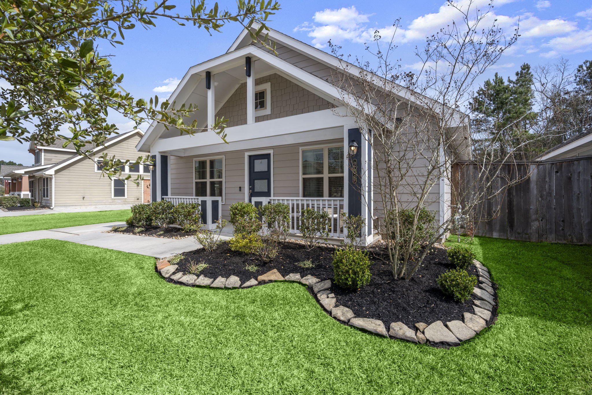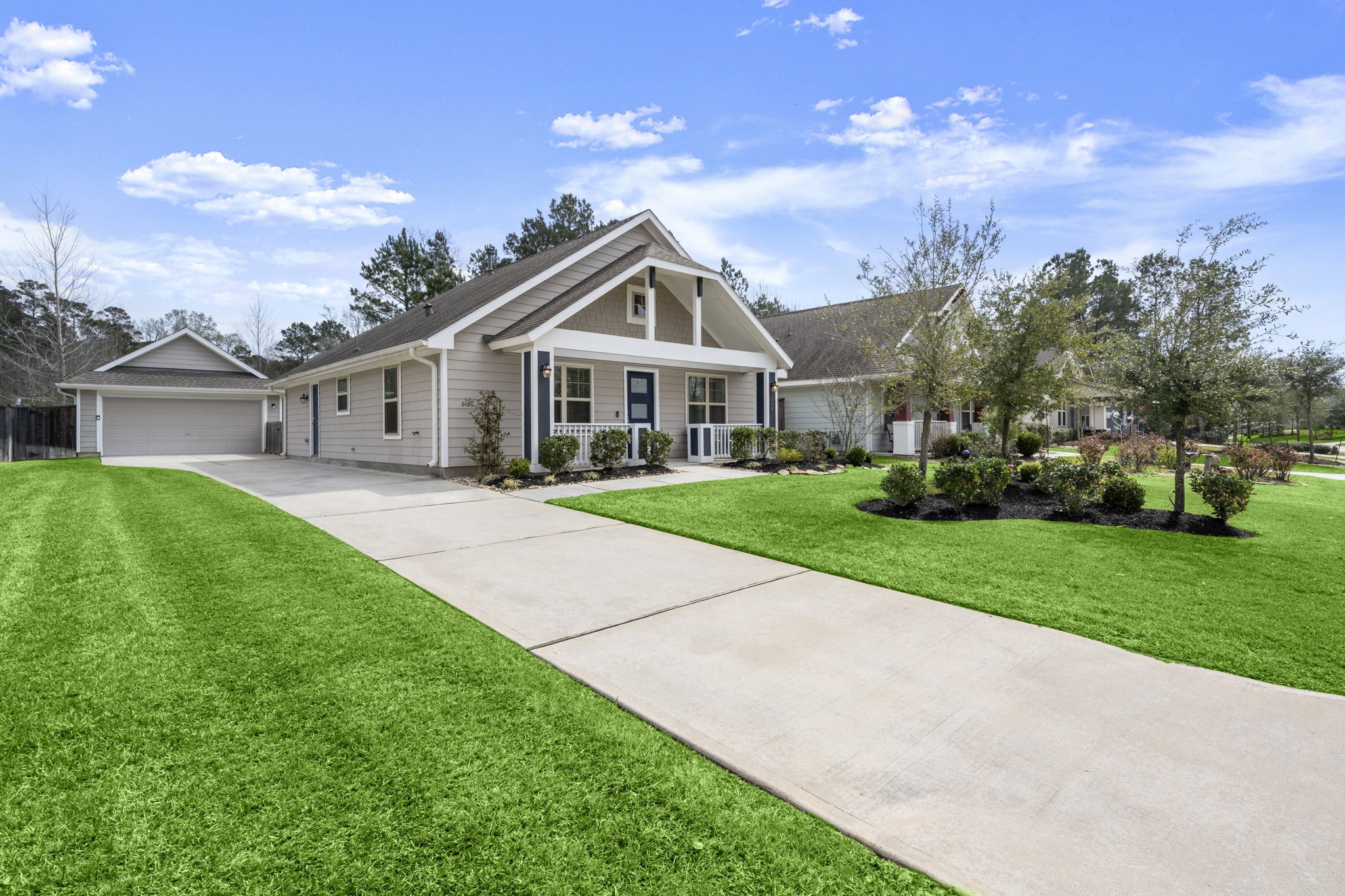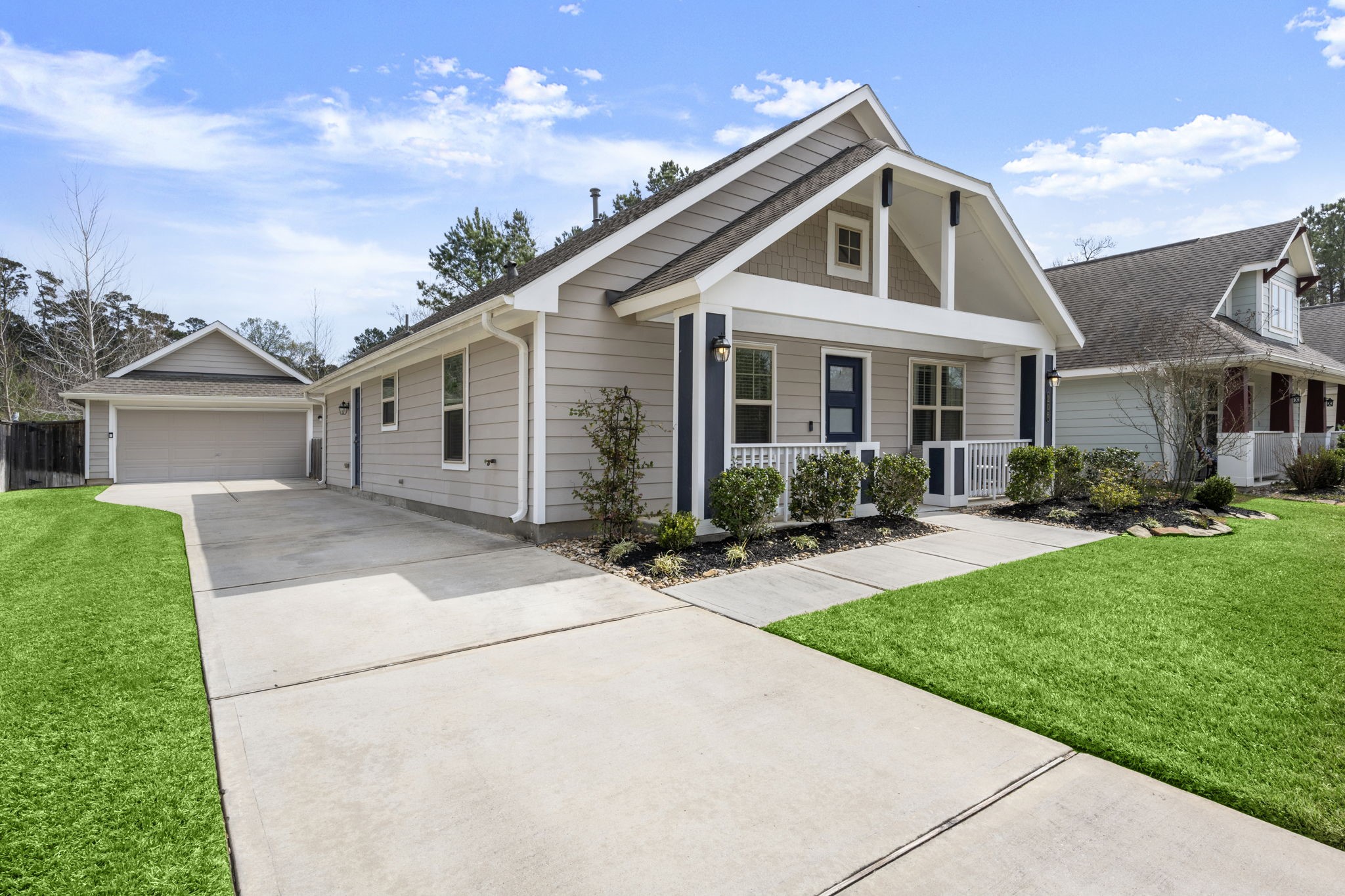 Experience the perfect blend of character and modern convenience! This beautifully maintained Newport II floor plan by Lennar sits on a unique, sought-after street and has been meticulously maintained. A welcoming front porch leads into an inviting entry foyer and a bright, open-concept Great Room. The kitchen is the heart of the home, featuring premium granite countertops, sleek stainless steel appliances, and a seamless flow into the family room—perfect for entertaining.The primary suite offers a private sanctuary with an en suite bath. Two additional versatile bedrooms and a second full bath provide the perfect space for guests or a home office.Enjoy a large, fully fenced-in private backyard with no rear neighbors and the convenience of a detached 2-car garage. Live the neighborhood resort life with incredible amenities, including a sparkling pool, a golf course, parks, and walking trails.