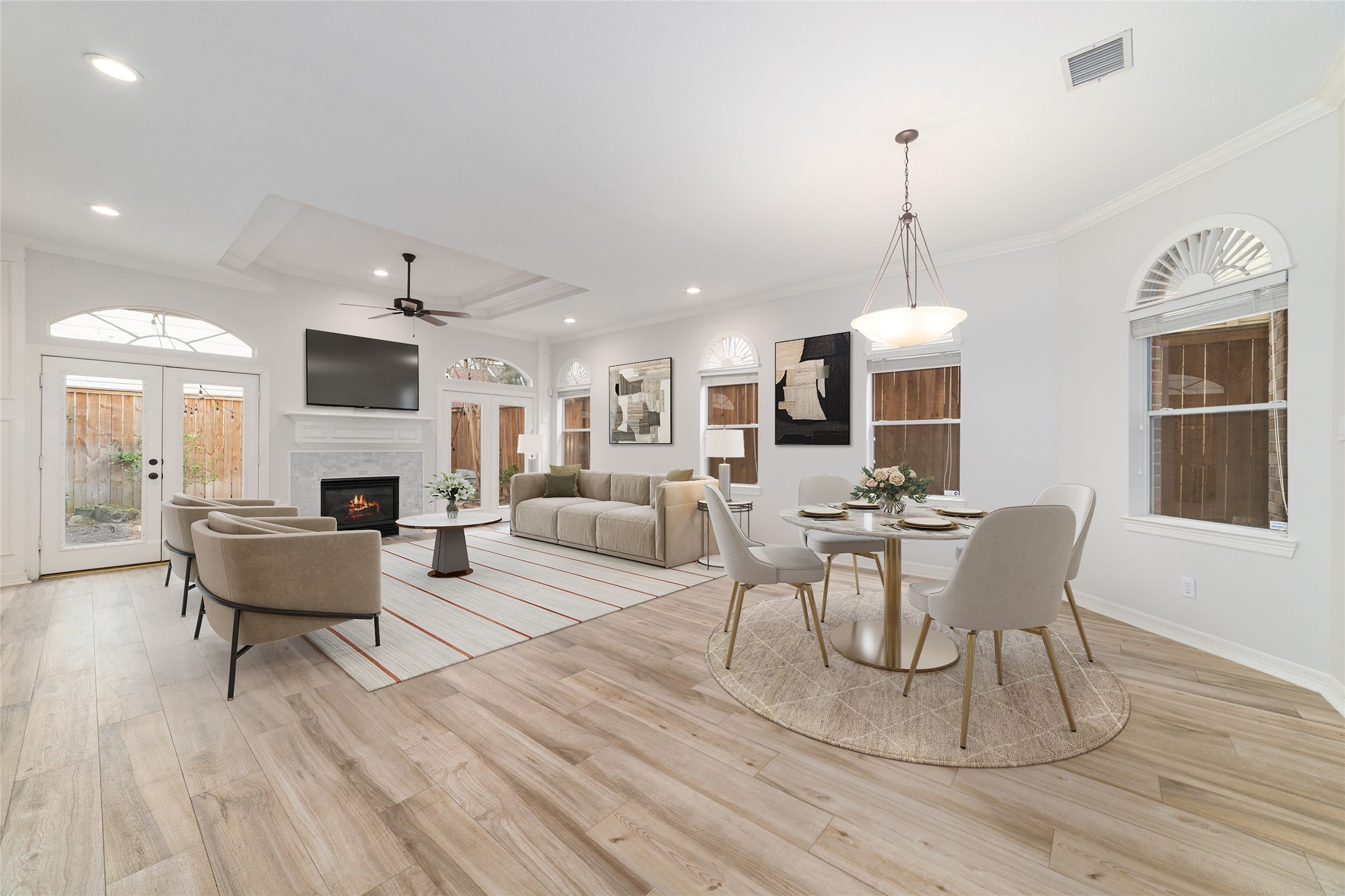 **Fully Updated downstairs in 2021** this home is positioned in the heart of Rice Military, this beautiful townhome blends timeless charm with modern comfort, all behind a private gated entry. Open-concept living space where a cozy fireplace creates the perfect focal point. French doors lead to your own private, fenced backyard for effortless entertaining. The kitchen is both stylish and functional, featuring stainless steel appliances, a charming farmhouse sink, generous counter space, and abundant cabinetry for all your storage needs. Upstairs, retreat to the spacious primary suite, complete with a spa-inspired ensuite bath boasting dual sinks, a glass-enclosed shower, and a luxurious jetted tub designed for relaxation. Two additional secondary bedrooms and share a beautifully maintained full bath. With no carpet throughout, this home offers both elevated style and easy maintenance. A rare opportunity to enjoy refined living in one of Houston’s most sought-after neighborhoods!