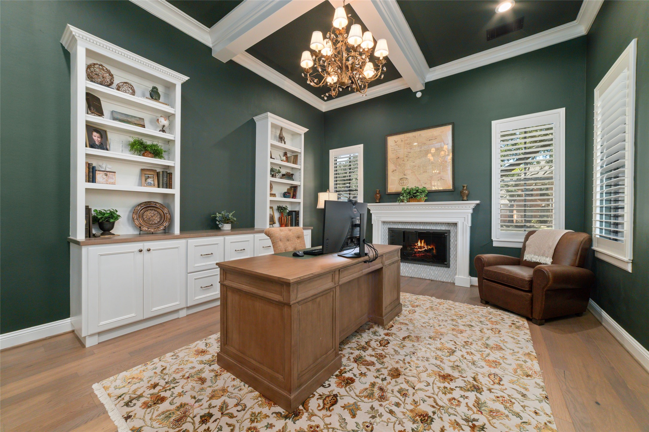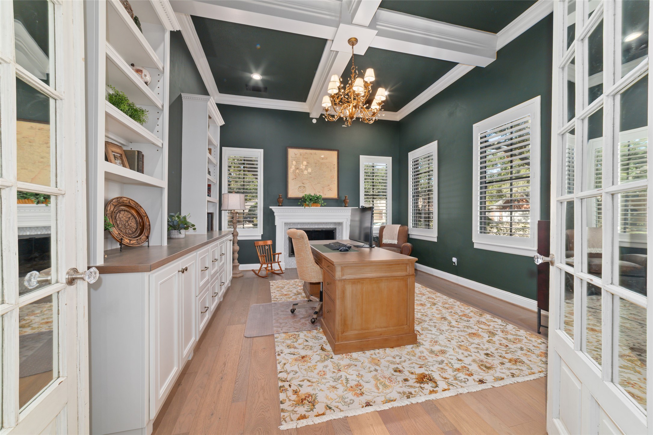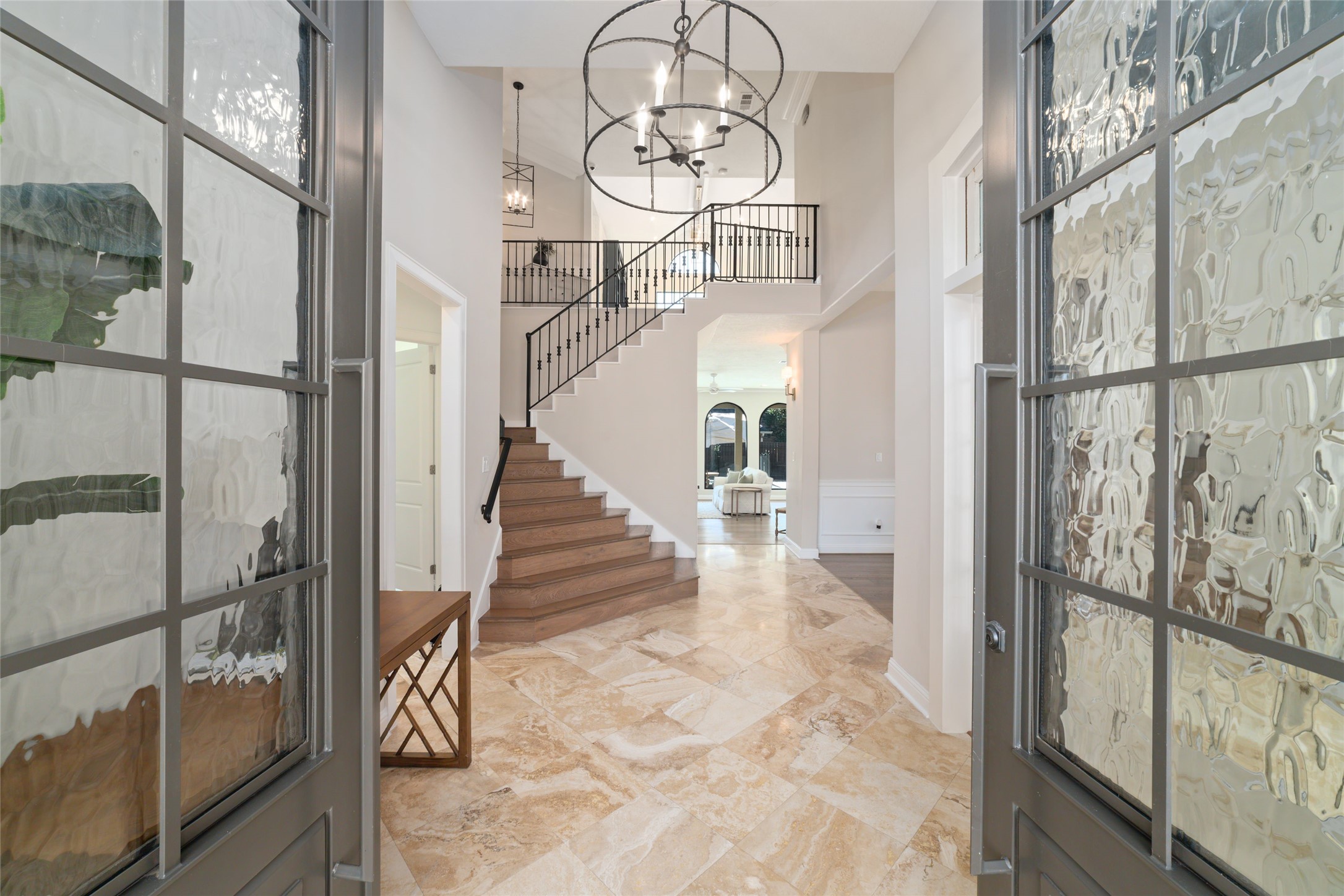 Stunning home in the gated Cinco Ranch South Lake Village! This home is filled w charm & elegance from the moment you step up to the impressive double iron doors! Soaring ceilings in the grand entrance w gorgeous travertine tile flooring. Exquisite formal private study w charming molding, built-in bookcase, & a gas log fireplace! Huge formal dining room w elegant wood flooring & luxurious molding. Energy-saving, double-pane tinted windows are featured throughout the entire home. A chef's dream kitchen w tons of cabinets, quartz counters, a wine refrigerator, a double oven, a built-in refrigerator, & a huge breakfast area great for entertaining. Large primary bedroom that looks out to your sparkling pool. Spa-style bathroom w walk-in shower, soaker tub with floor-to-ceiling stunning tile backsplash, organized closet with pull-down clothes racks & built-in shelves & drawers. Large game room w accent brick walls & vaulted ceilings 3 large secondary bedrooms & don't miss the secret rooms!