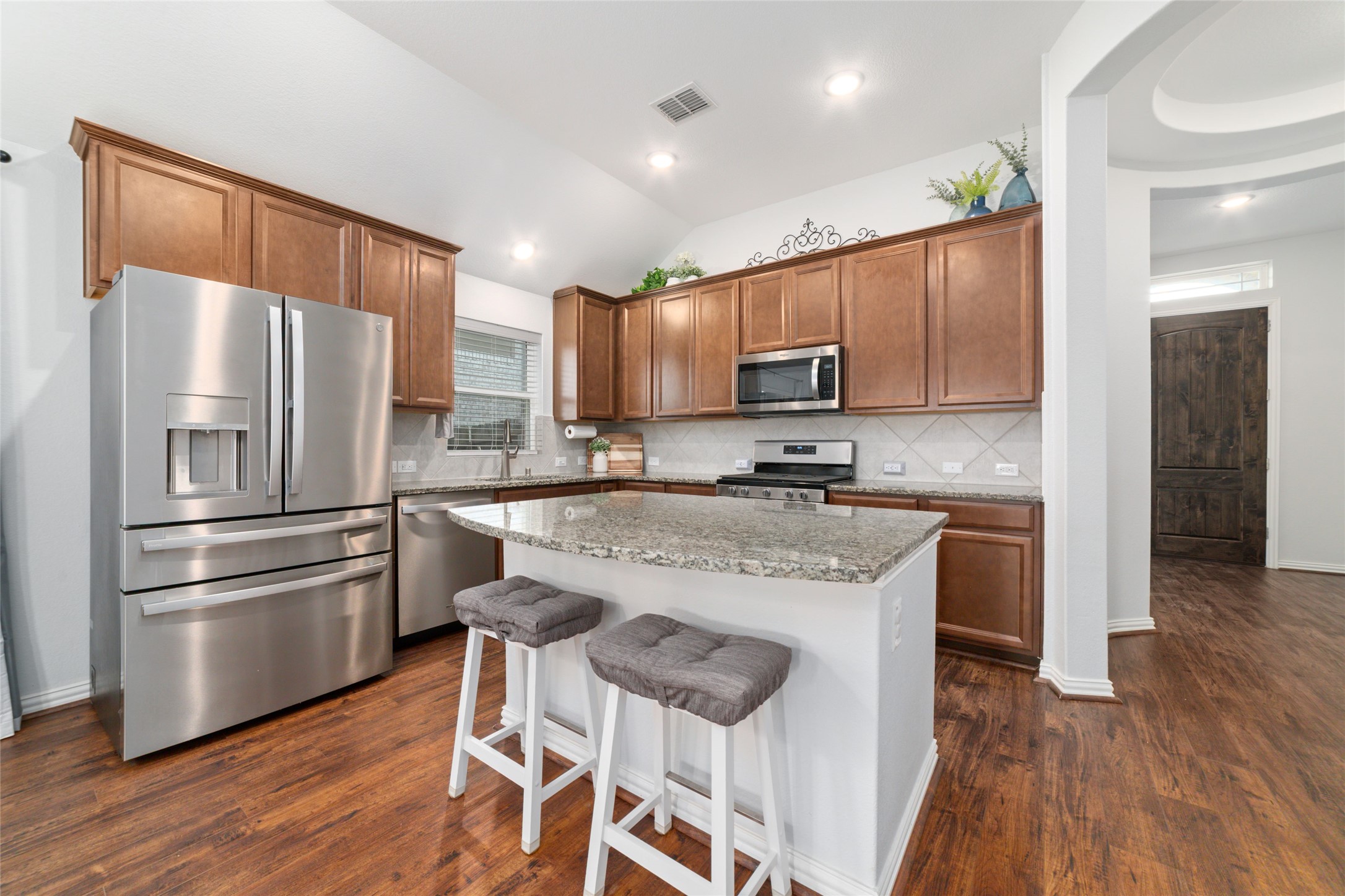 Gorgeous Gehan home in the gated section of Tamarron Community, located on the lake, with a stunning view! Amazing brick and stone elevation! As you enter this beautiful home, you are greeted with rich wood look luxury vinyl flooring and a grand rotunda entrance. Large formal dining room with tons of windows for natural light, wonderful open floor plan, great for entertaining. Open kitchen with granite counters, an undermount sink, lots of cabinet and counter space. Large living area with a beautiful view of the lake! Private study also with a fabulous view of the lake. Primary bedroom with bay windows for extra space. Can you imagine waking up to a gorgeous view of the lake every morning? Primary bathroom with double sinks, garden tub, and separate shower, and walk in closet, two large secondary bedrooms. Backyard with nice sized cover patio backing up to the lake and walking trail. This home will not last! Location, location, location!