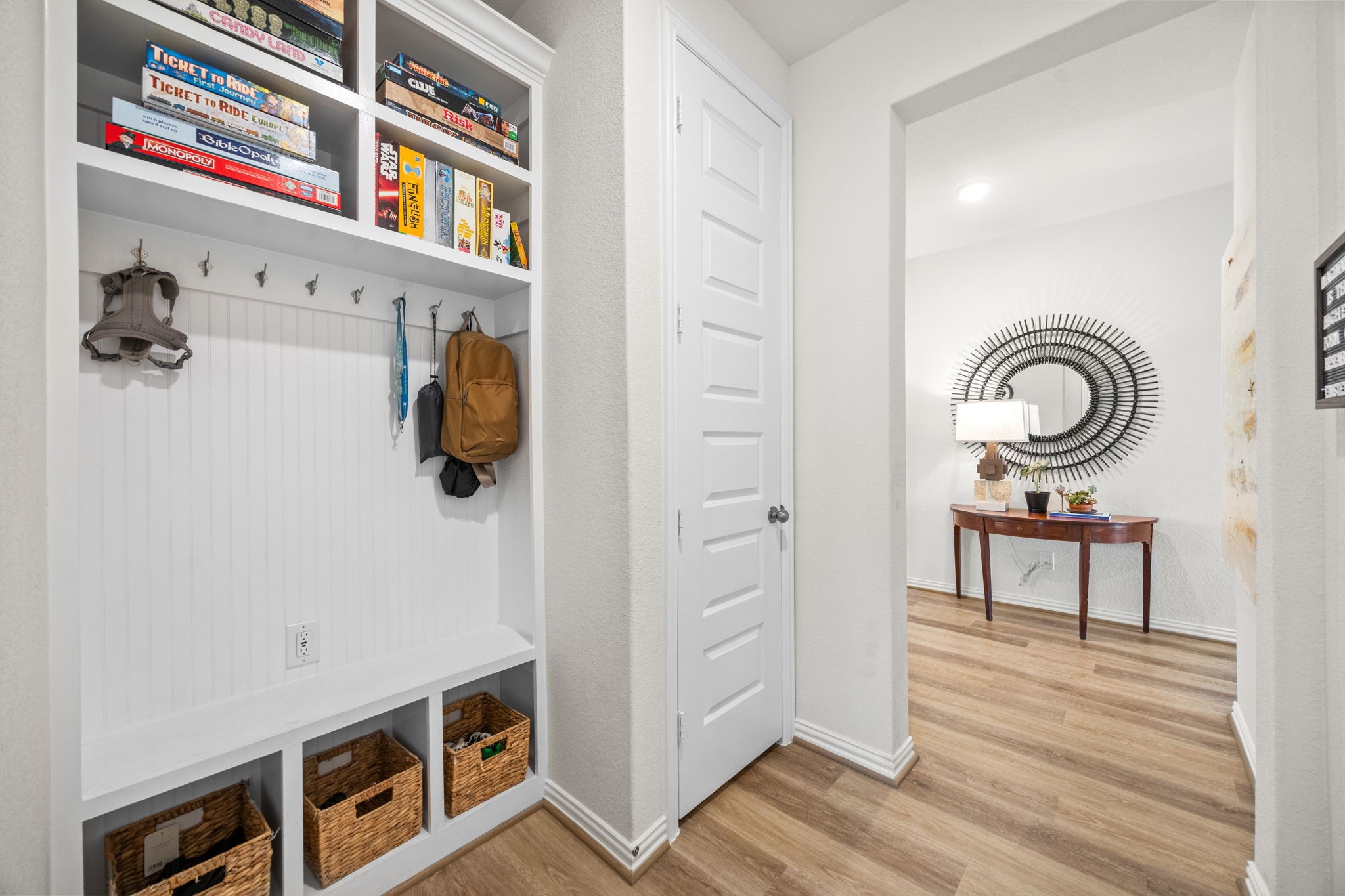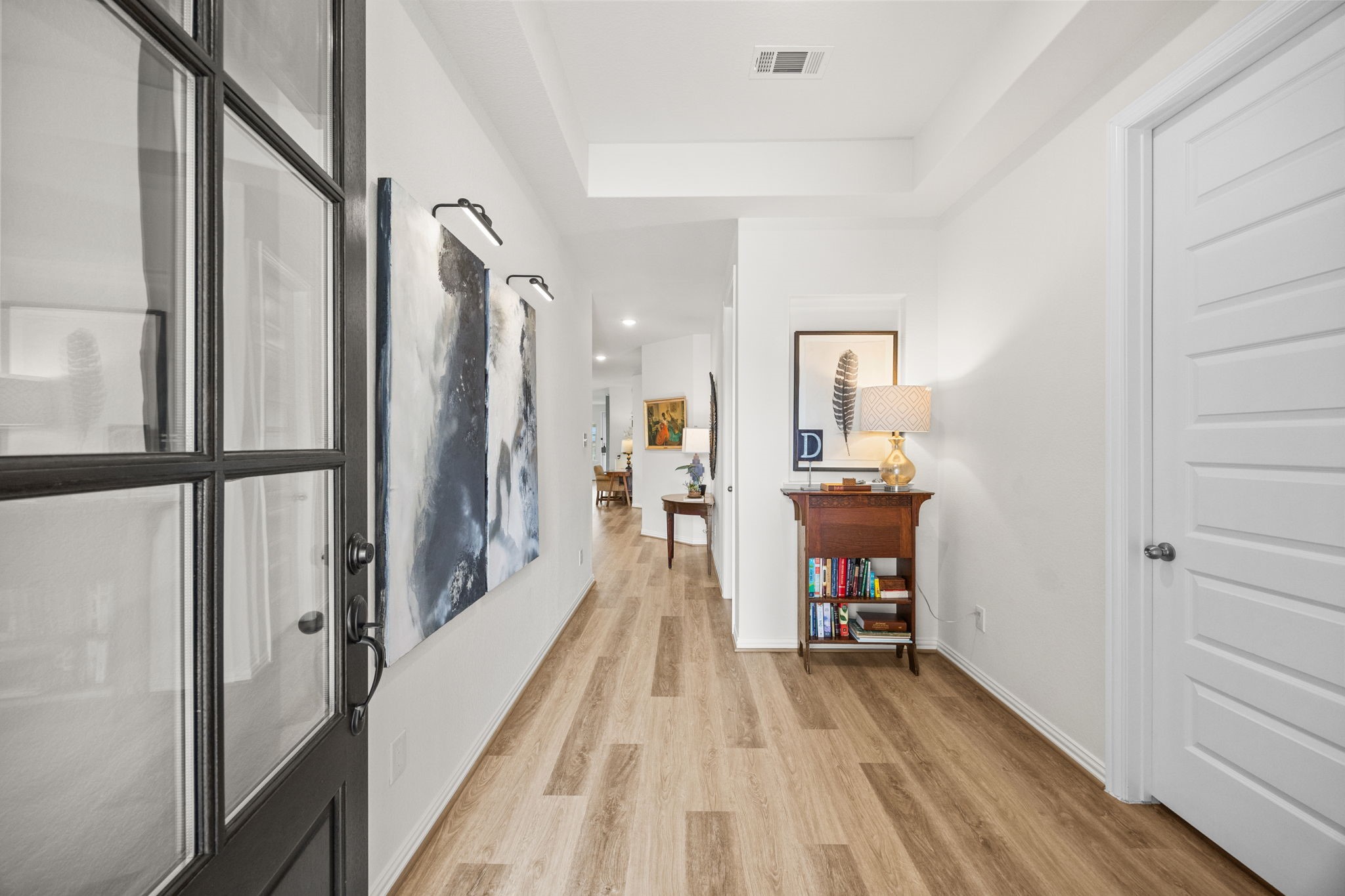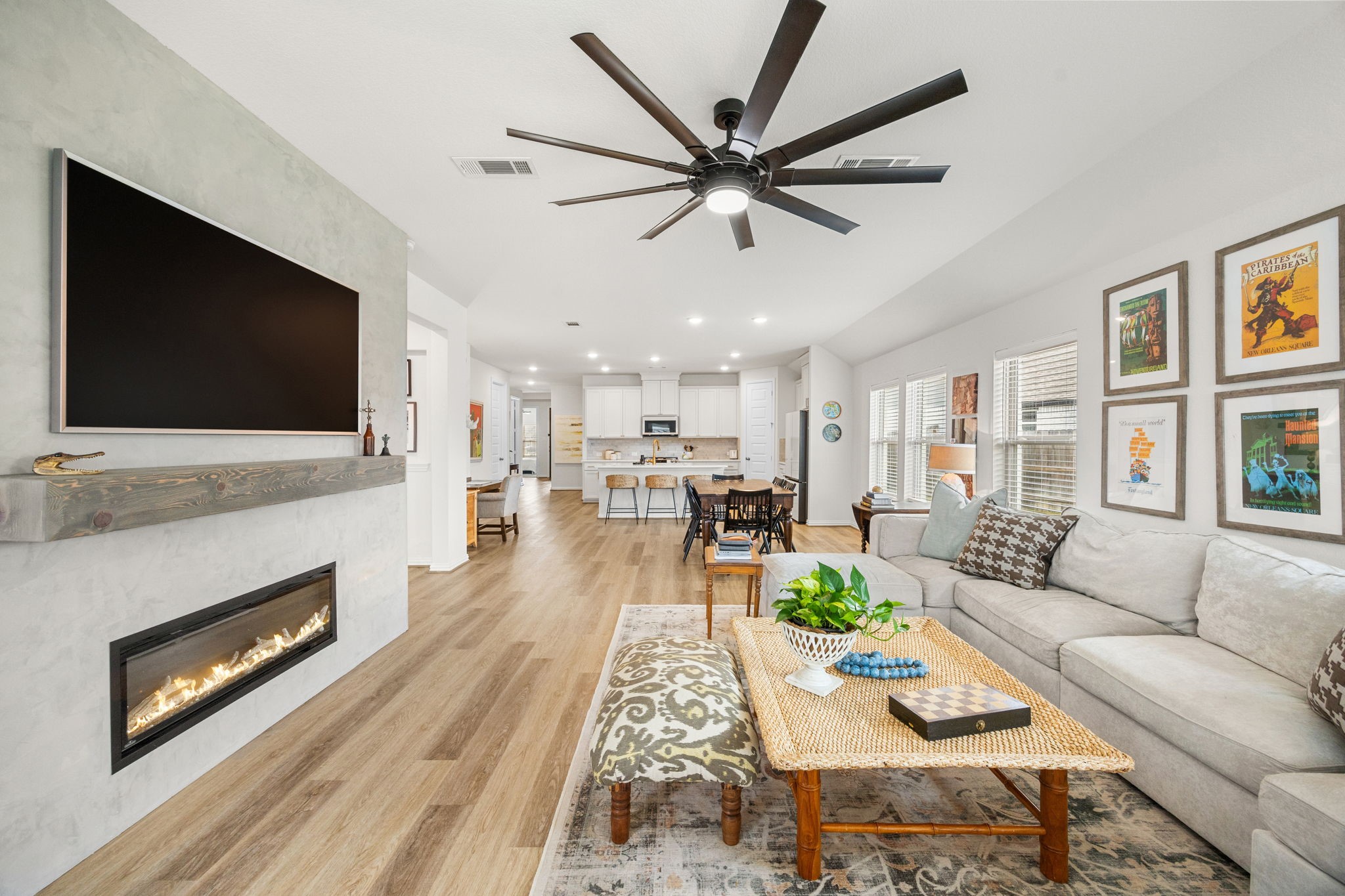 This charming one-story home is nestled on a quiet cul-de-sac, offering an open-floor plan designed for comfortable living. The kitchen features crisp white cabinets, white glass appliances, an updated backsplash, and ample storage space. With 4 bedrooms and 2 bathrooms, the home combines plush carpet in the bedrooms with luxurious vinyl plank flooring in high-traffic areas. Retreat to the primary bedroom, complete with a striking black accent wall, plush carpeting, and large windows overlooking the backyard. The updated primary bathroom boasts double vanities, a separate shower, and a spacious walk-in closet. Step outside to the patio and enjoy a generous backyard, perfect for a garden, playset, or outdoor entertaining. This home truly checks all the boxes. Style, comfort, and space. All in a prime, peaceful location. Don’t miss your opportunity to make it yours!