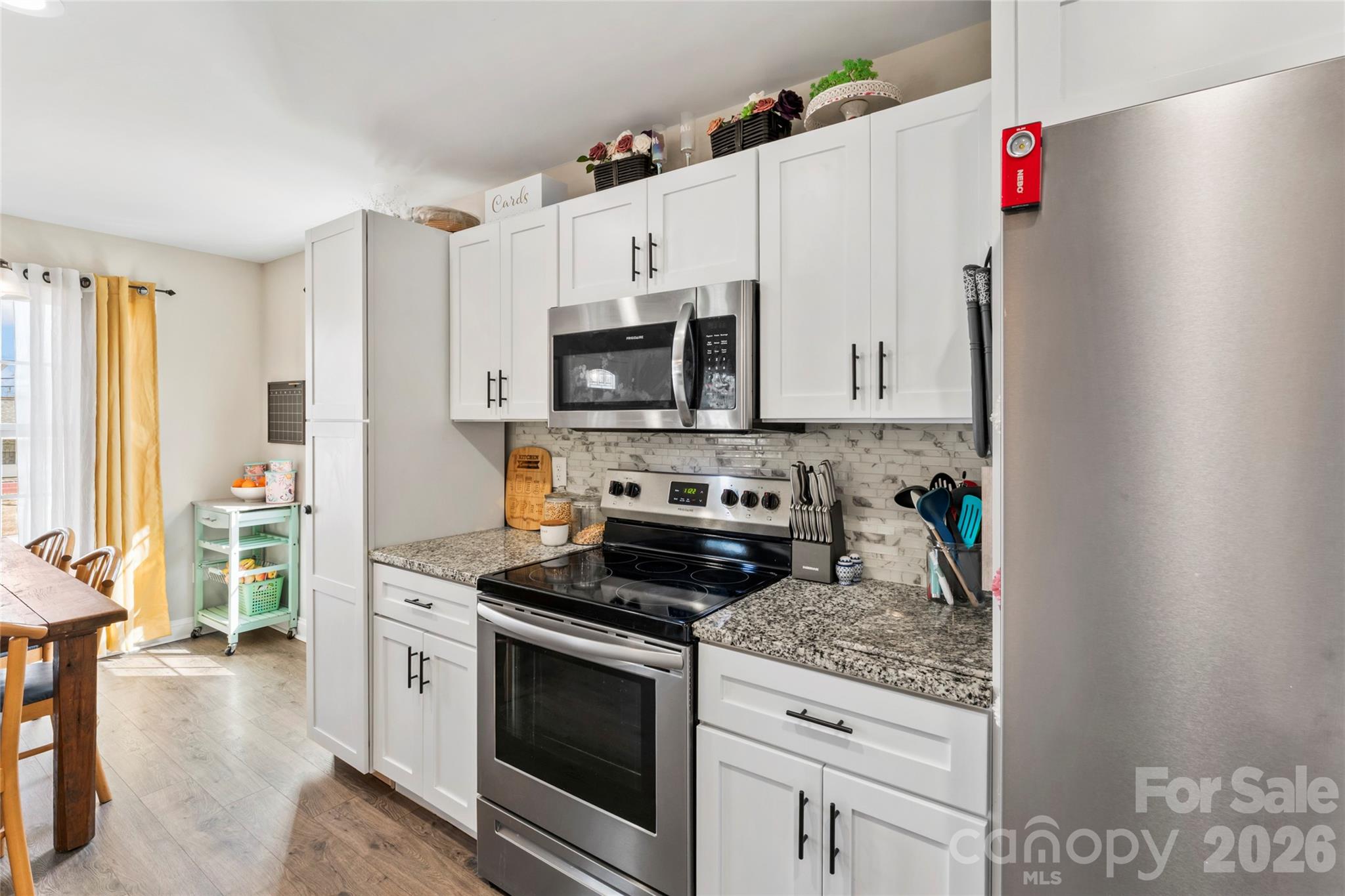 **Seller is willing to pay towards buyers closing costs***Has the feel of New Construction* No HOA! Only one owner! Welcome home to this warm and inviting retreat, where charm meets modern comfort!From the moment you arrive, the welcoming front porch sets the tone. Perfect for morning coffee, quiet evenings, while watching the world go by. Inside, the home opens to a bright, open living space filled with natural light and soothing neutral tones that instantly make you feel at ease. The kitchen features granite countertops, stainless steel appliances and a generous bar top with ample room for seating. The dining area and living room flow effortlessly into the kitchen, making it easy to host intimate gatherings or enjoy peaceful everyday living. Luxury vinyl plank flooring throughout kitchen, living room and bedrooms! Laundry room is separate! Step outside to the concrete patio and private, fenced in backyard that offers a spacious 360+ sq. ft shed. This area is ideal for unwinding, reading a book or hosting backyard barbeques. This property is more than just a house-it's a comfortable haven, designed for those who appreciate charm, warmth, modern comfort that truly feels like home.Close to Crowders Mountain, Osage Mill, shops, restaurants and highway access. 3D Tour: https://hommati.tours/tour/2549138?play=no&mls=yesAerial Tour: https://www.hommati.com/3DTour-AerialVideo/unbranded/316-E-Alabama-Ave-Bessemer-City-Nc-28016--HPI67194894