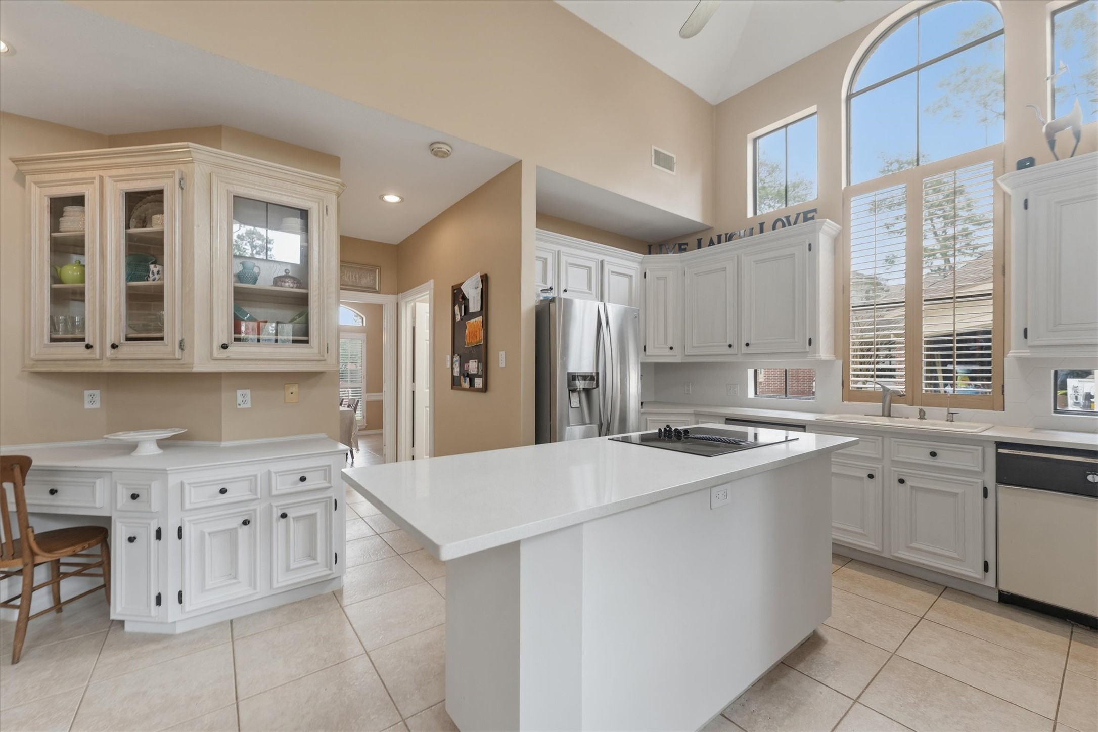 Beautifully maintained 4-bedroom, 3.1-bath home located in Terranova West. This unique floor plan offers inviting living spaces, thoughtful updates, and a backyard perfect for entertaining, play or relaxation. The formal living and family room are connected by back-to-back gas log fireplace. Kitchen features updated Quartz countertops and backsplash (2025), an island cooktop (2025), a new double oven (2026), abundant storage, a composter, and plenty of natural light. The downstairs primary suite boasts a detached soaking tub, separate shower, double sinks, dual closets, and a dedicated vanity area. Upstairs, the three remaining spacious bedrooms surround a bonus game room with a beautiful window for plenty of sunlight and built-in shelving providing flexible space for an office or playroom. The backyard retreat has a patio for entertaining, covered seating, a tranquil water feature, and a natural built-in slide/play structure. This home is lovely, well taken care and ready for you!