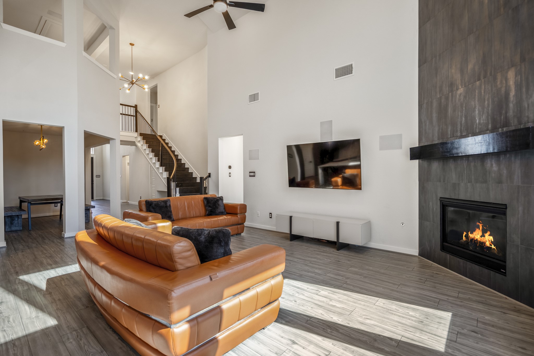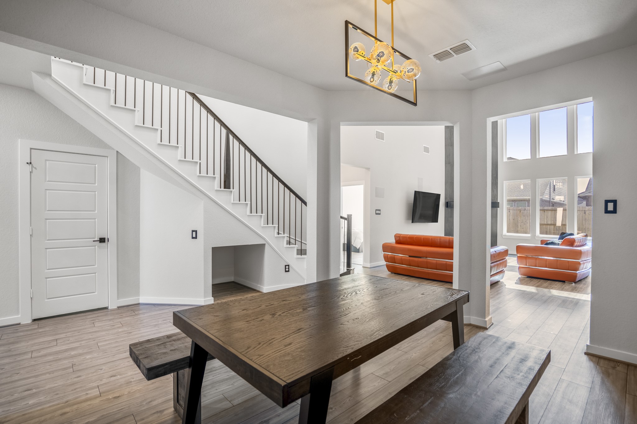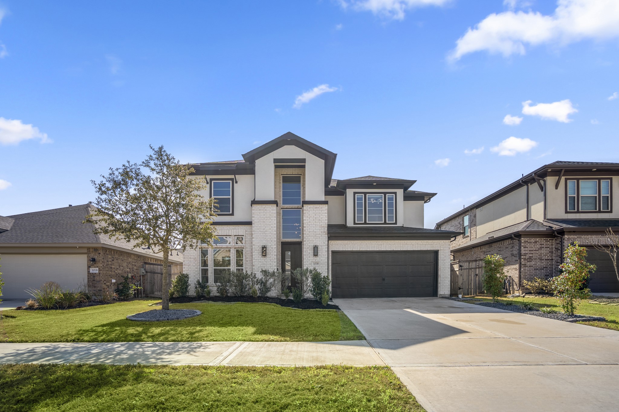 Welcome to the sought-after 50’ LINZ plan — a stunning 4-bedroom (2 down), 3.5-bath home loaded with designer upgrades throughout. This striking brick & stucco elevation makes a statement before you even walk in. Inside, a dramatic wall of windows fills the spacious family room with natural light. The chef’s kitchen features waterfall-edge quartz countertops, stainless steel appliances, custom pot filler, and custom backsplash. NO carpet anywhere — enjoy upgraded tile, custom fixtures, and elevated countertops throughout.Upstairs, the curved staircase leads to a large game room and dedicated media room. Upgrades include a tankless water heater, water softener, epoxy garage floor, full sprinklers & gutters.BONUS: a FULL second kitchen with 1.5 oven, refrigerator, dishwasher, sink, custom cabinets, backsplash, and countertops. Incredible covered patio with outdoor kitchen, high-end grill, and tile flooring. ALL appliances in both kitchens plus washer/dryer with pedestals stay!