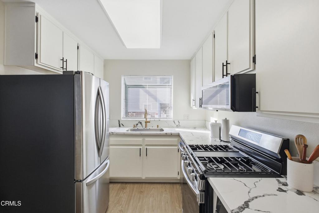 Welcome to this move in ready townhouse, located in the gated Casa Marina community just moments from downtown Oxnard.This tri-level townhome offers a bright and spacious layout with upgrades throughout.The main living level features an open floor plan with updated laminate flooring, a private balcony, and a restroom.The kitchen has been upgraded with quartz countertops, newer appliances, and upgraded cabinets. Upstairs you will find two spacious bedrooms, each with its own private bathroom, along with the washer and dryer conveniently located on the same level.Additional highlights include an attached two car garage with direct access, one additional assigned parking space for a resident or guest.Also, access to the community pool and spa. The home is ideally located within walking distance of Downtown Oxnard, where you can enjoy local cafes, restaurants, the farmers market, and nearby cinemas.
