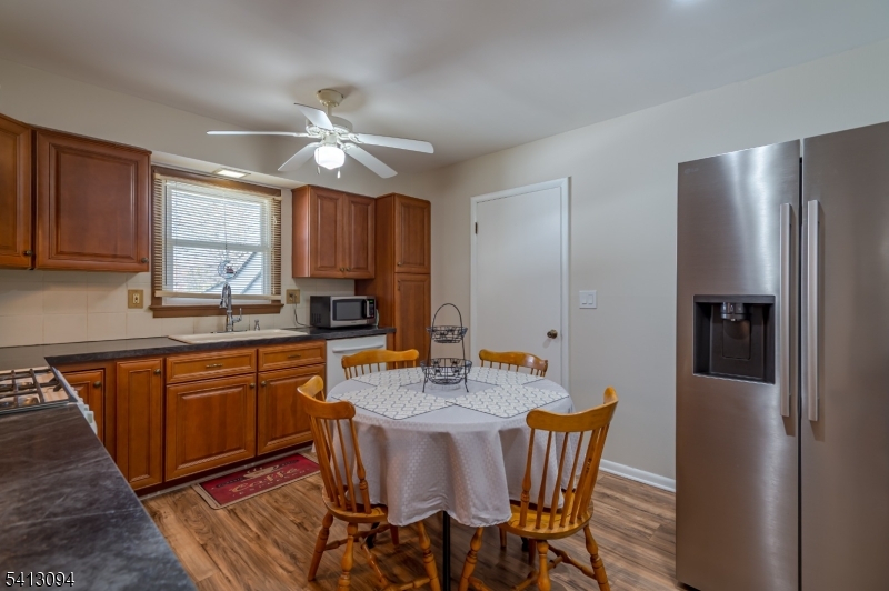 Due to multiple bidding best offers are requested by Tuesday March 17 at 12:00pm.Situated on a desirable, sprawling lot, this beautifully updated Ranch home features freshly painted sunlit interiors, timeless charm, and thoughtful upgrades throughout! A paver stone walkway leads to classic brick steps and a front door with decorative glass inlay. Gorgeous hardwood floors flow seamlessly from the living room into the dining area, which overlooks the backyard. The living room is bright and inviting, with a large bay window and an electric fireplace framed by a richly detailed wood surround and mantle. The eat-in kitchen boasts handsome cabinetry, a sink beneath a window, overhead lighting, gas range, dishwasher, brand-new stainless steel refrigerator, ceiling fan with light, and durable laminate wood flooring that can also be found in the versatile bonus room. All three bedrooms feature hardwood floors, ceiling fans with lights, ample closets, and multiple windows. The full bath includes a lovely pedestal sink, roomy shower, and linen closet. A spacious unfinished basement with washer/dryer and windows offers a flexible space for storage, a workshop, or eventual finishing. The backyard, bordered by a white fence and complete with a storage shed, provides room for recreation, gardening, or relaxation. This property is located close to NYC trains/buses, restaurants, shopping, Rutger's University and RWJ hospital. *** Please note only 1 shed will remain on the property***