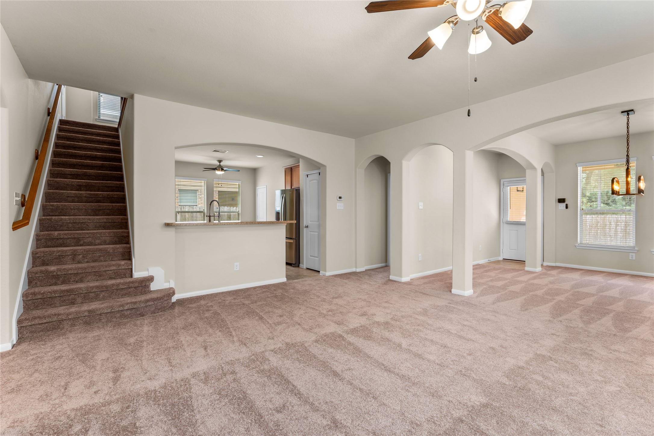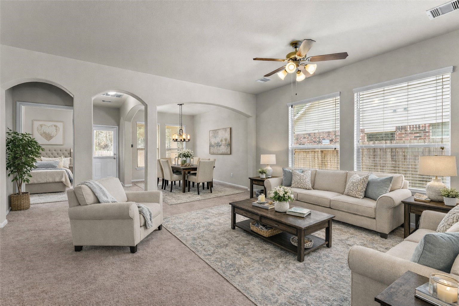 Rare find in Magnolia! 4 bedrooms plus a flex room on a private greenbelt lot with no back neighbors, Welcome to 18911 S Sapling Oaks Pl in Glen Oaks community of Magnolia. The attractive brick and stone exterior opens to generous living areas, a formal dining room, and a bright breakfast nook. The kitchen features granite countertops, new stainless appliances. The primary suite is located on the first floor, while upstairs includes a spacious game room, three additional bedrooms, and two full baths and walk-in attic storage. Recent updates include a recent 5-ton A/C system and coil, all new interior pant, new carpet, whole-house water filtration and softener. Enjoy extended concrete patios front and back, a privacy fence with gated access, and community amenities including pool, park with basketball court, and dog park. Zoned to Magnolia ISD with easy access to Hwy 249.