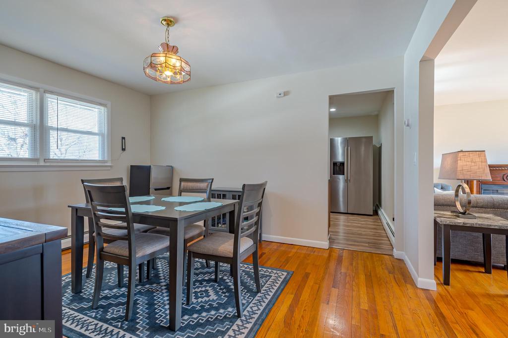 Situated on a desirable, sprawling lot, this beautifully updated Ranch home welcomes you with freshly painted sunlit interiors, timeless charm, and thoughtful improvements throughout! An attractive paver stone walkway leads to classic brick steps and a front door with a decorative glass inlay. Gorgeous hardwood flooring flows seamlessly from the living room into the dining area, creating a warm, cohesive atmosphere. The generous size living room is bathed in natural light from a large bay window and features an electric fireplace framed by a richly detailed wood surround and mantlean inviting centerpiece for relaxing evenings or entertaining guests. The dining room overlooks the backyard, offering a bright, cheerful setting for daily meals as well as special gatherings. The eat-in kitchen blends style with practicality, boasting handsome cabinetry with plenty of storage, a sink set beneath a window, and overhead lighting above the sink and stove that enhances the workspace. Additional amenities include a ceiling fan with integrated lighting, gas range, dishwasher, brand-new stainless steel refrigerator, recessed lights, and durable laminate wood flooring that adds both beauty and resilience. Conveniently located off the kitchen is access to the garage, basement, and a versatile bonus room featuring recessed lighting and laminate wood flooring that coordinates with the kitchen. A hallway leads to 3 comfortable bedrooms, each offering hardwood flooring, ceiling fans with lights, ample closets, and multiple windows that welcome sunlight throughout the day. The full bath presents a lovely pedestal sink, roomy shower with sliding glass doors, plus a handy linen closet for organization. The spacious unfinished basement offers an existing washer and dryer, several windows for natural light, and endless possibilities. Whether used for storage, a workshop, or eventual finishing, this level provides excellent flexibility. Step outside to enjoy the spacious backyard, bordered by a white fence and featuring a storage shed for lawn equipment and seasonal items, ample space for recreation, gardening, or simply unwinding in the fresh air. This property is located close to NYC trains/buses, restaurants, shopping, Rutger's University and RWJ University hospital. *** Please note only 1 shed will remain on the property***