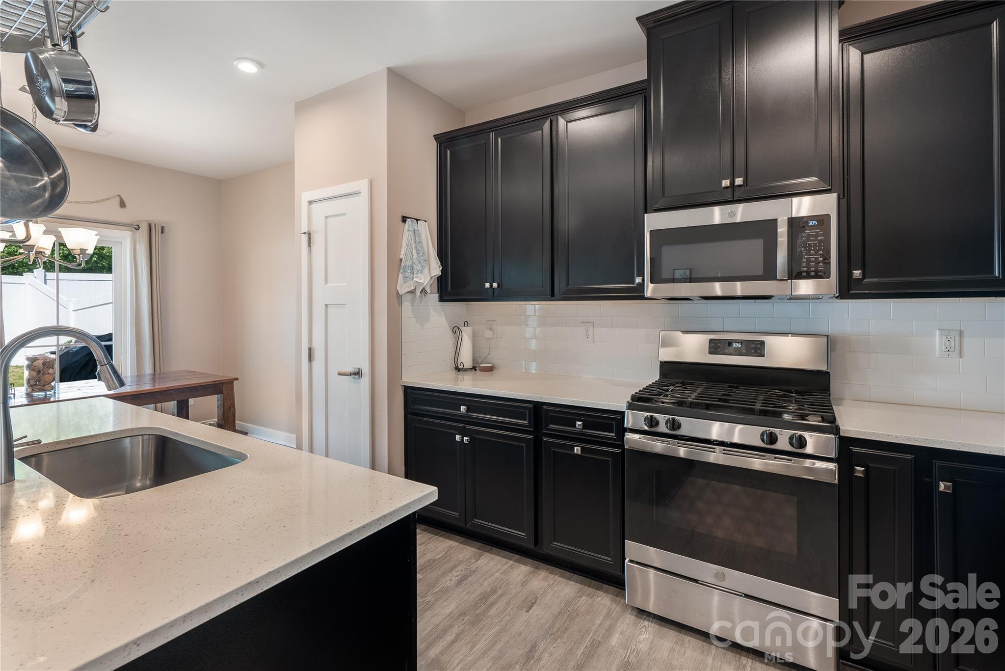 Location! Location! Location! Welcome to this beautifully upgraded townhome featuring high-end finishes and thoughtful details throughout! This spacious 3-bedroom, 2.5-bath home offers an open and inviting layout, perfect for modern living. The main level showcases stylish LVP flooring that flows seamlessly from room to room. The chef’s kitchen impresses with a full-overlay cabinetry, a large center island, elegant quartz countertops, gas range and a striking subway tile backsplash. The living area radiates comfort with a cozy fireplace and added recessed lighting, creating the perfect ambiance for relaxing or entertaining. Upstairs, retreat to the luxurious primary suite featuring walk in closets and a beautiful upgraded bathroom with a semi-frameless sliding glass door and a Roman shower head style. Additional highlights include a tankless hot water heater and a fully fenced yard for added privacy. The HOA covers front lawn care and landscaping inside the fenced yard. Come see this beautiful home and make it yours. Agents please read Remarks!