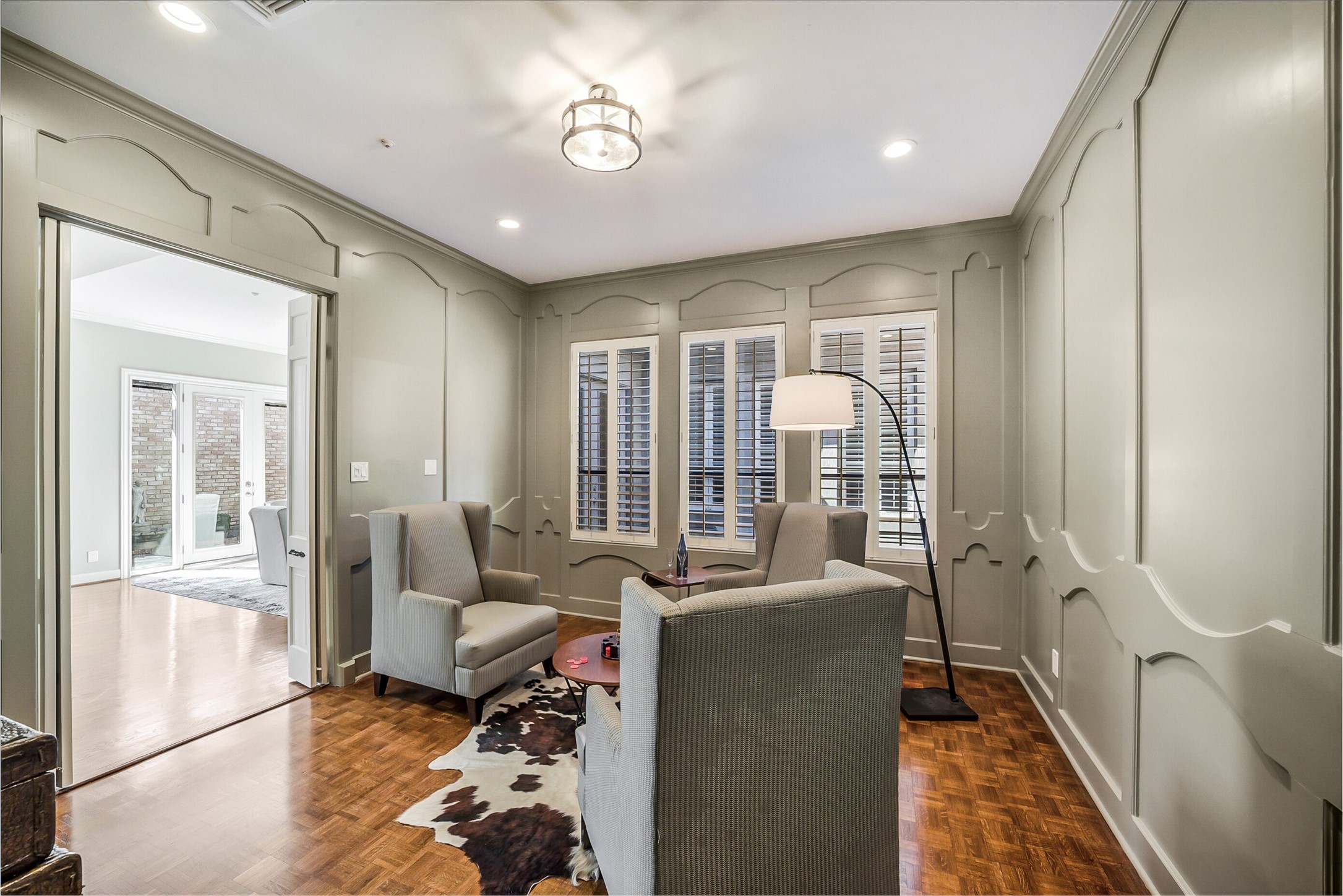 Rare 1-story patio home in Woodlake offering elegant living, beautiful natural light, and exceptional value in the Memorial area. 3 bed/2.5 bath home features a flowing & flexible layout w/ 1 bedroom serving as a custom study & 2 inviting European-style courtyards bringing natural light throughout. Open, light filled living/dining areas flow into a spacious primary suite w/ a remodeled en-suite bath. Kitchen offers granite counters, abundant workspace, walk-in pantry, breakfast rm w/adjoining den-ideal for everyday living. Custom millwork, shutters & quality detailing throughout. Excellent curb appeal, plus a large 2-car garage. Per seller, the property has never flood. Recent updates include PEX plumbing, tankless water heater, remodeled primary bath w/custom cabinetry, newer courtyard doors, fresh interior paint. Well maintained, lock & leave lifestyle w/HOA-maintained landscaping & WATER. Near CityCentre, I-10 & Bwy 8-NOT on Briar Forest.